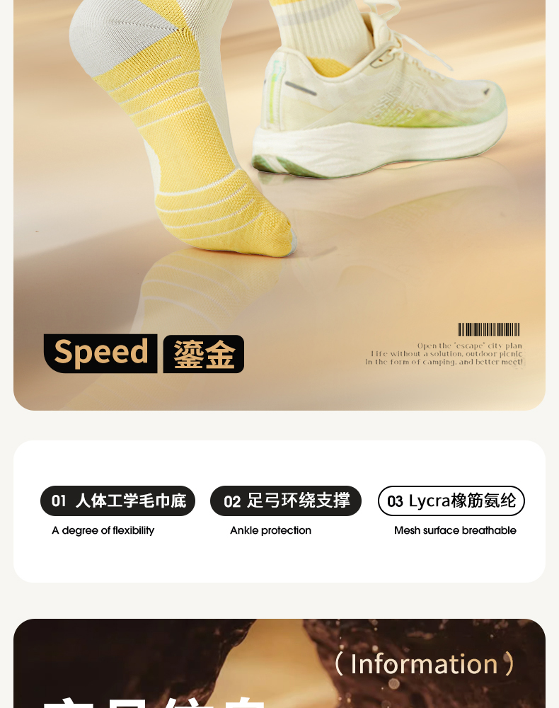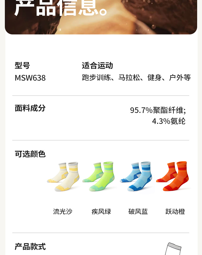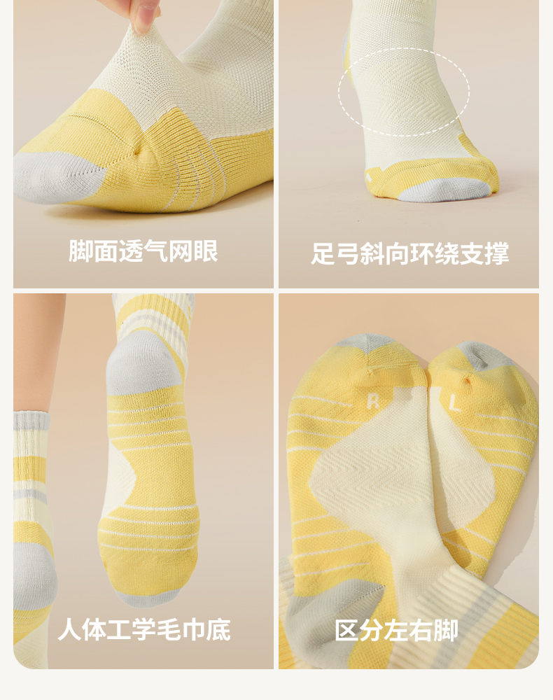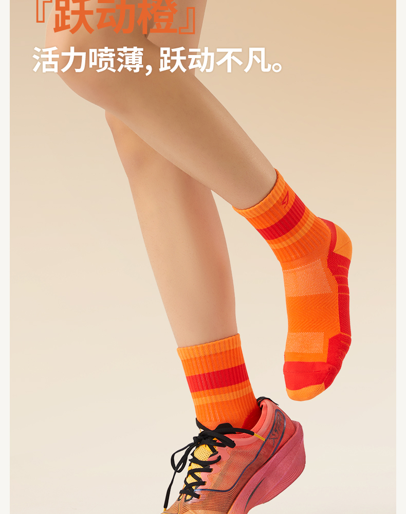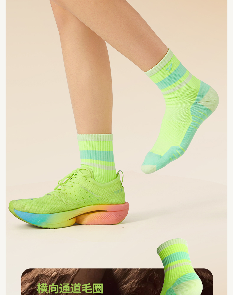【四双装】638肌动炫速中筒运动袜多彩男女专业跑步袜子毛巾底马拉松袜透气健身徒步