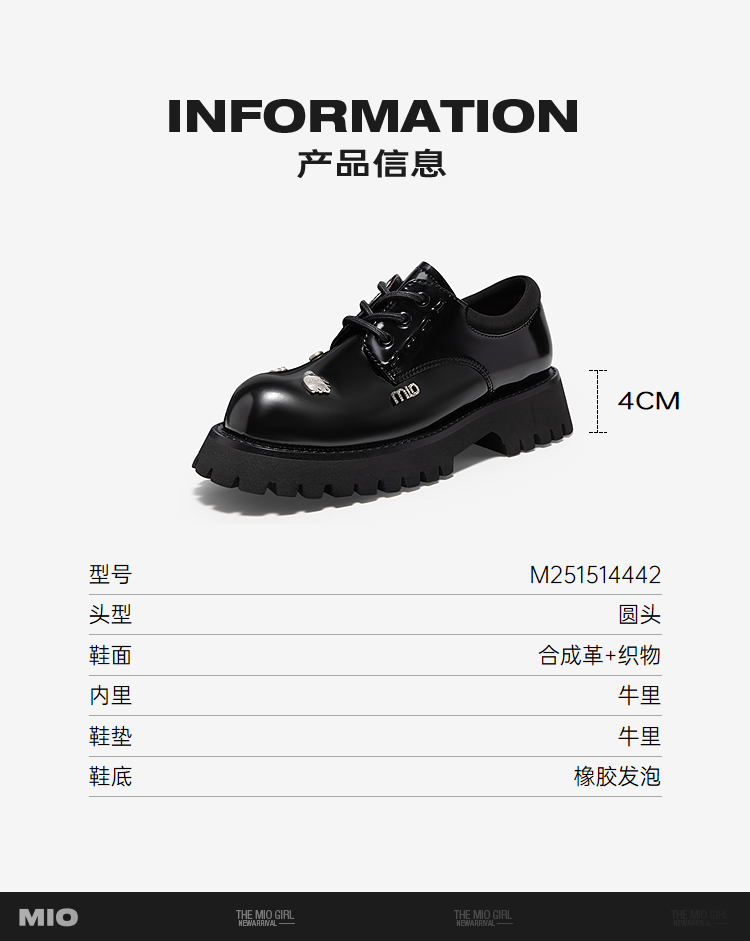 MIO米奥复古暗黑雅痞牛津鞋时尚学院风女单鞋M251514442