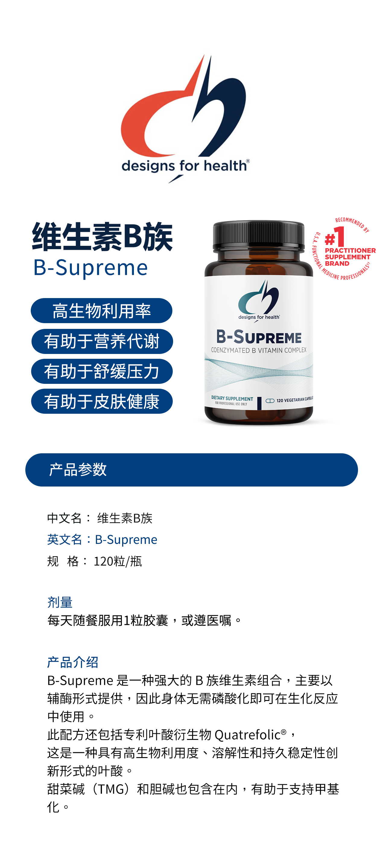美国DFH 维生素B族补充片剂B-Supreme 120粒/瓶 design for health