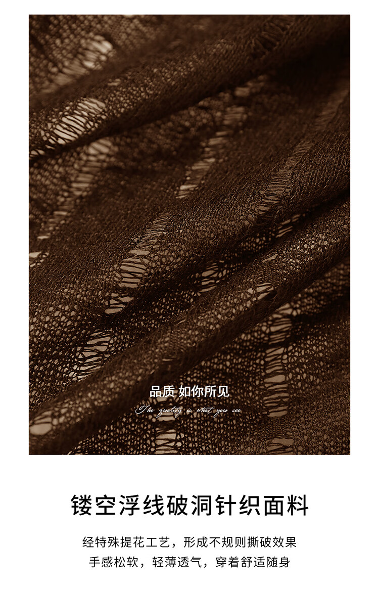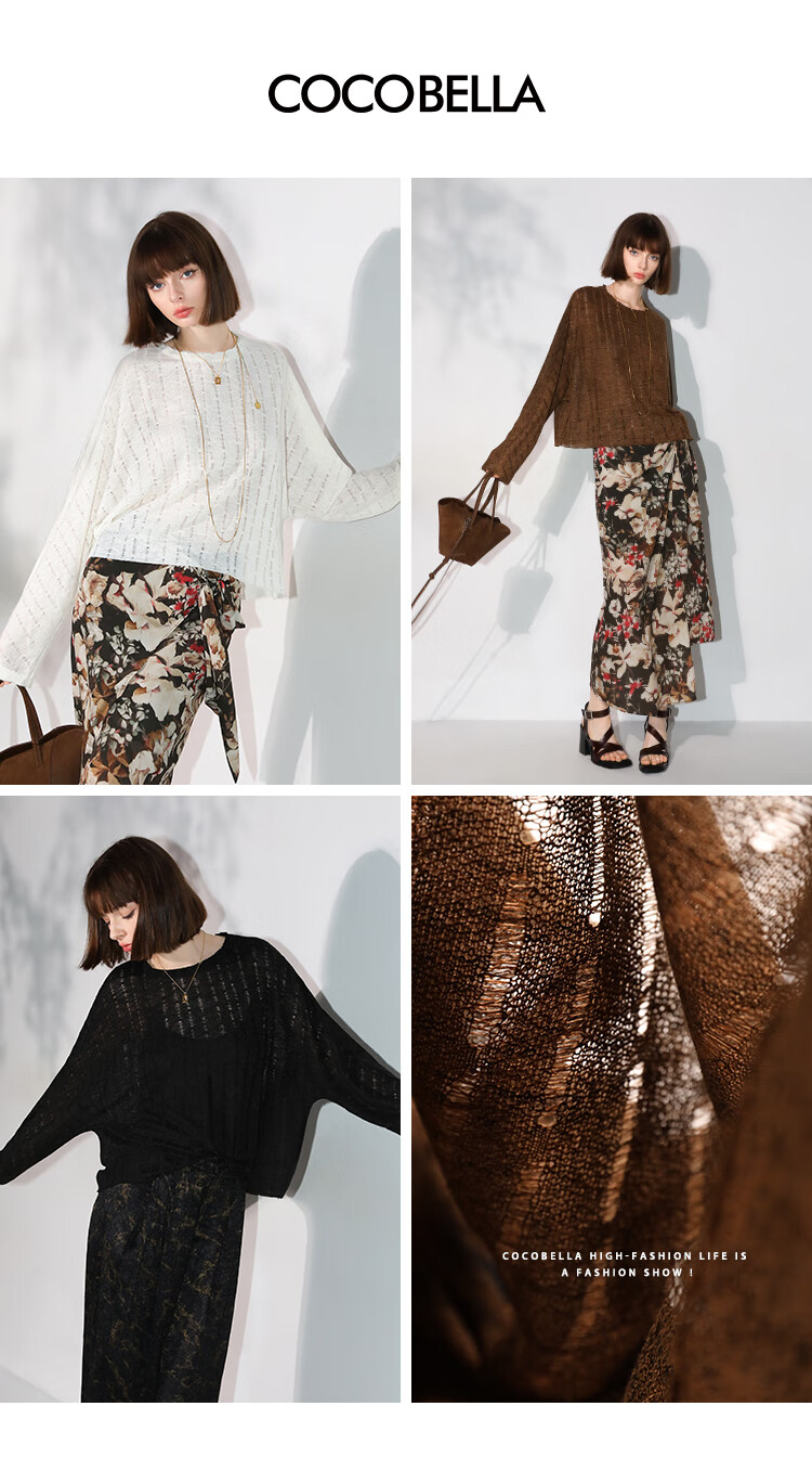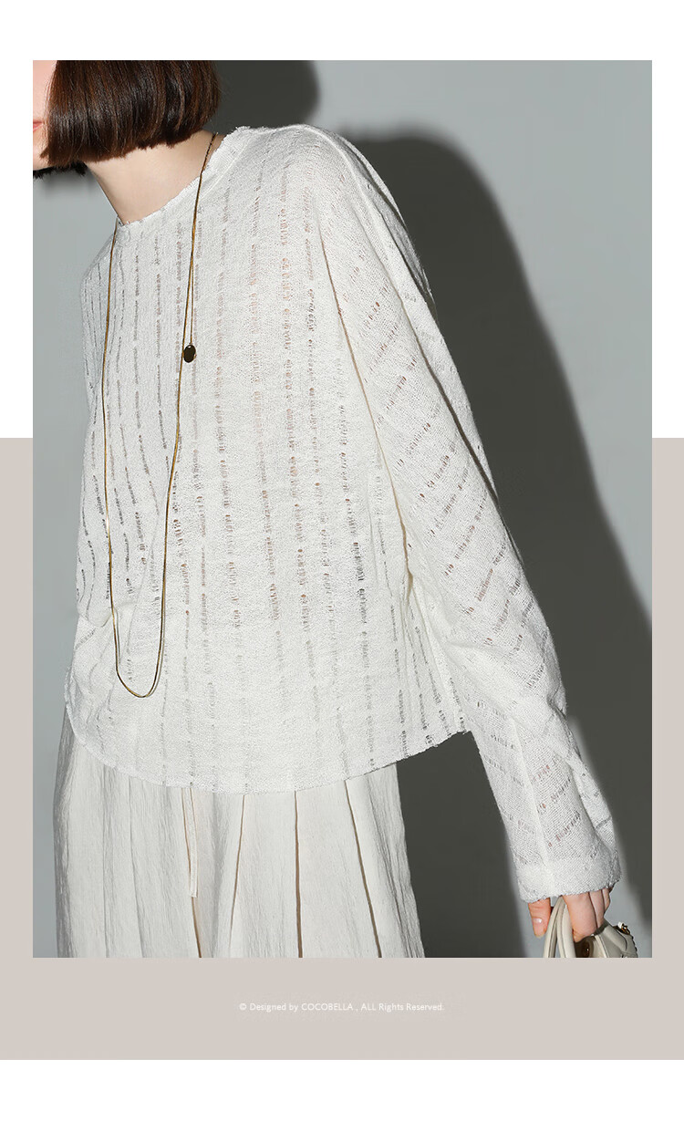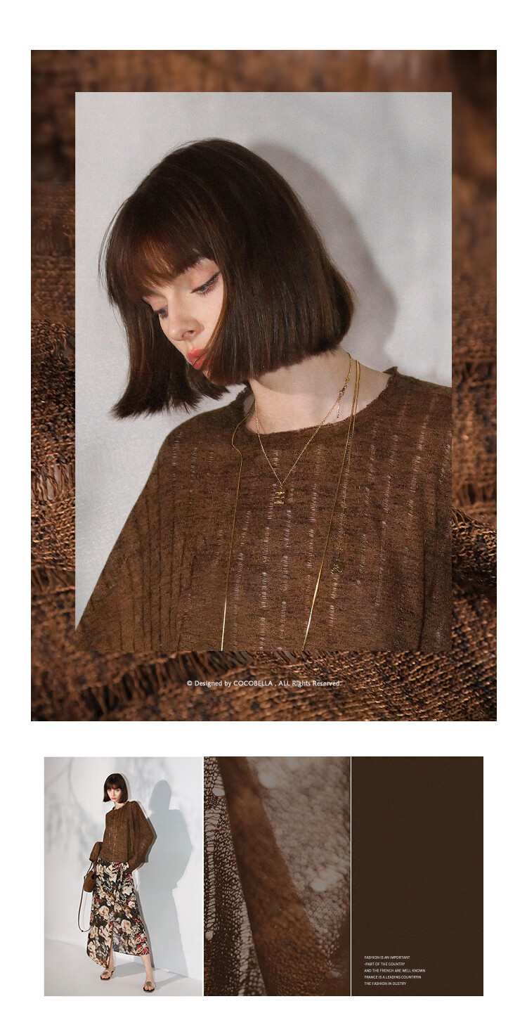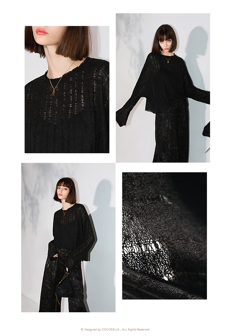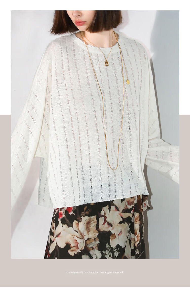 COCOBELLA设计感镂空破洞微透视针织衫女混搭毛边罩衫TS0003