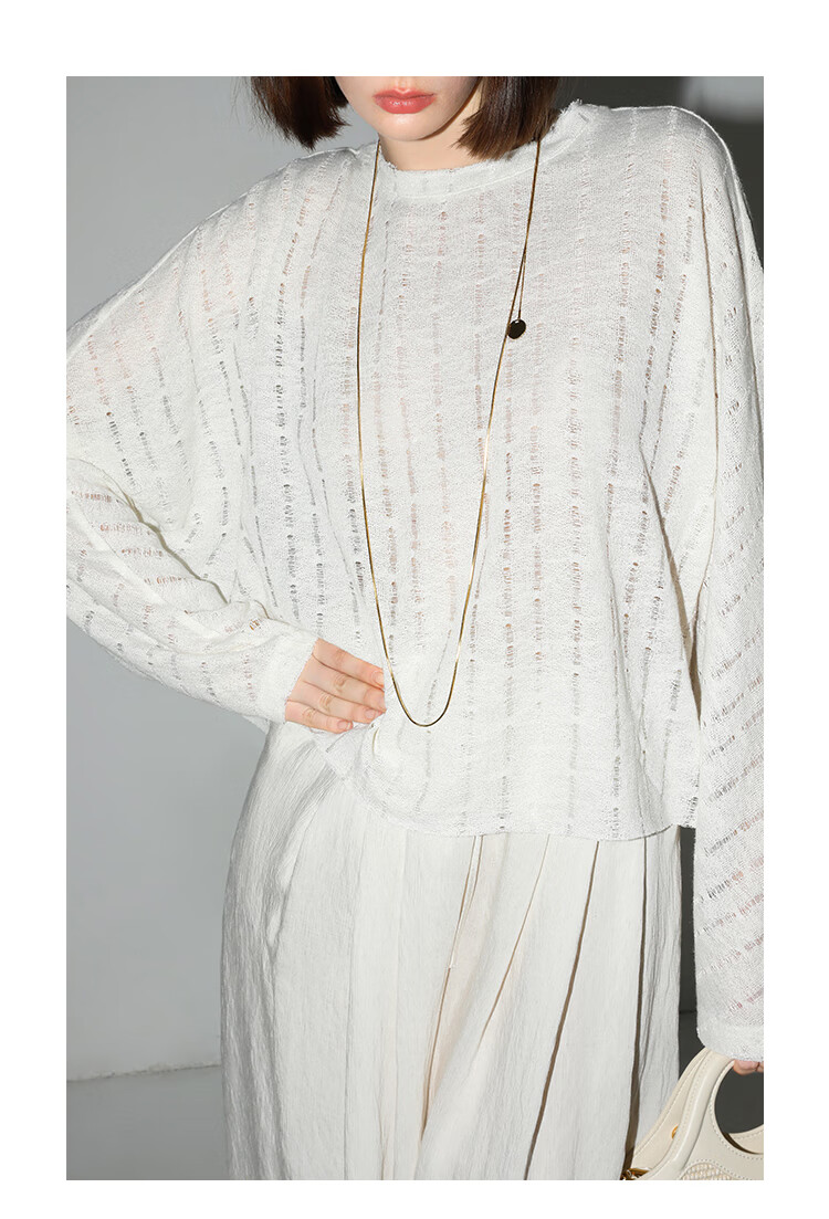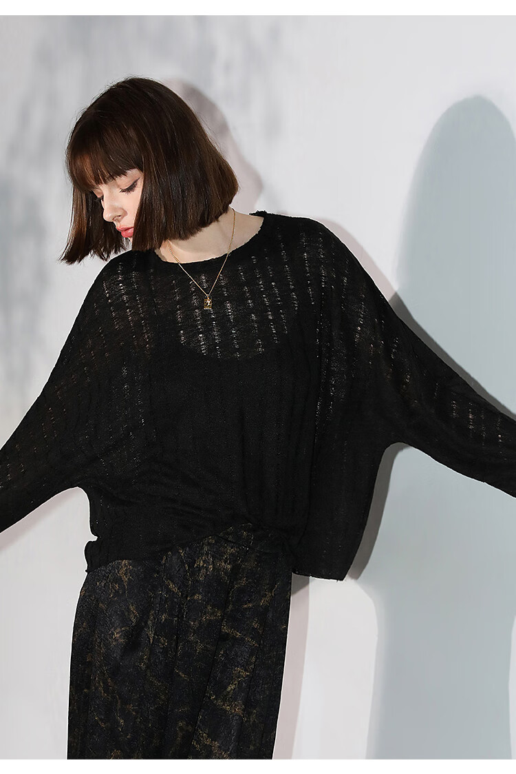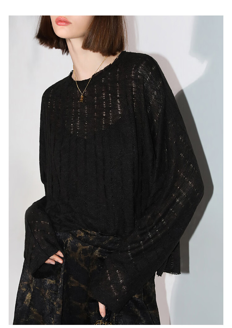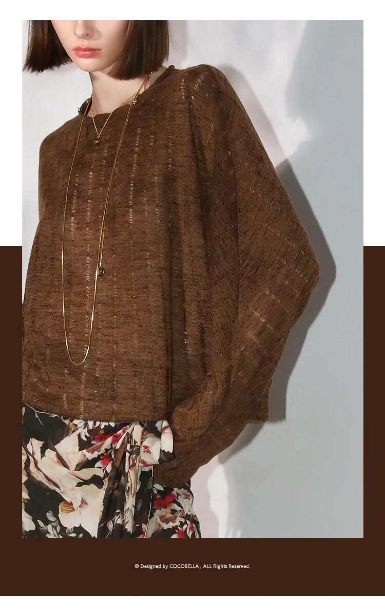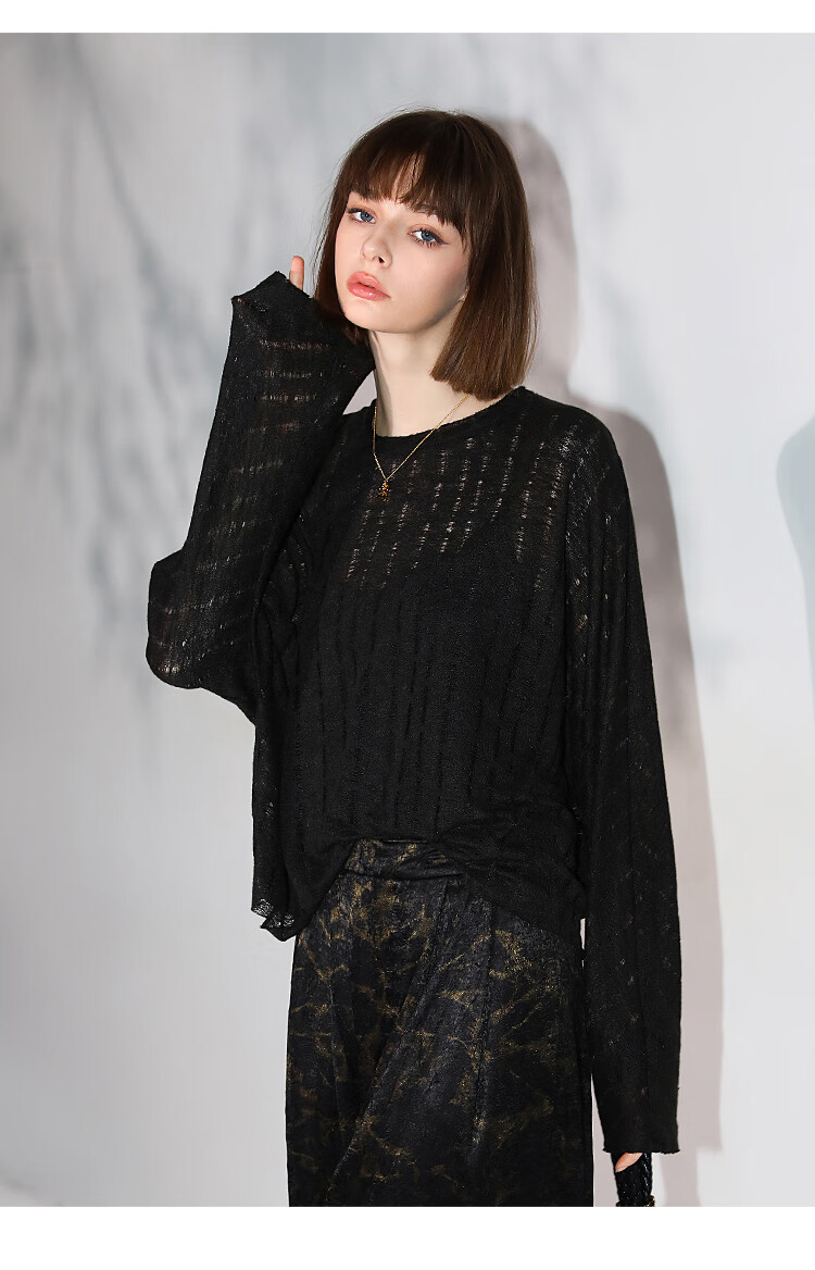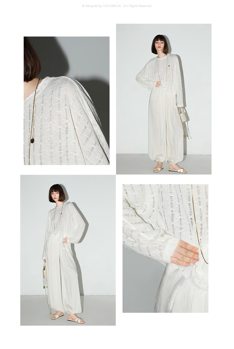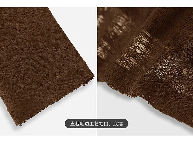 COCOBELLA设计感镂空破洞微透视针织衫女混搭毛边罩衫TS0003