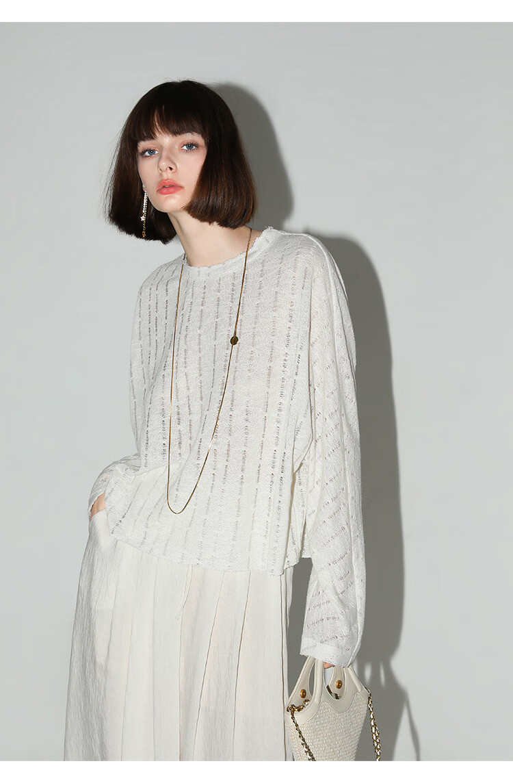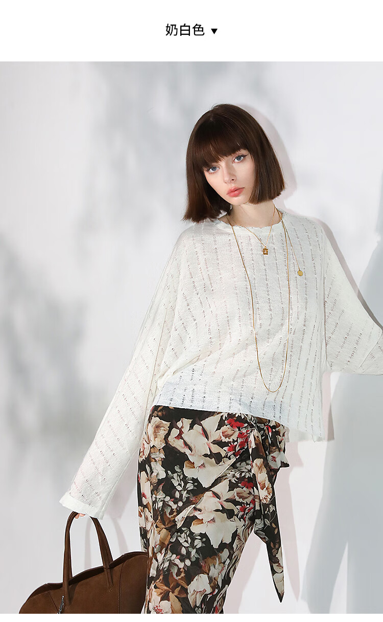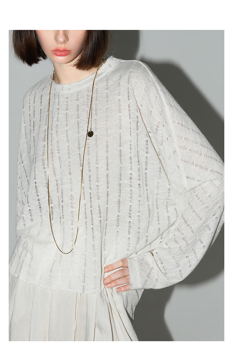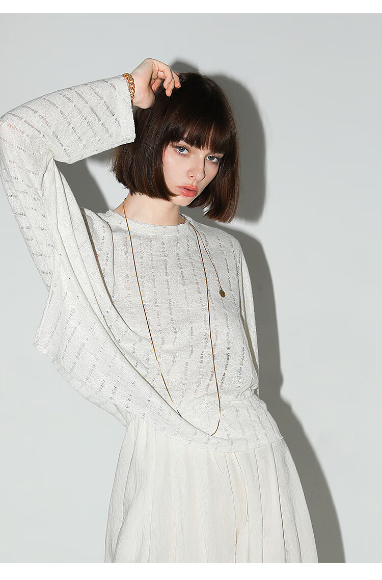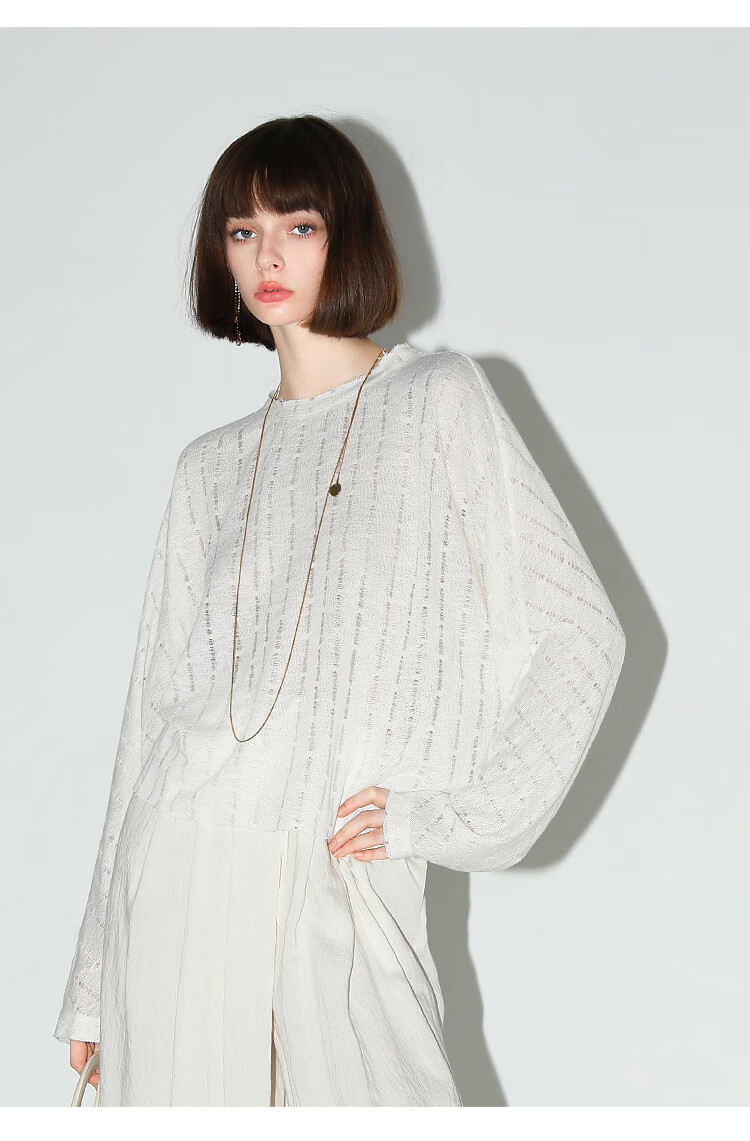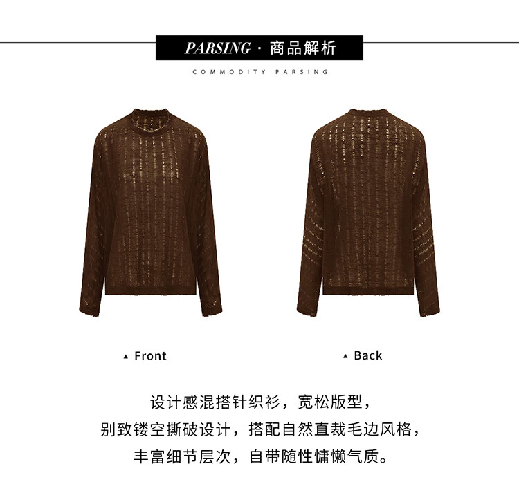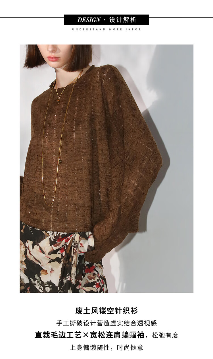COCOBELLA设计感镂空破洞微透视针织衫女混搭毛边罩衫TS0003