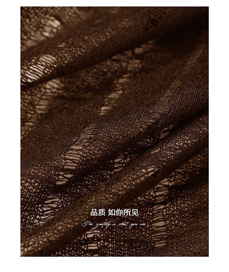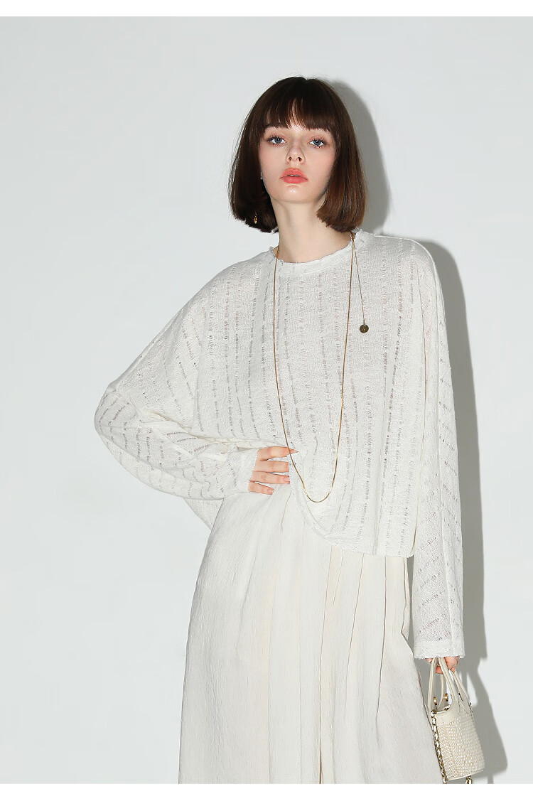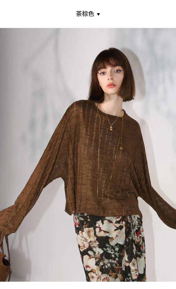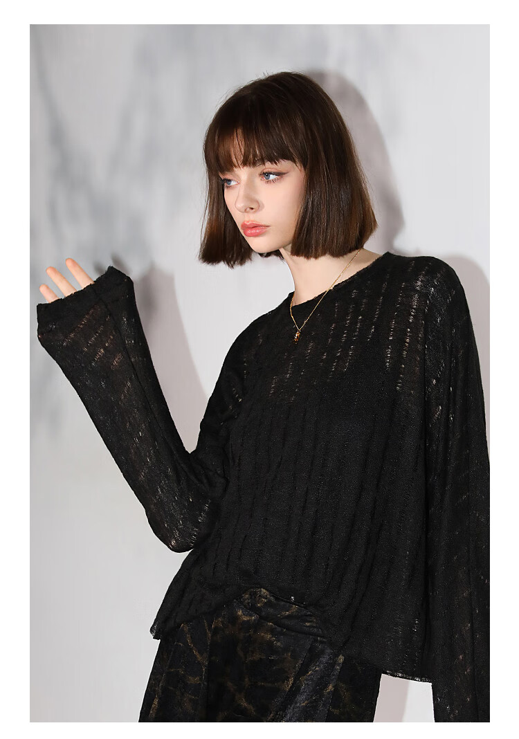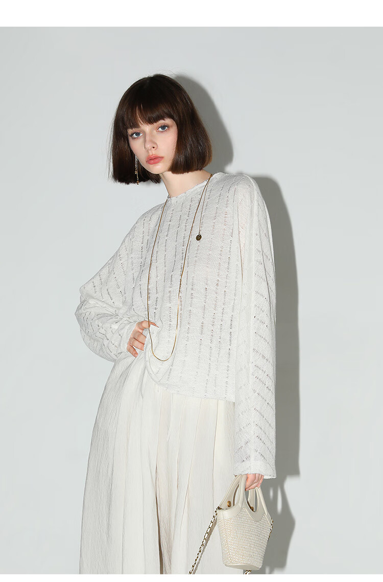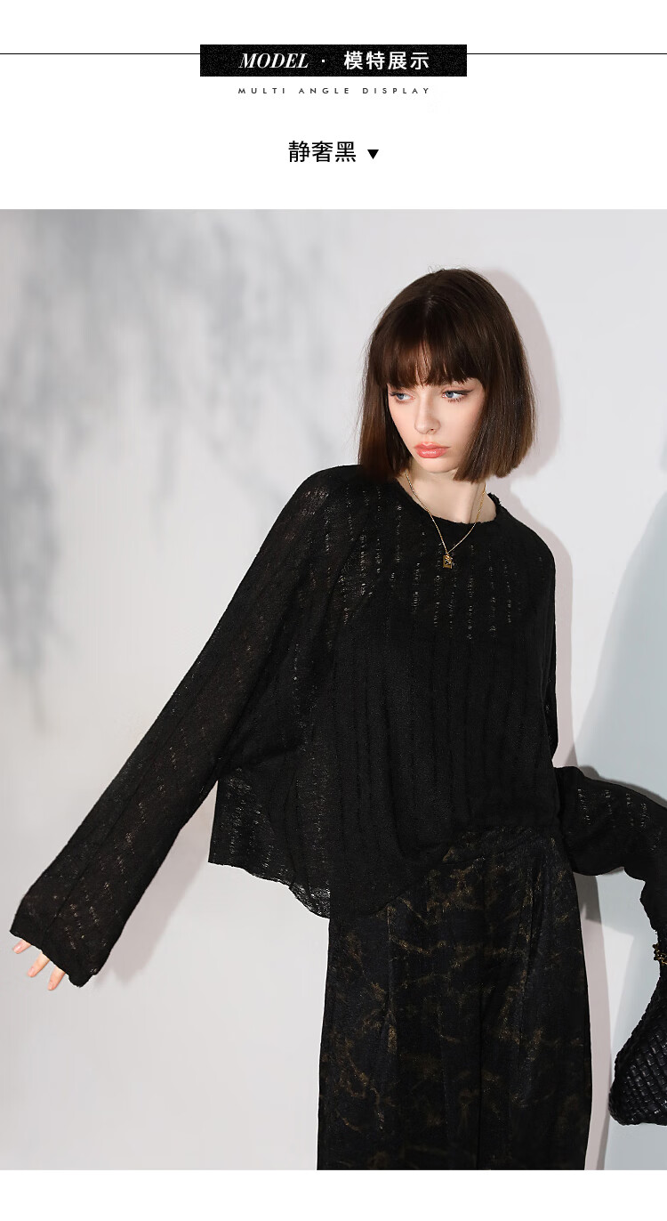 COCOBELLA设计感镂空破洞微透视针织衫女混搭毛边罩衫TS0003