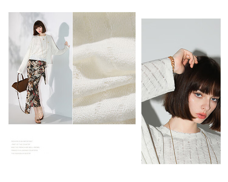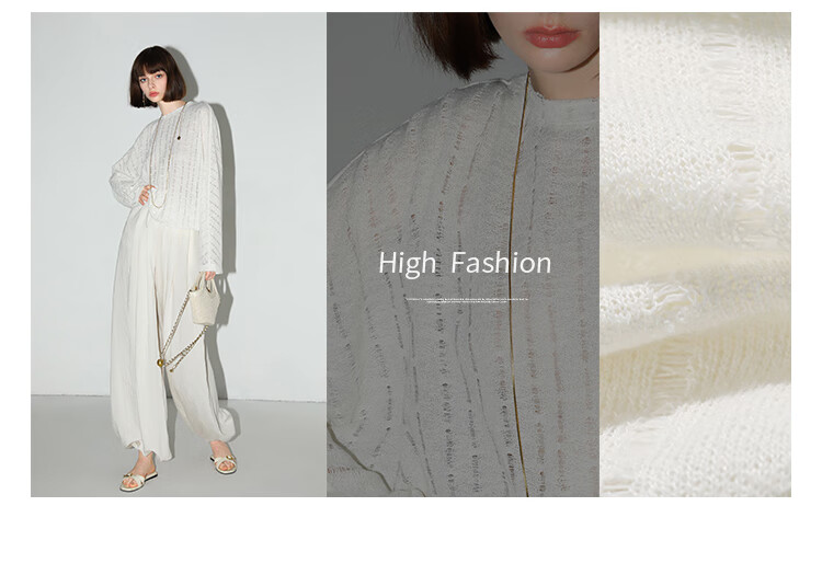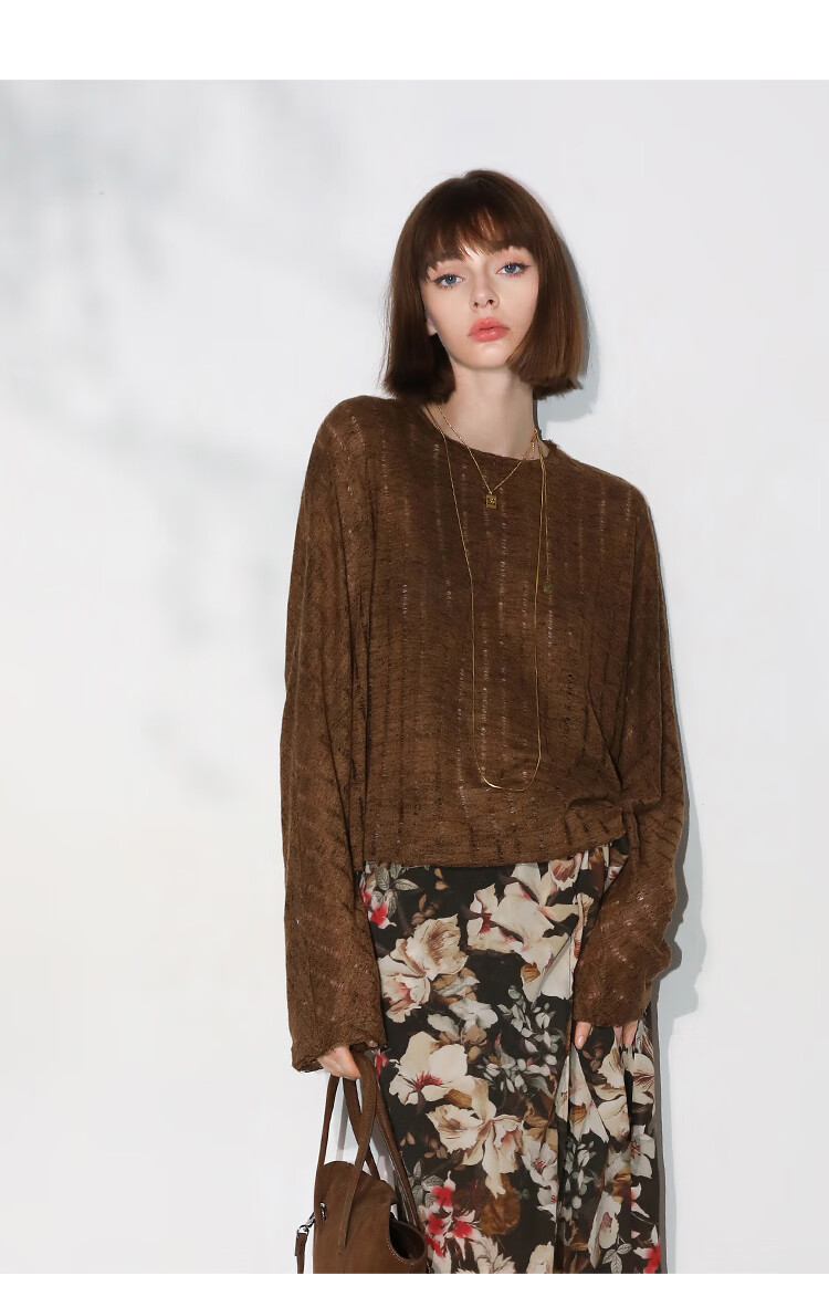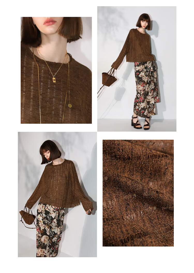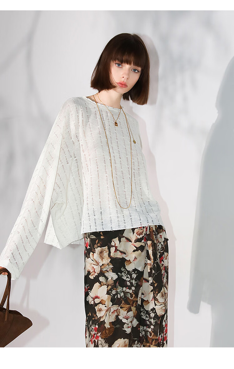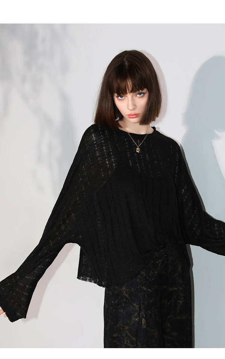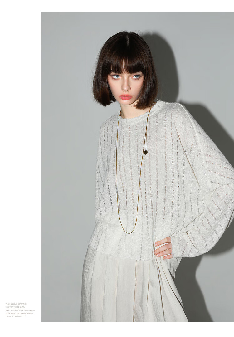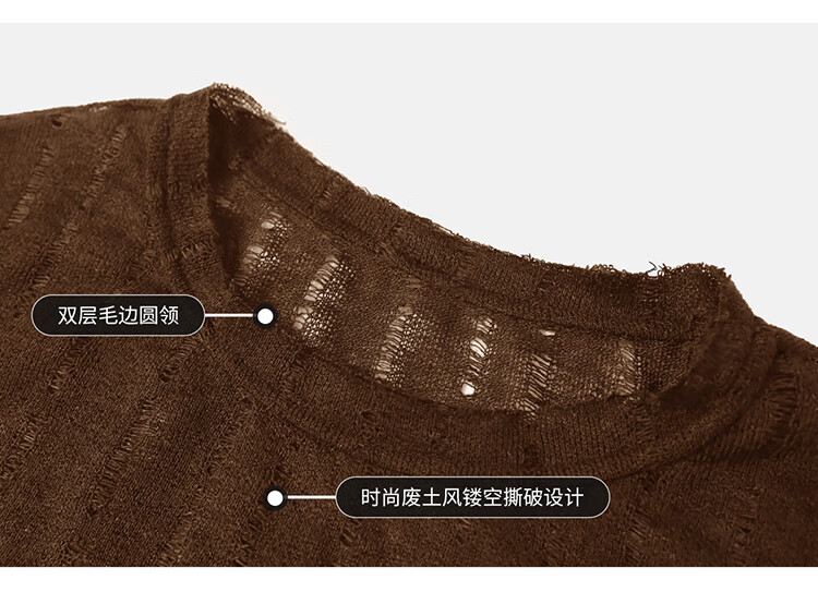 COCOBELLA设计感镂空破洞微透视针织衫女混搭毛边罩衫TS0003