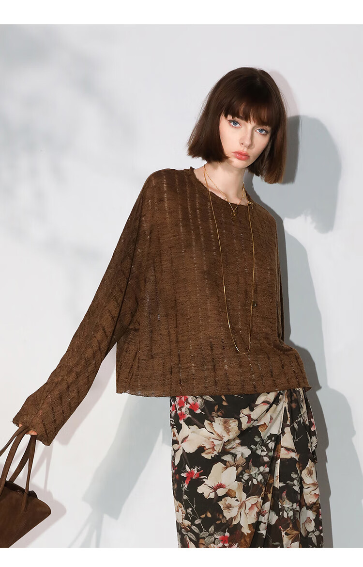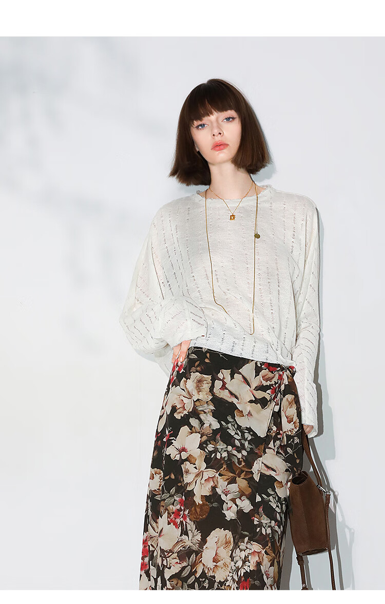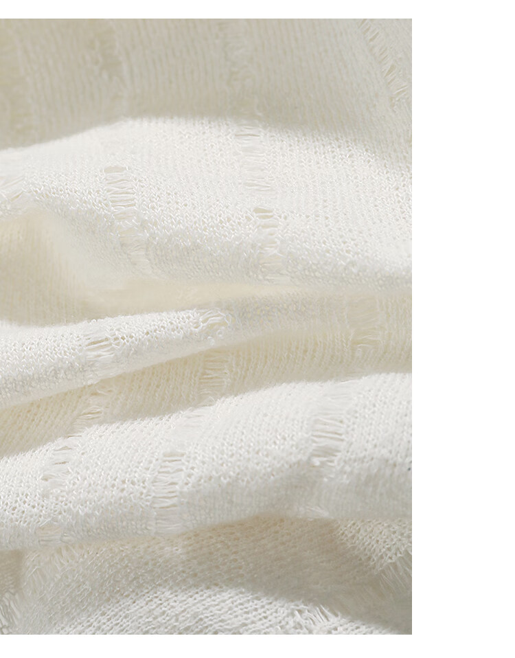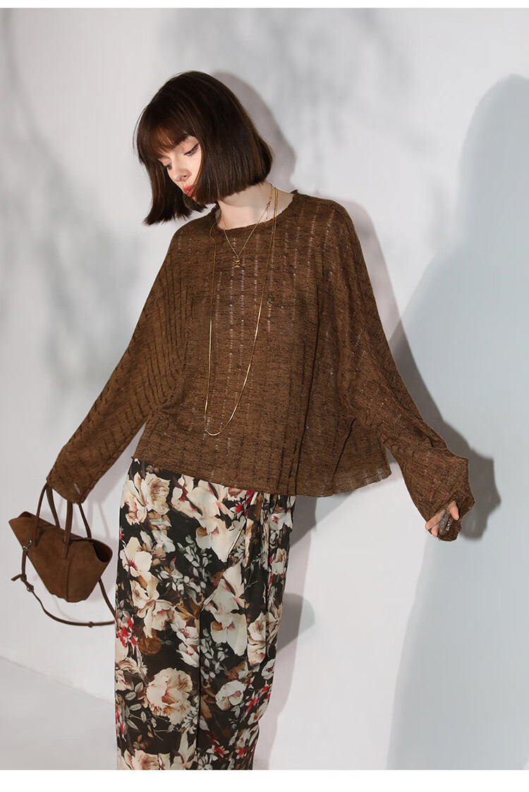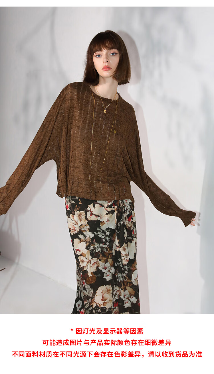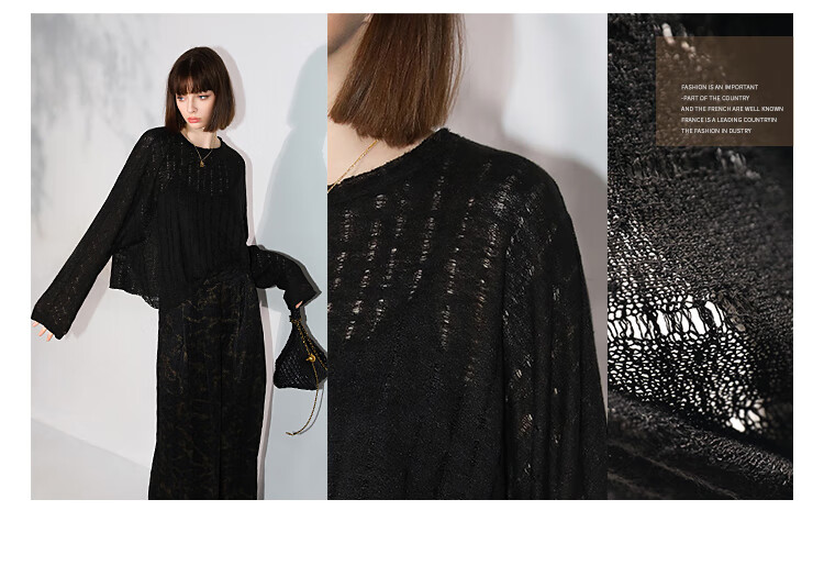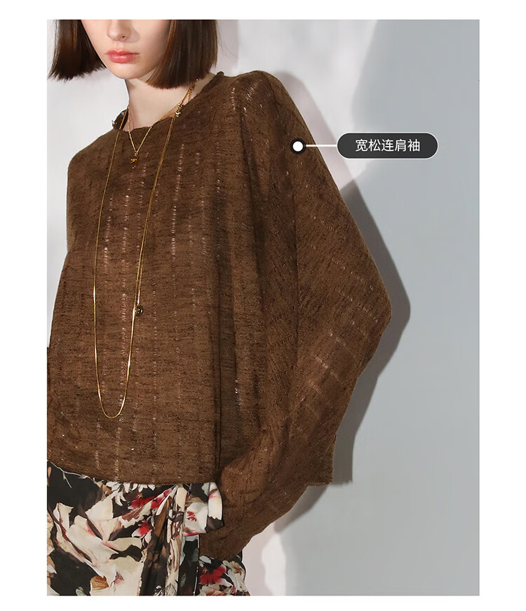 COCOBELLA设计感镂空破洞微透视针织衫女混搭毛边罩衫TS0003