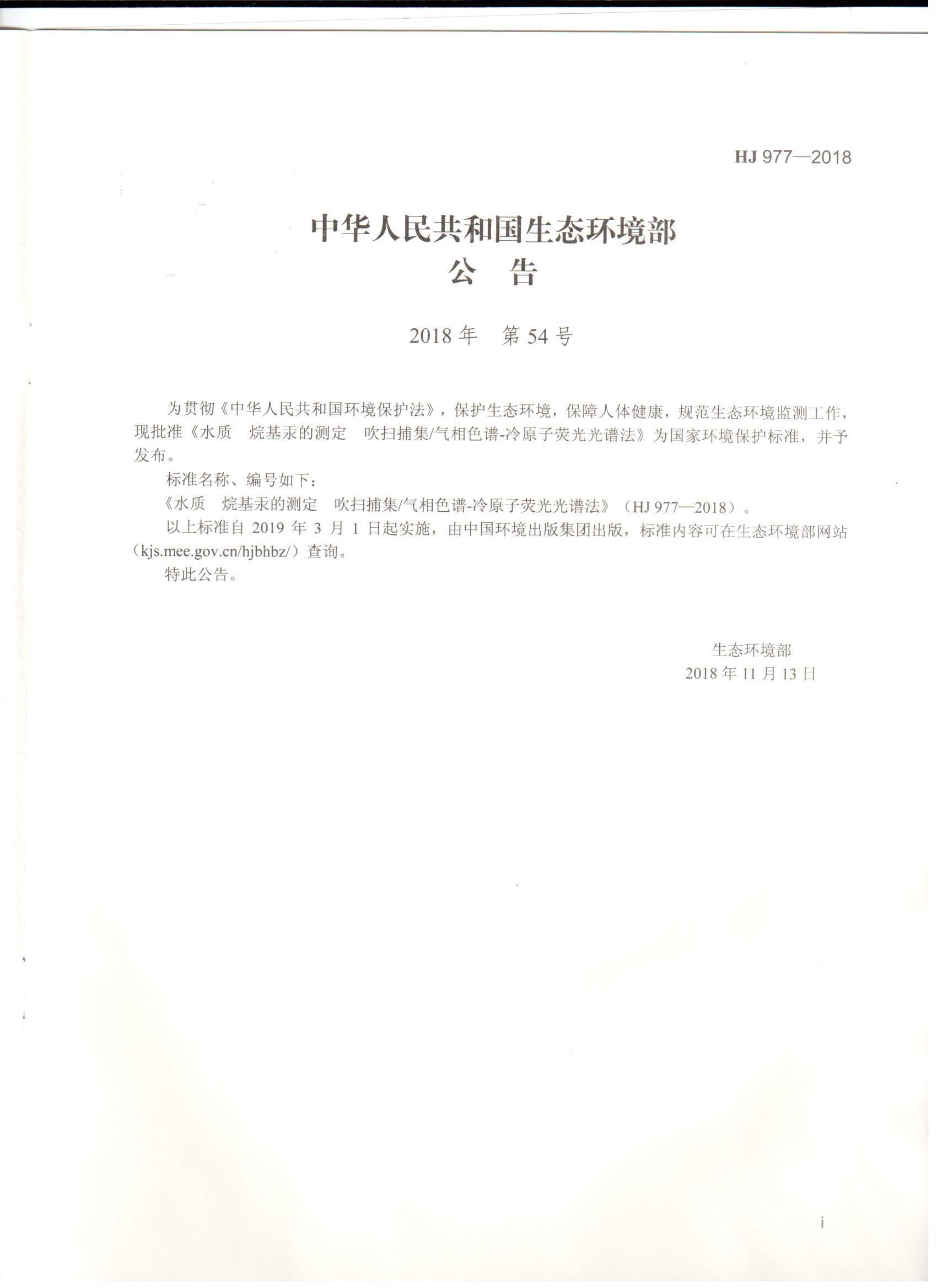 HJ 977-2018 水质 烷基汞的测定 吹扫捕集/气相色谱-冷原子荧光光谱法 环境保护标准 135111721