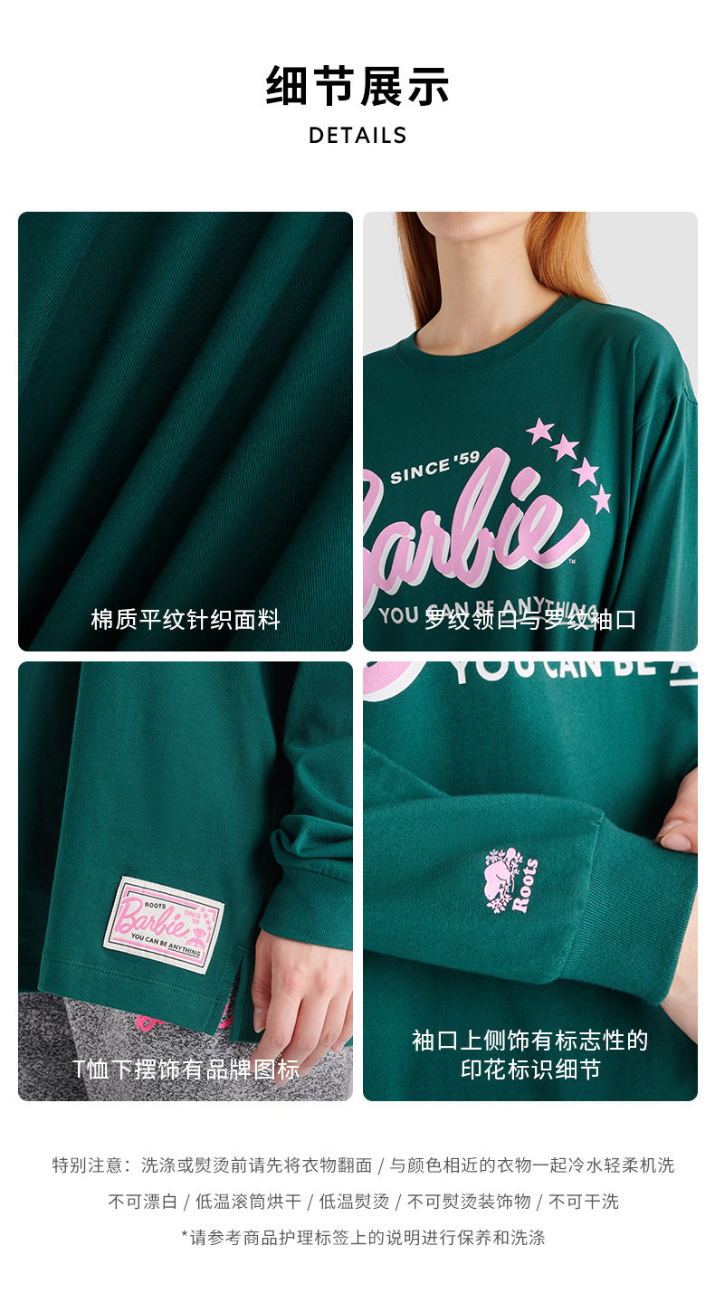 【2件9折】【ROOTS】宽松圆领长袖T恤 女士