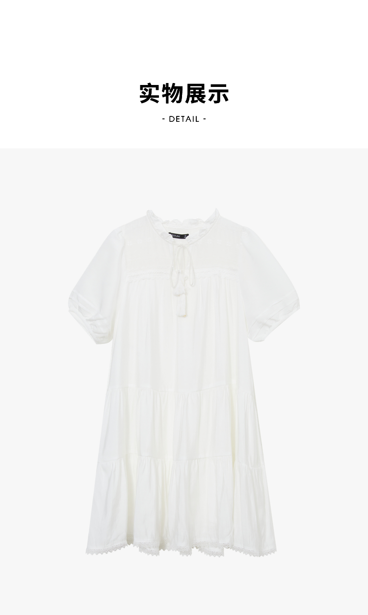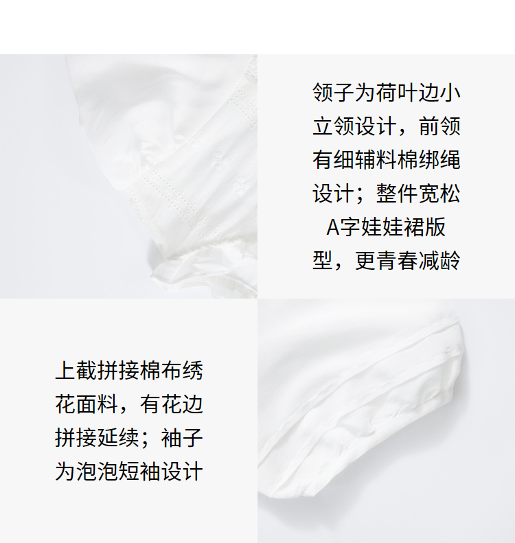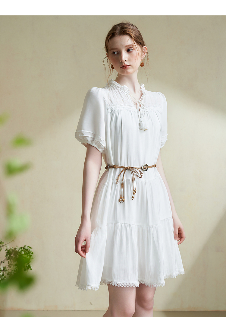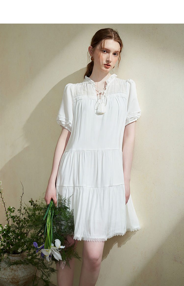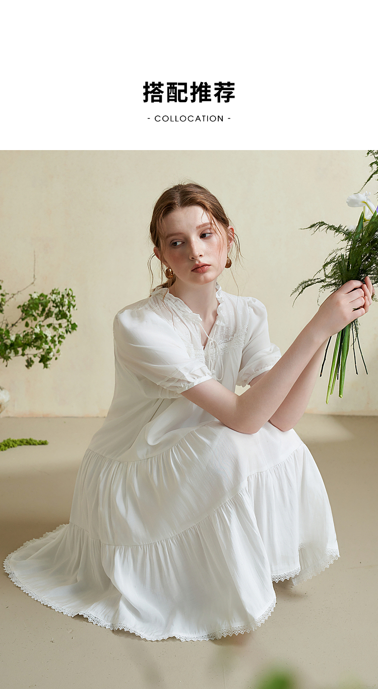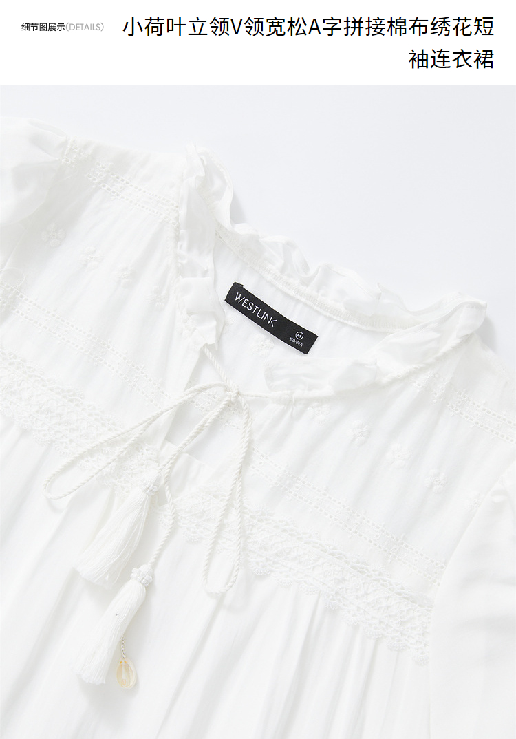 波西米亚文艺绣花连衣裙女2024夏季荷叶边立领花边小白裙V1140943