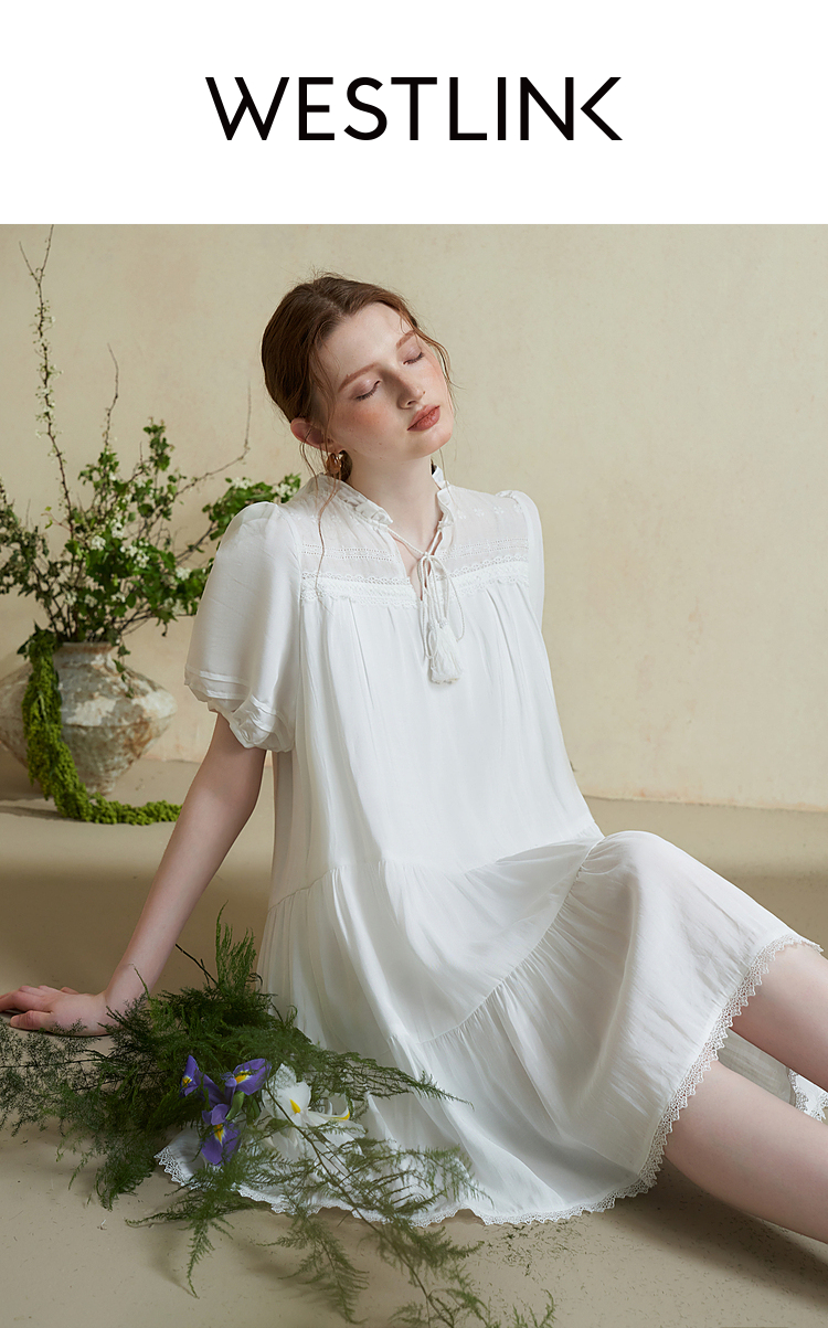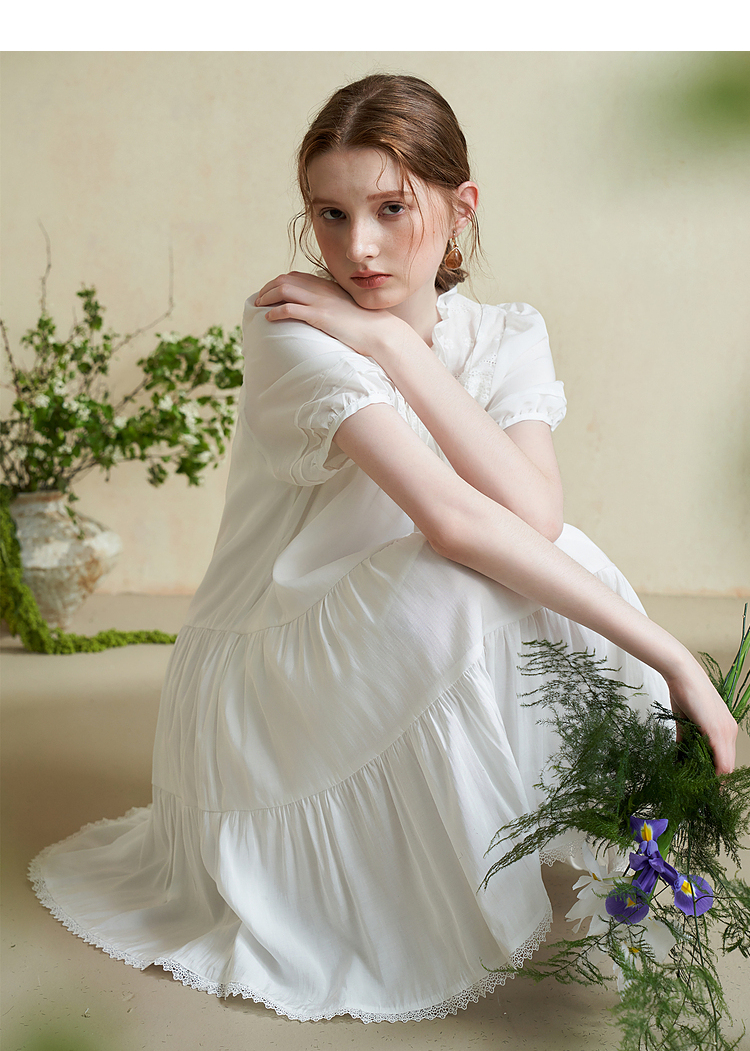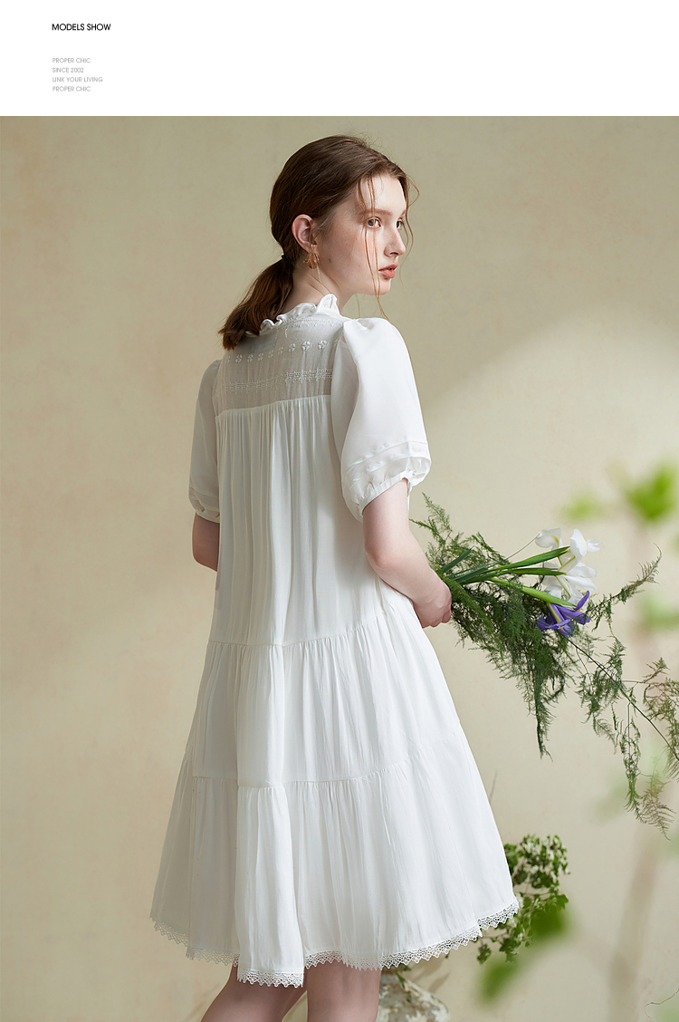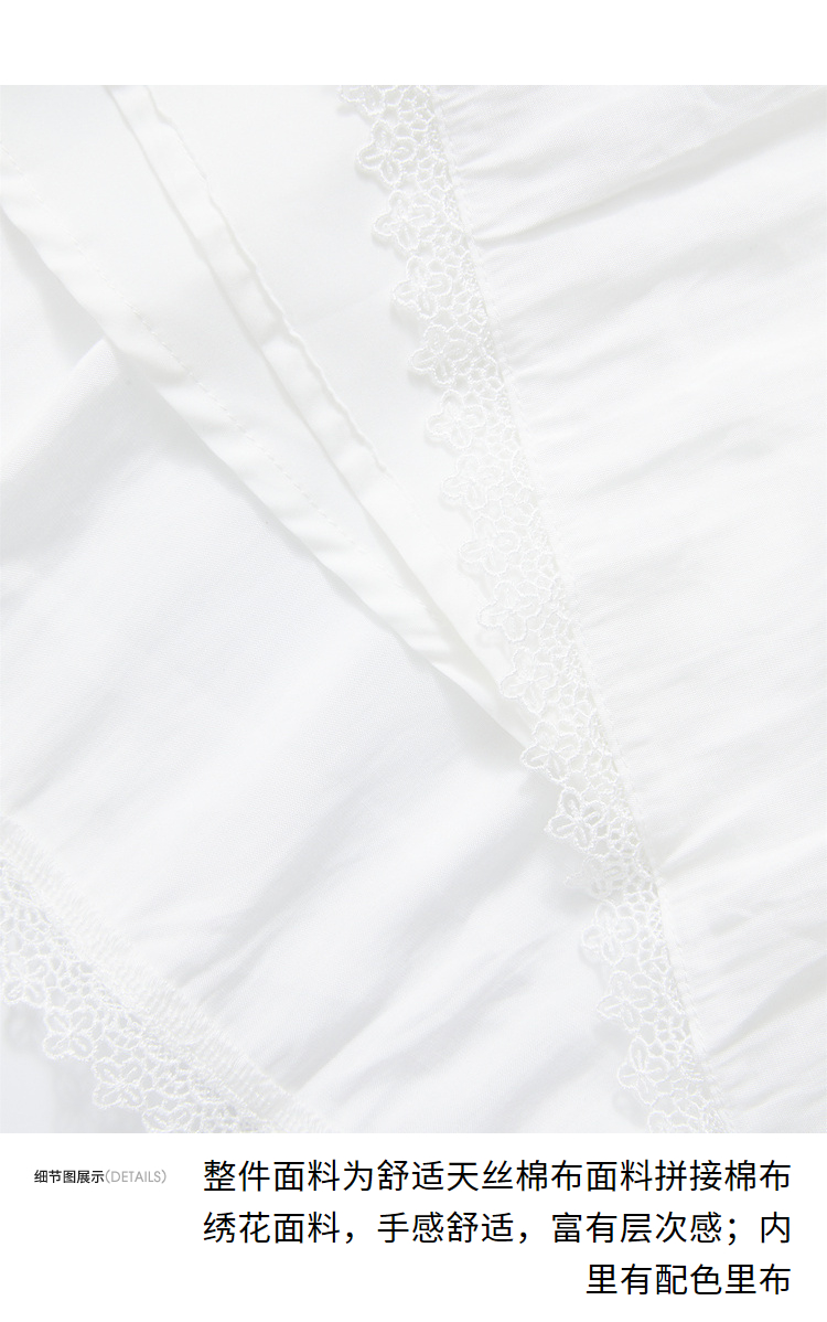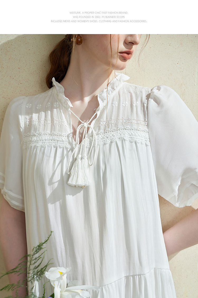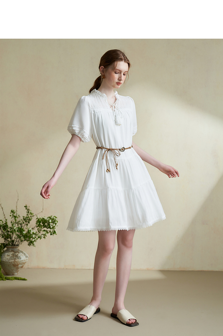 波西米亚文艺绣花连衣裙女2024夏季荷叶边立领花边小白裙V1140943