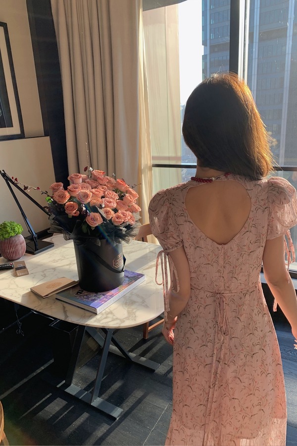 WEN&VI 藕粉色喇叭袖连衣裙 1726