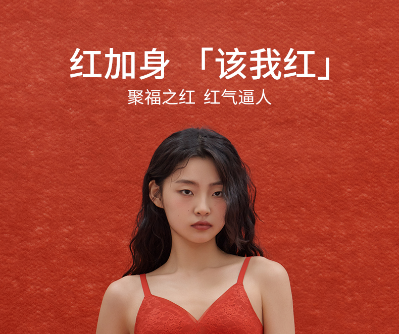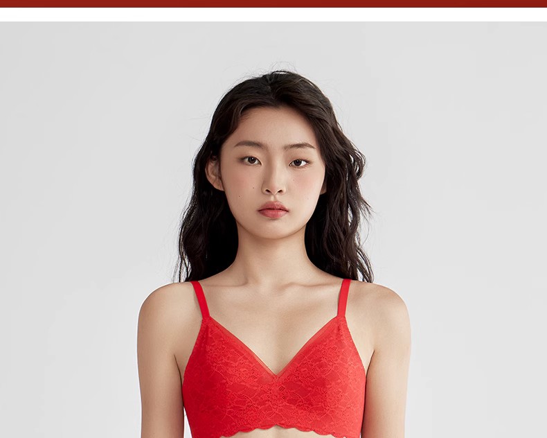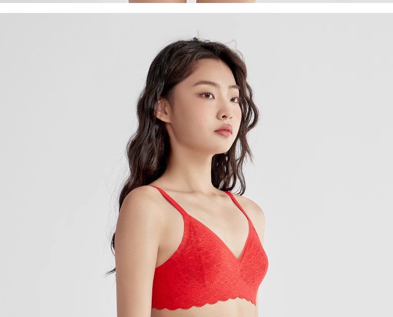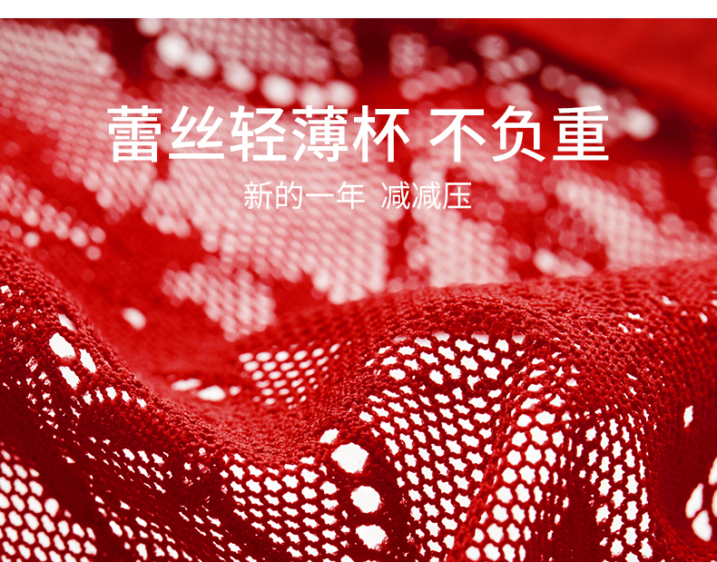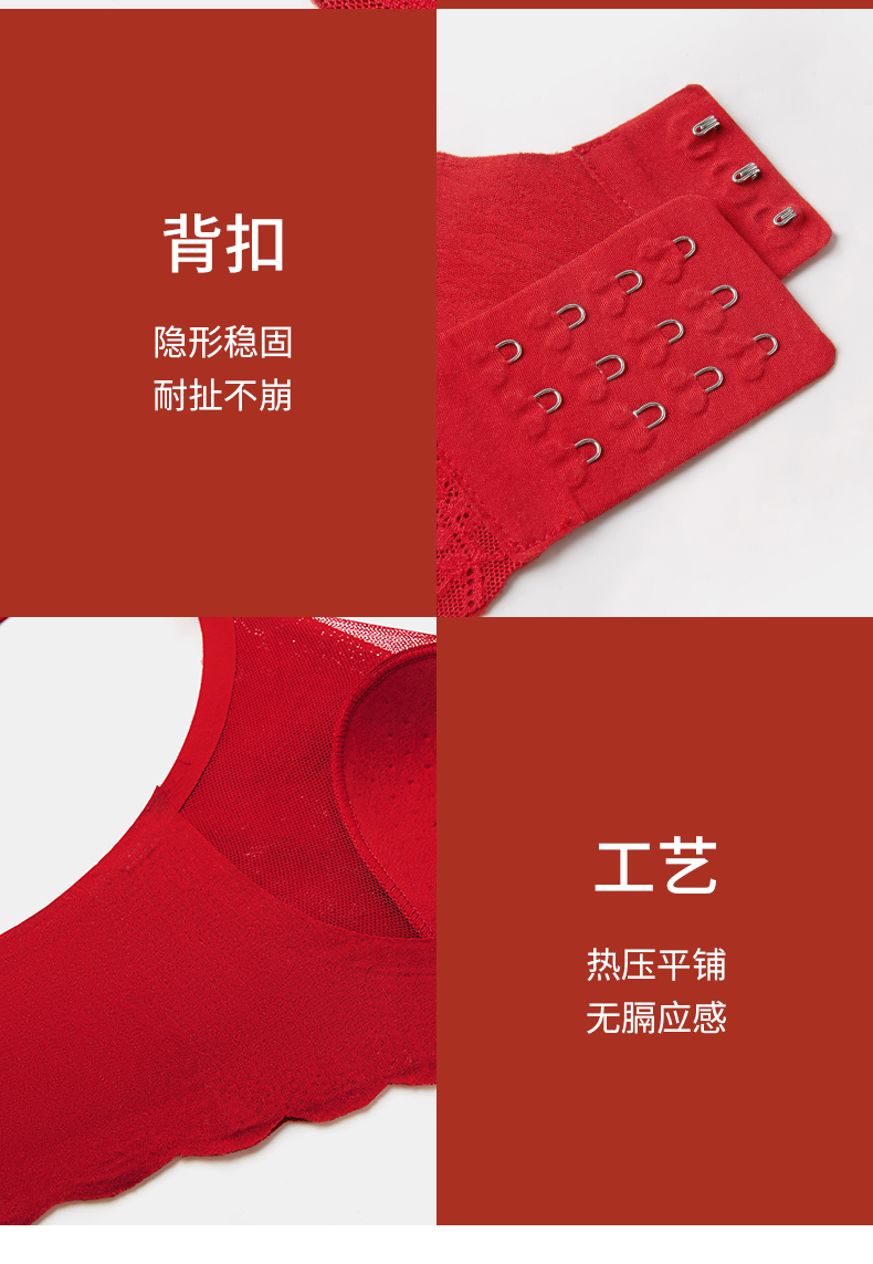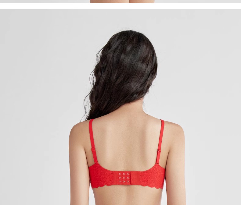 【新年限定】有棵树「3/4杯」本命年无痕无钢圈聚拢防下垂内衣女红色薄款蕾丝文胸G-B6011