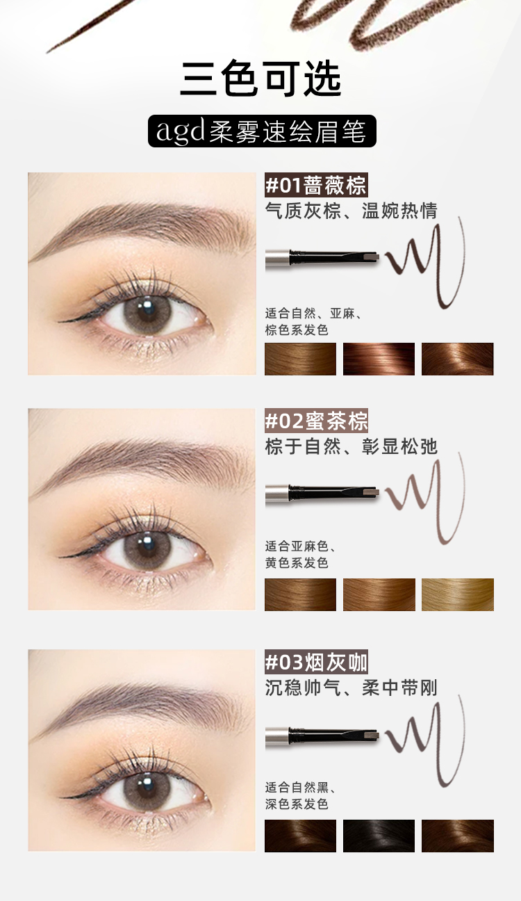 AGD柔雾速绘小斧头眉笔03烟灰咖