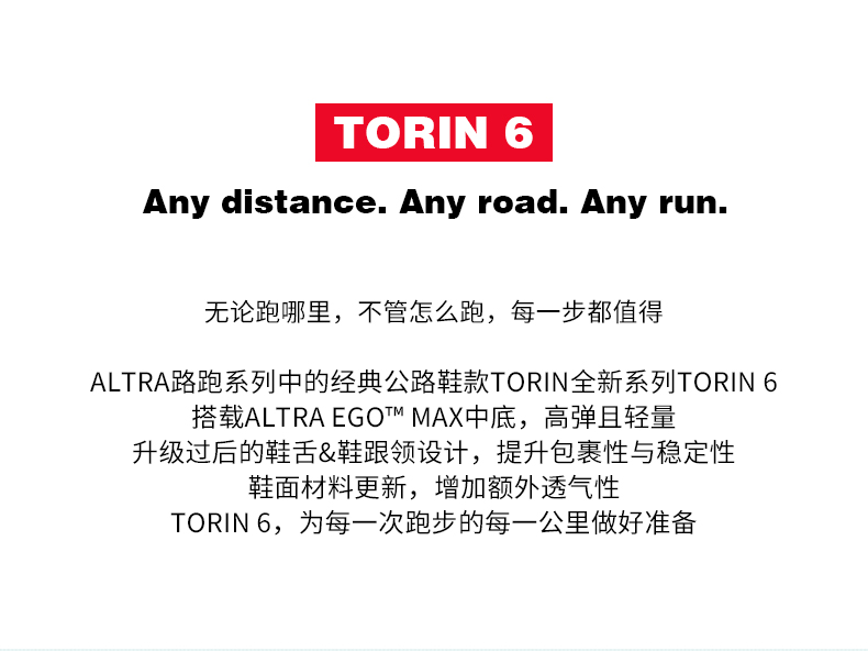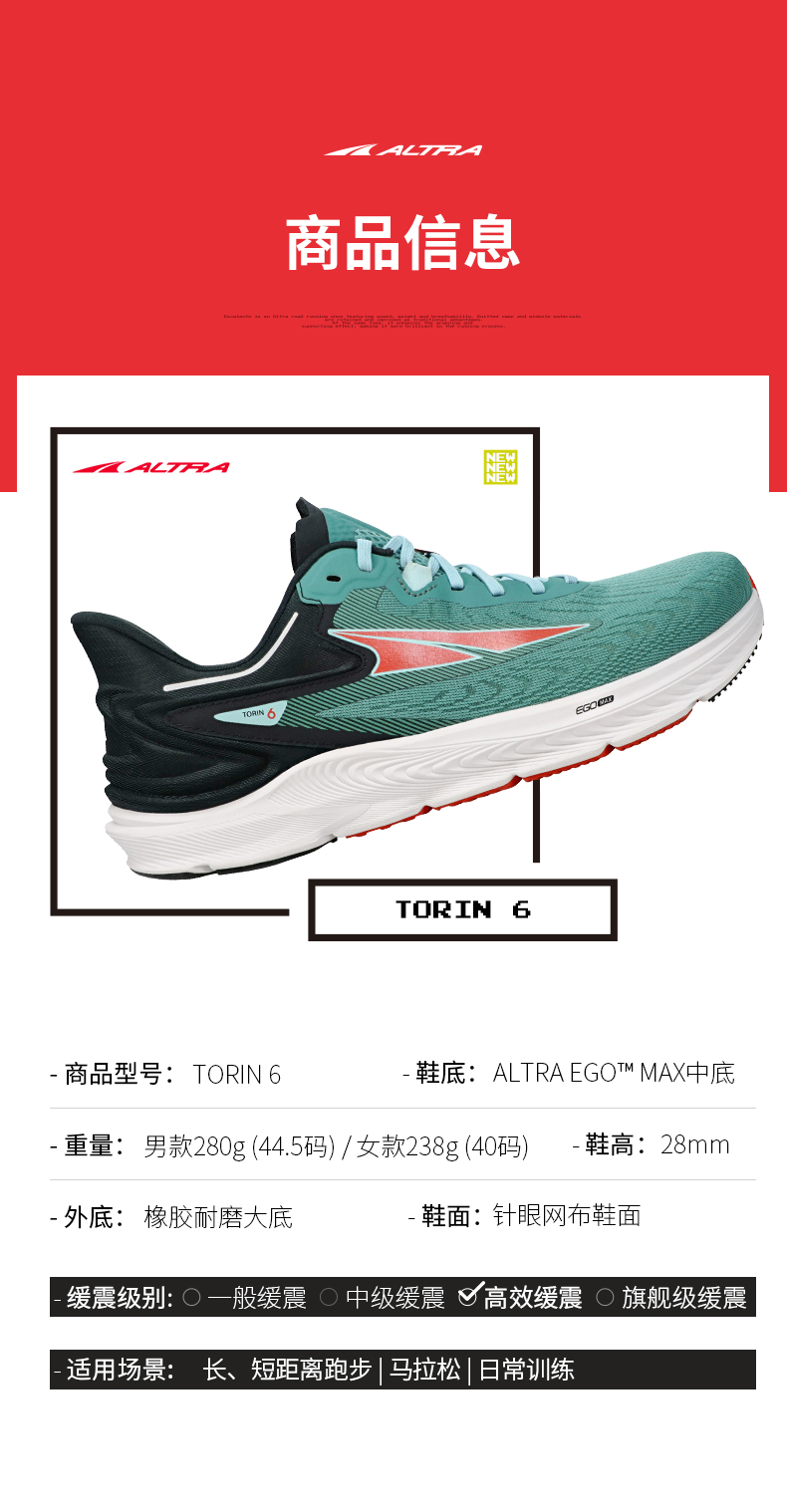 ALTRA Torin 6男女款路跑鞋缓震轻量马拉松跑鞋网面减震跑步鞋