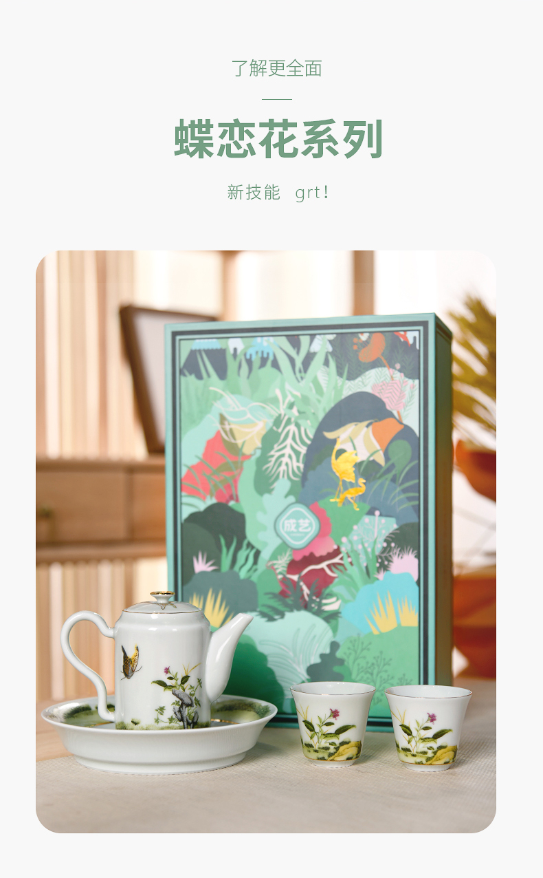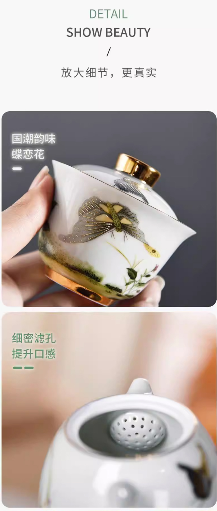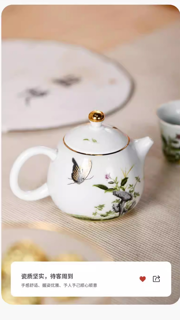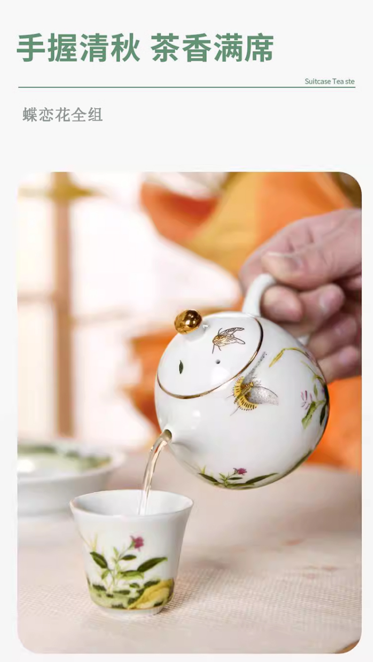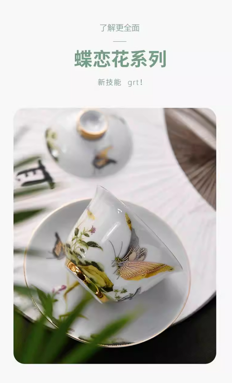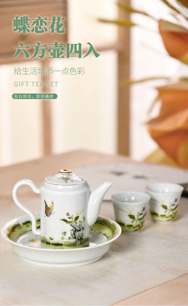 蝶恋花陶瓷茶具套装中式手绘功夫茶具景德镇家用茶壶茶杯礼盒送礼成艺蝶恋花福缘小茶盘6入