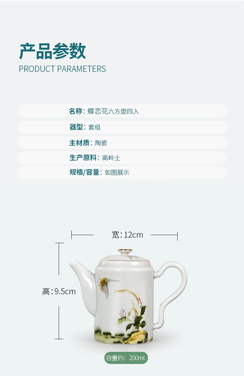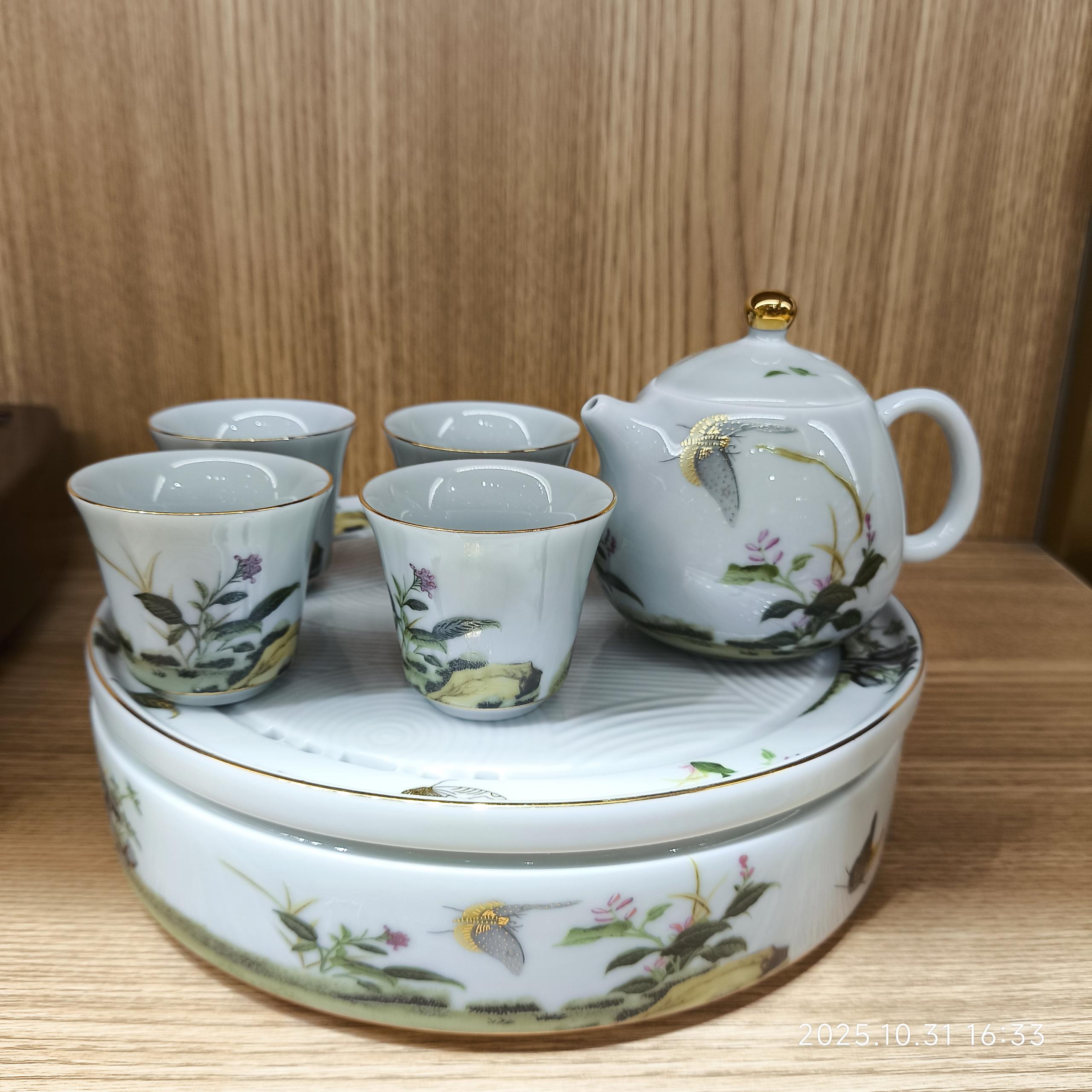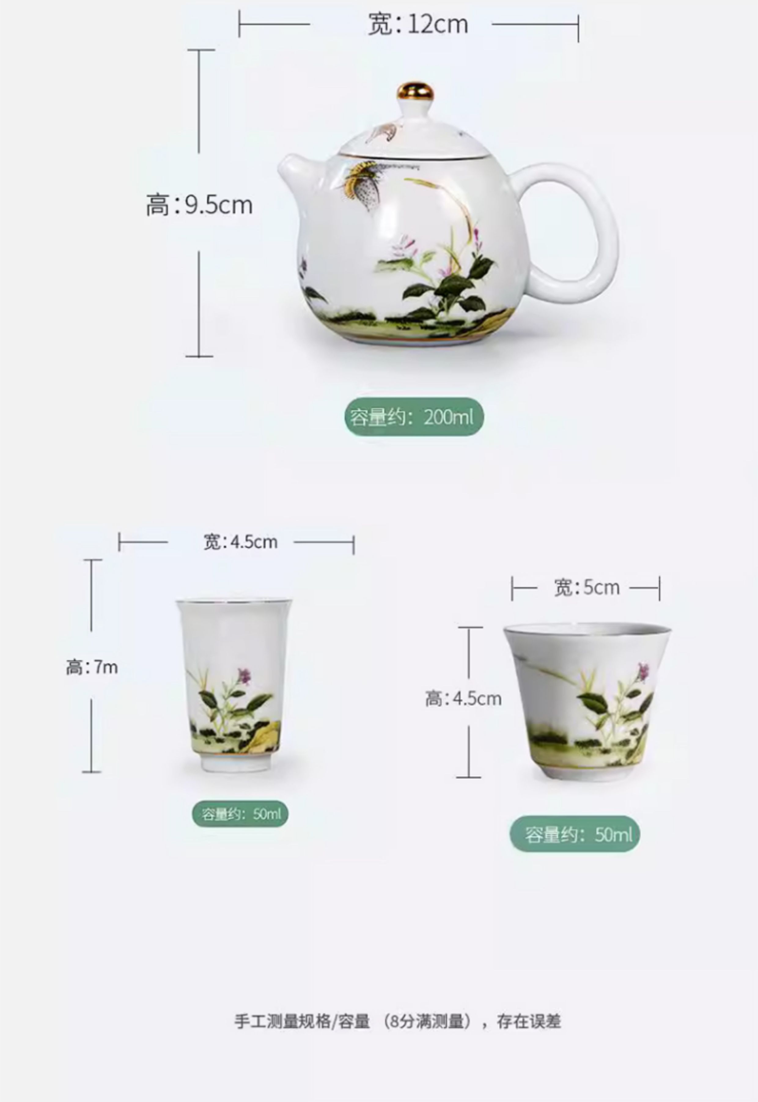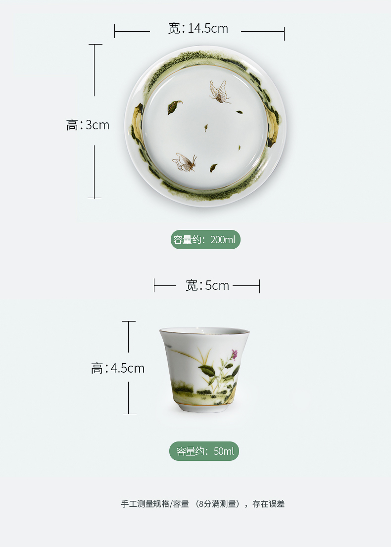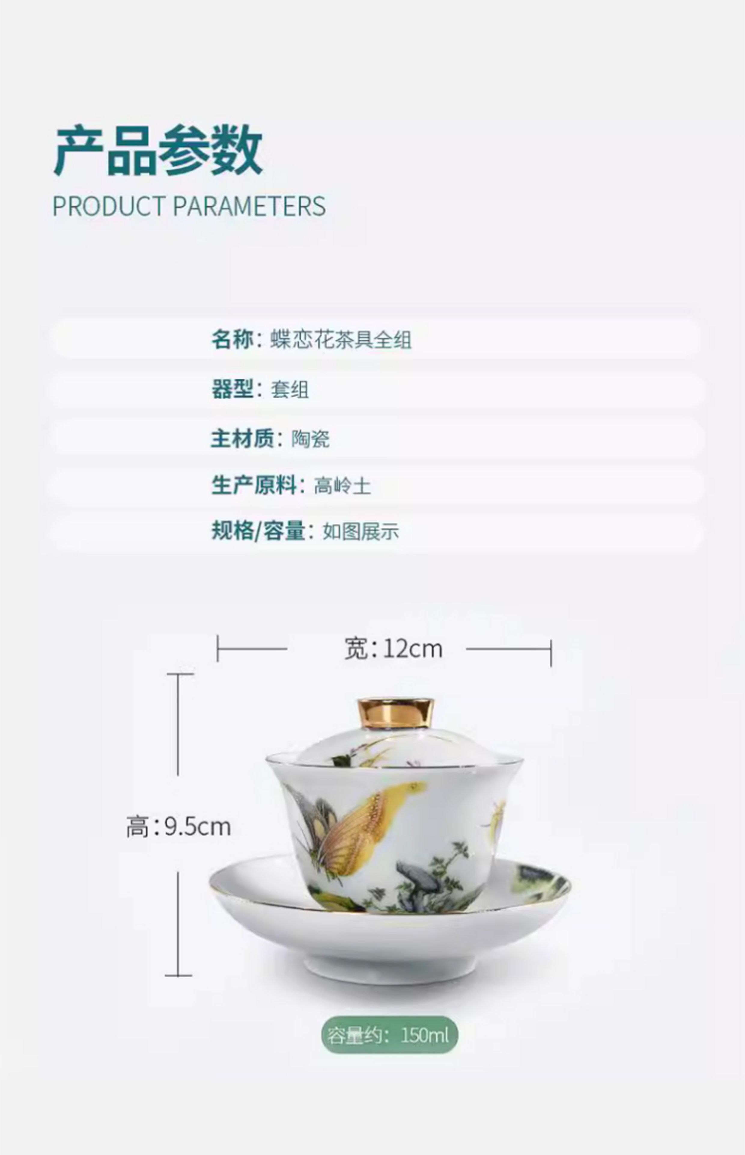蝶恋花陶瓷茶具套装中式手绘功夫茶具景德镇家用茶壶茶杯礼盒送礼成艺蝶恋花福缘小茶盘6入