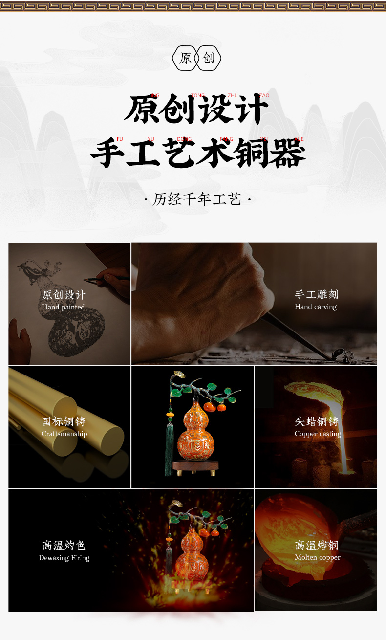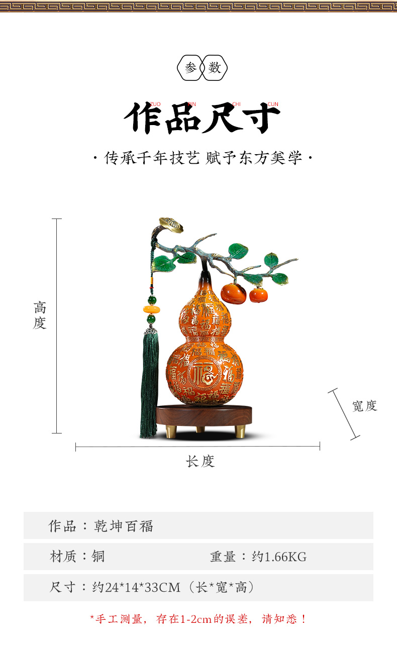 E-YM-FK283 彩铜工艺 事事如意葫芦摆件 240*100*300