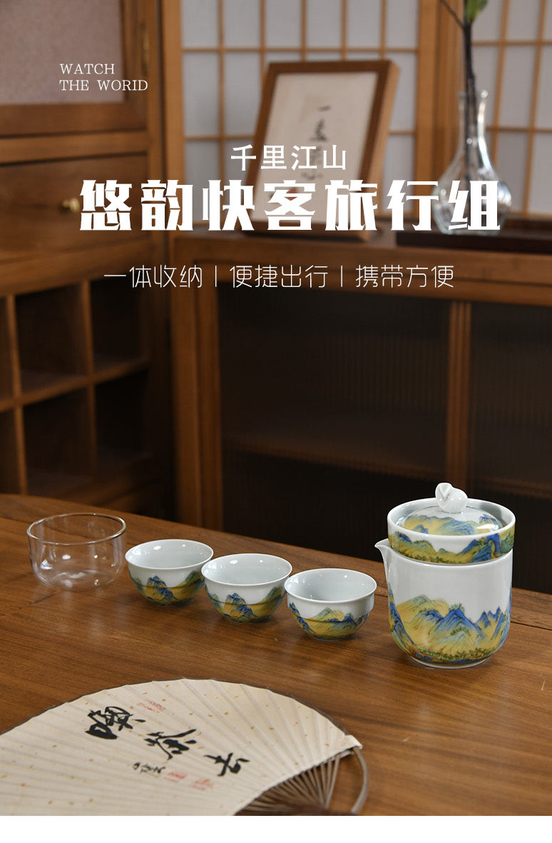 成艺快客旅行茶具户外随手泡车载酒店小茶具套装高硼硅玻璃杯水杯成艺千里江山悠韵快客旅行组
