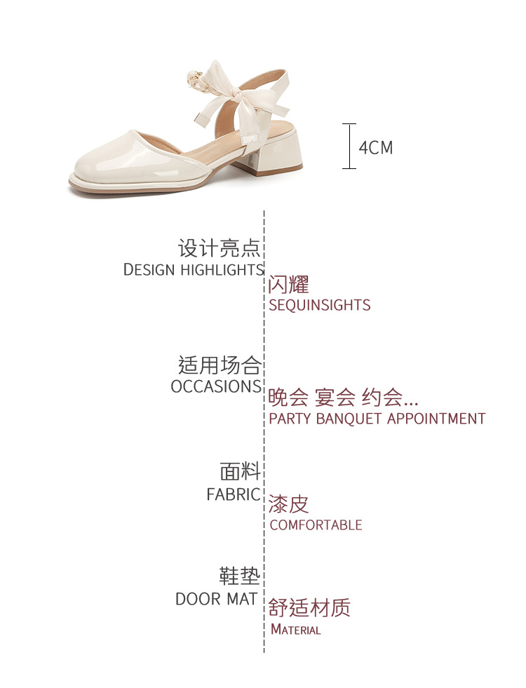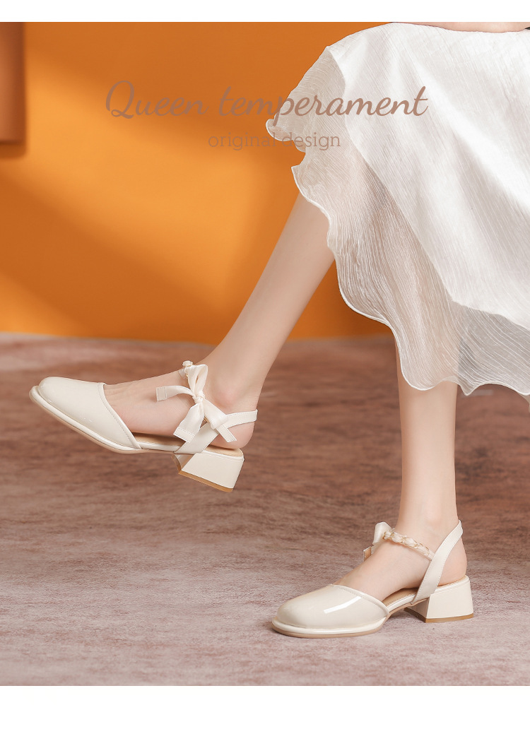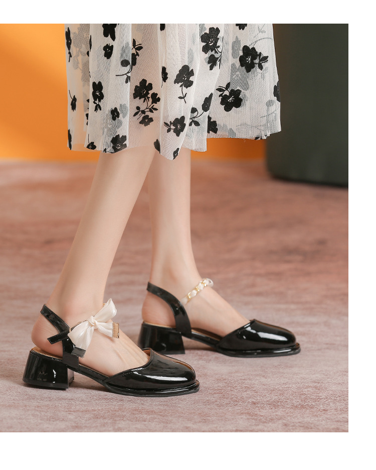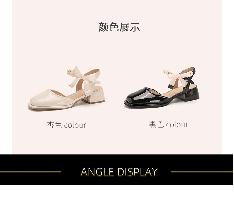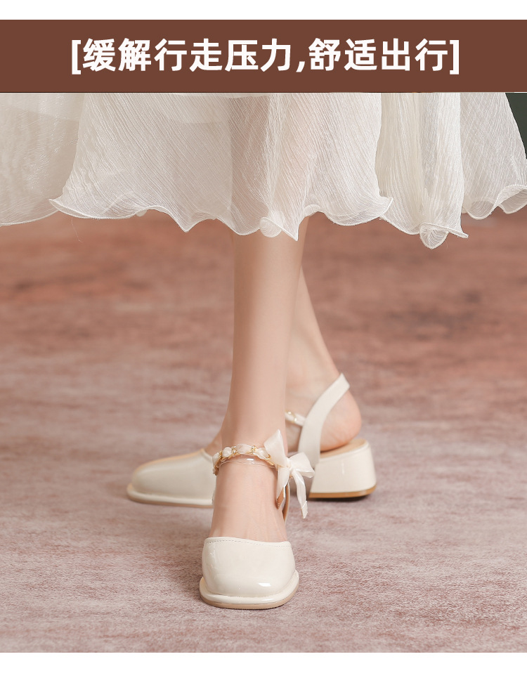 「黑白两色!优雅设计风」玛丽珍凉鞋2023年春夏新款仙女风蝴蝶结粗跟包头后空高跟鞋单鞋女