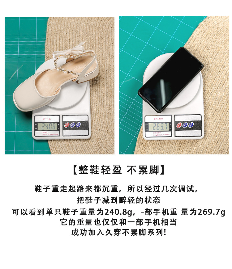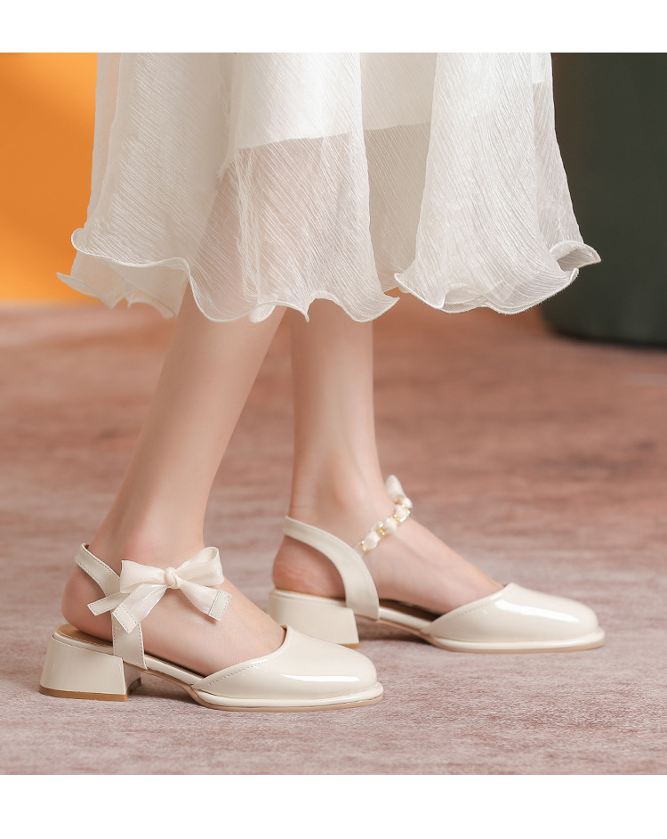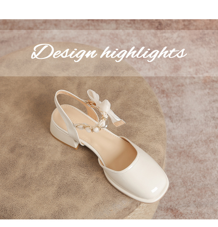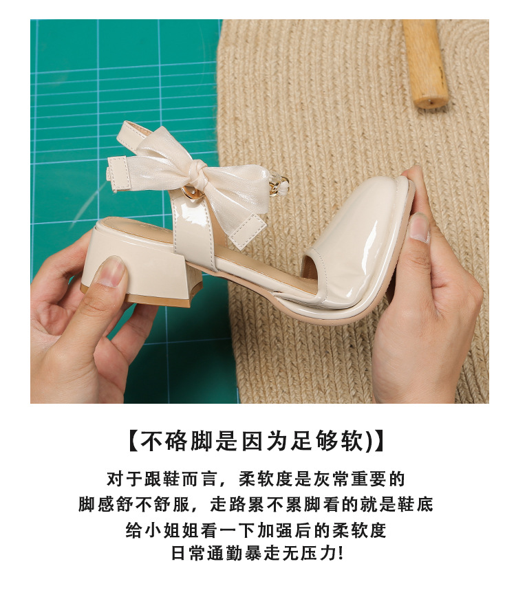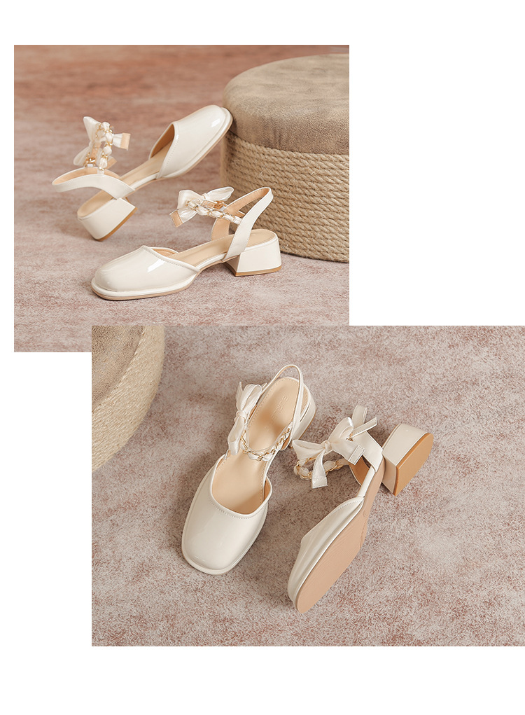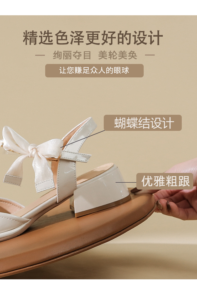 「黑白两色!优雅设计风」玛丽珍凉鞋2023年春夏新款仙女风蝴蝶结粗跟包头后空高跟鞋单鞋女
