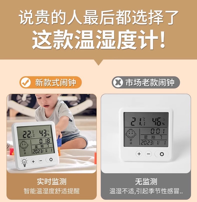 「9.9到手!升级迷你款」电子数显温湿度计室内居家日用婴儿时钟壁挂式温度表