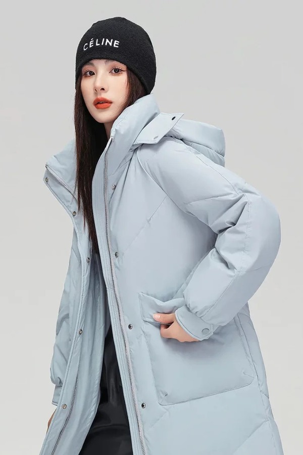 雪中飞 蓝色简约休闲中长款羽绒服外套 21682