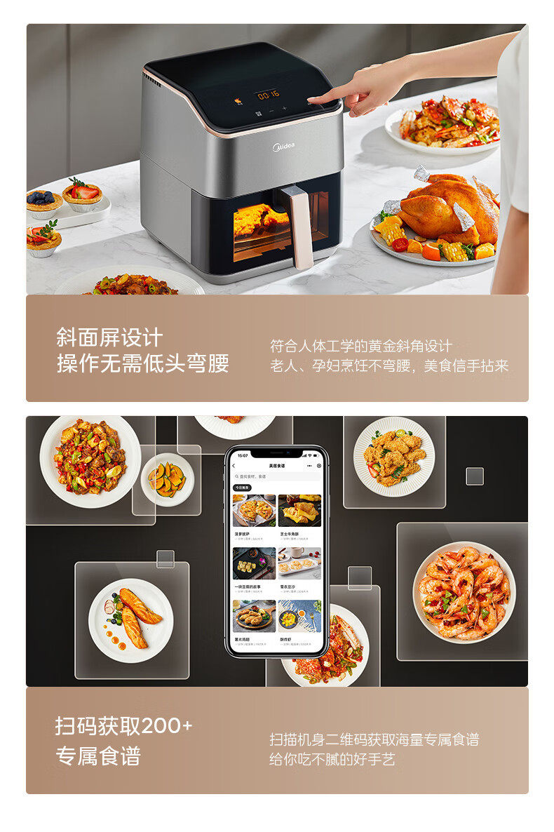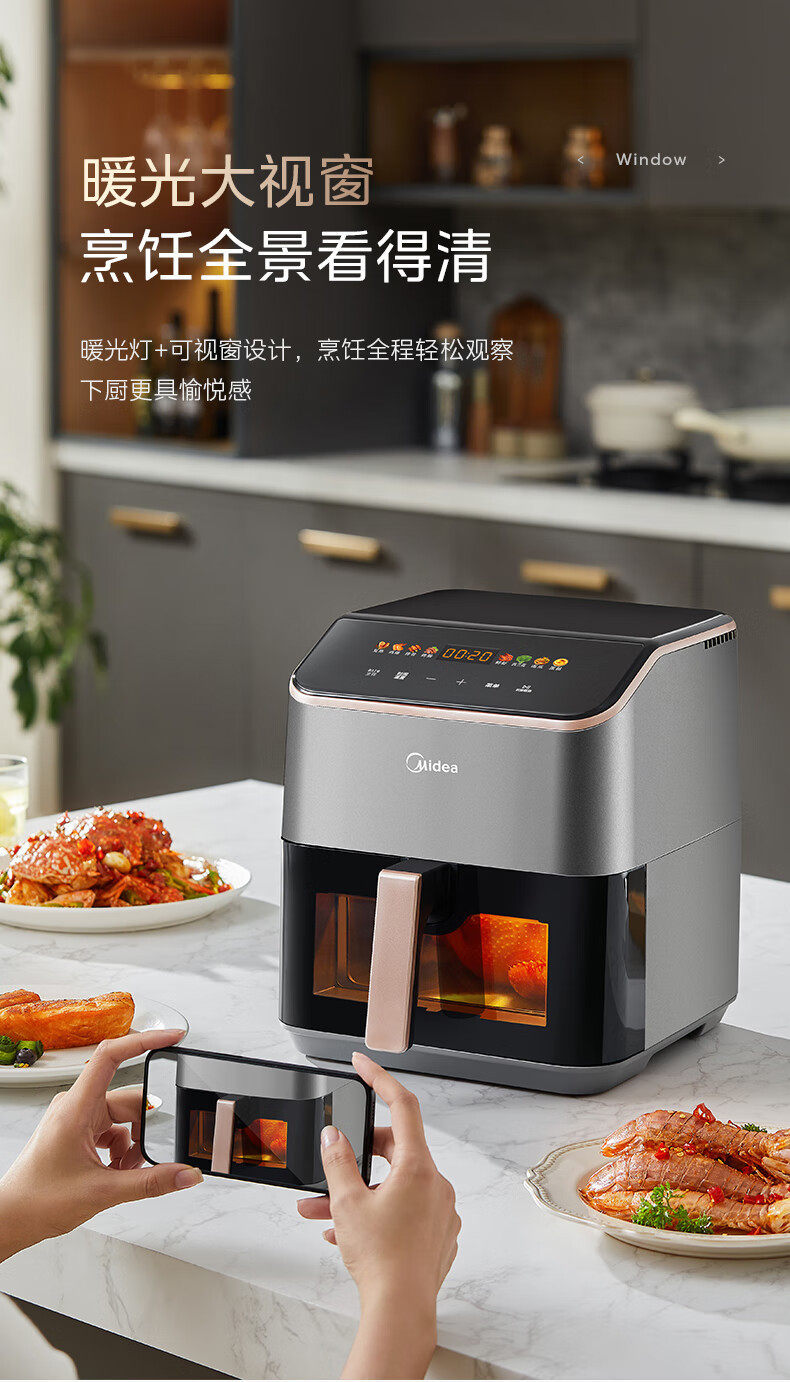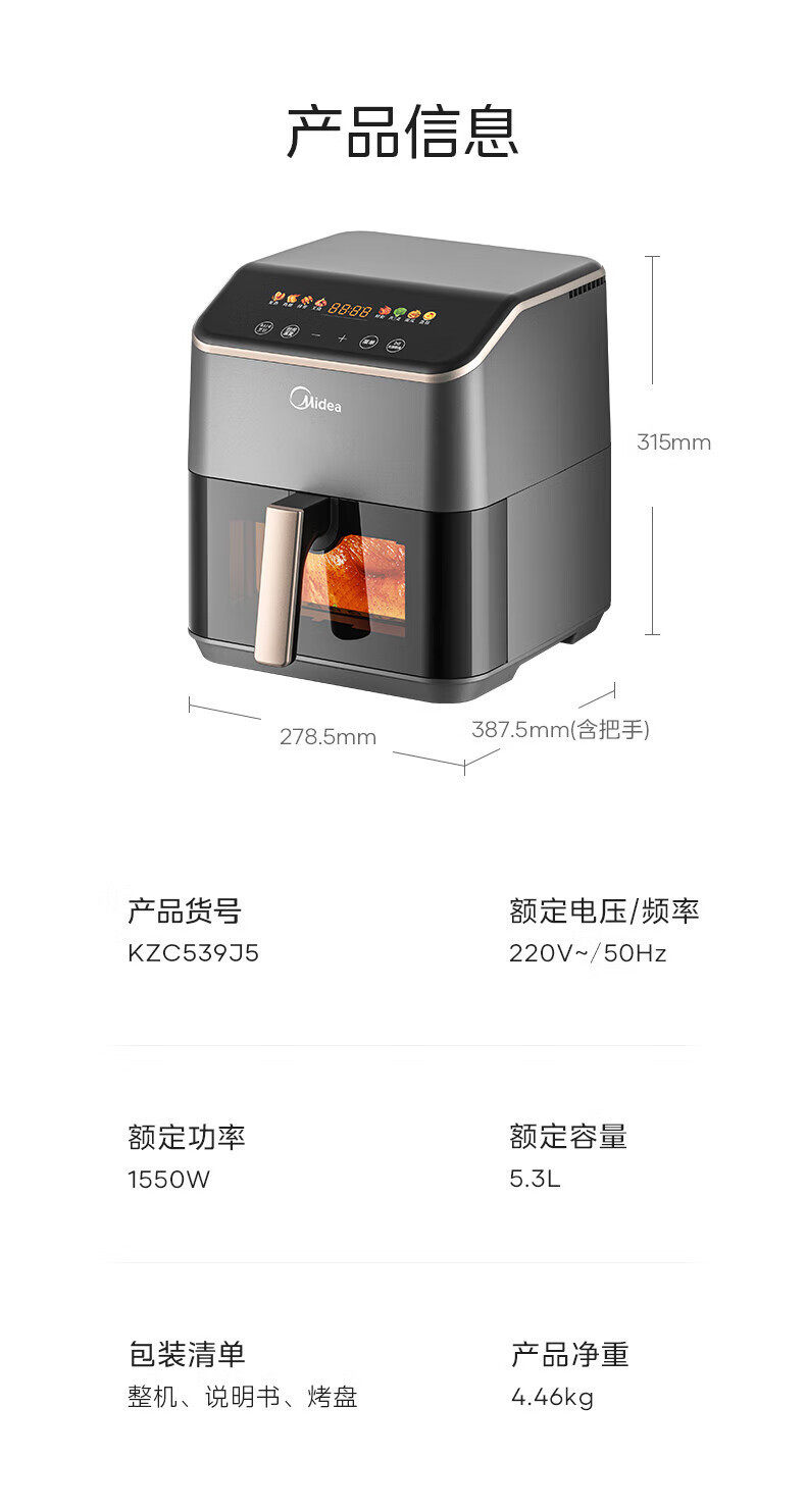 美的空气炸锅免翻面可视家用5.3L炸烤箱一体多功能易洗KZC539J5