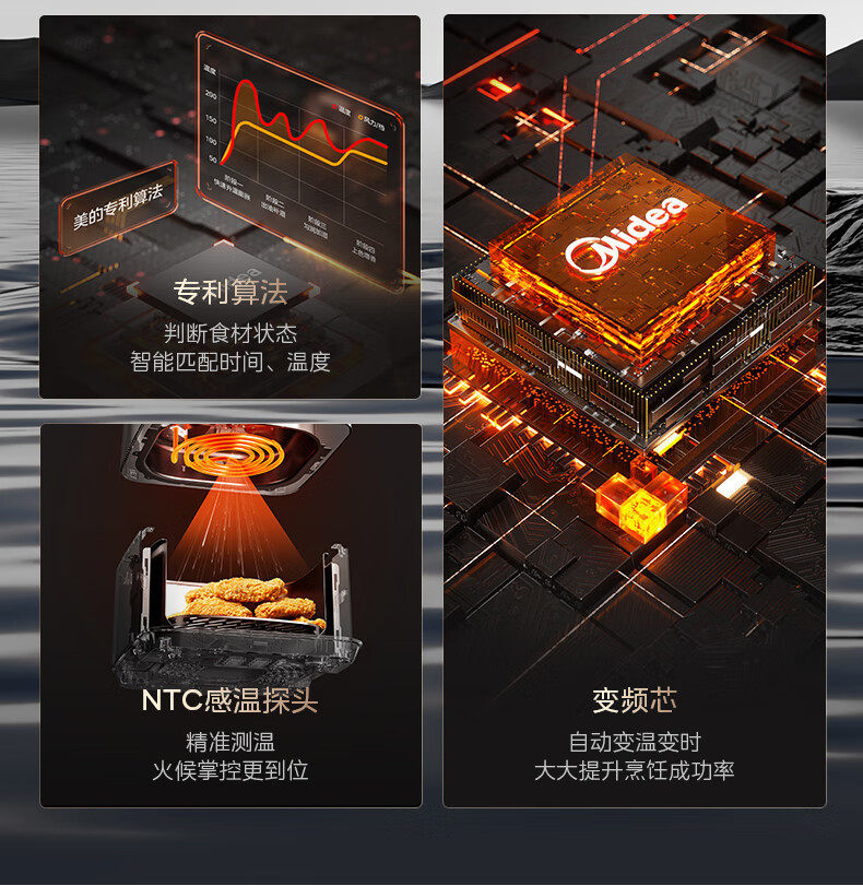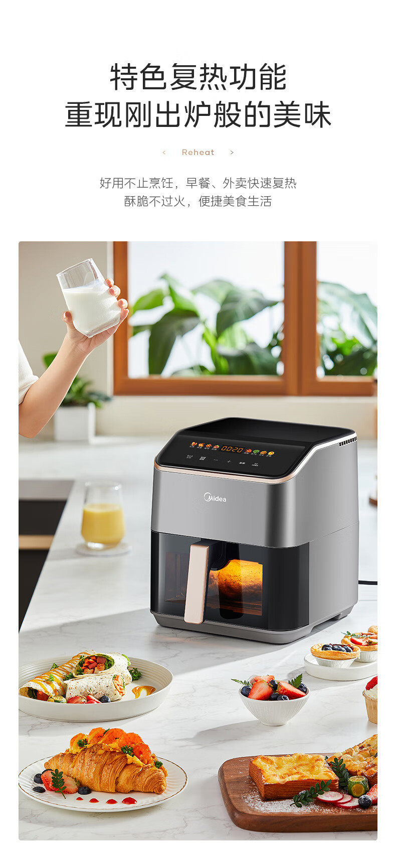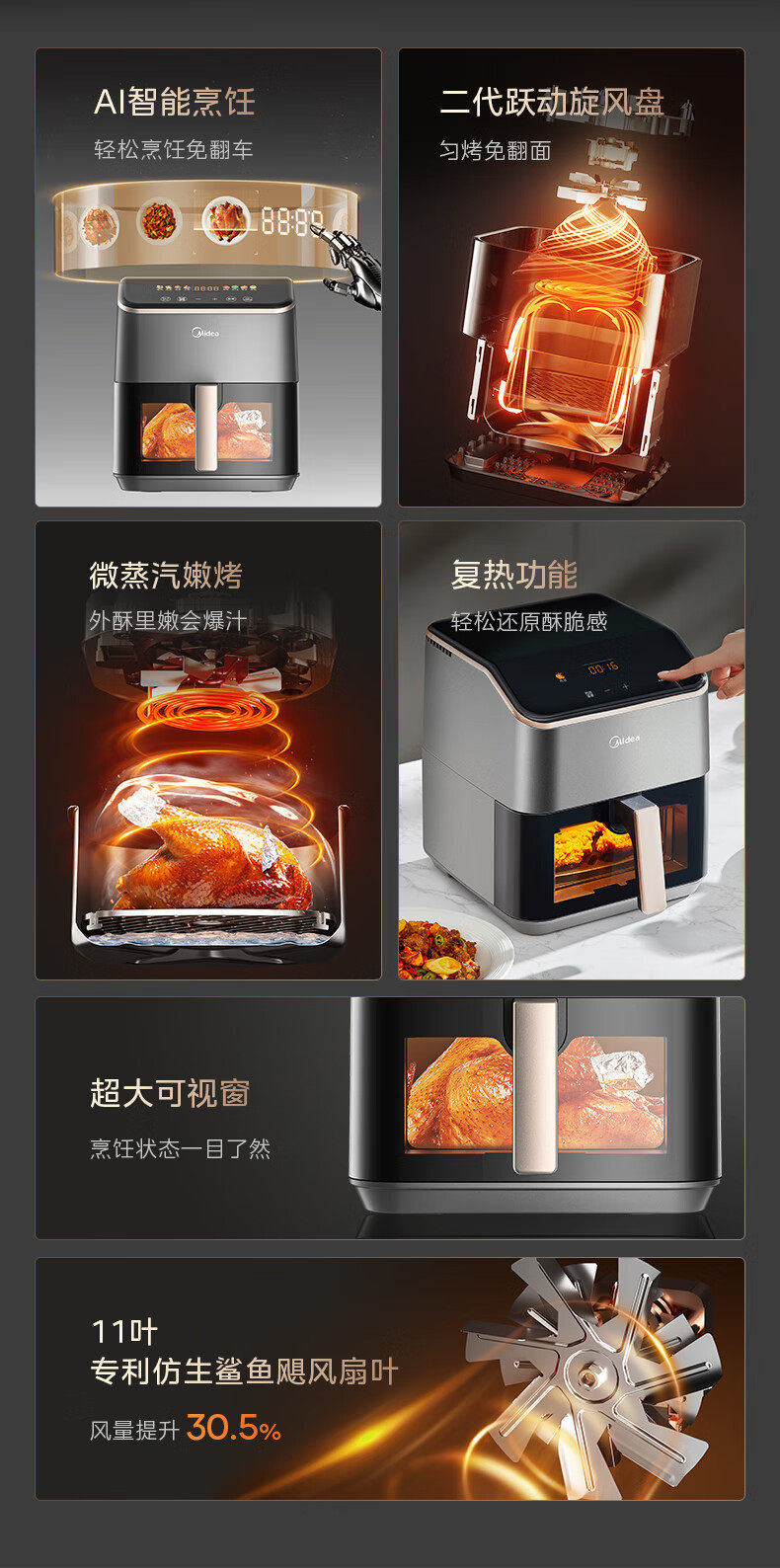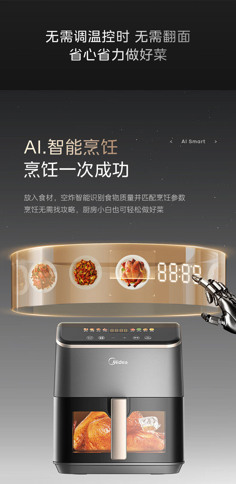 美的空气炸锅免翻面可视家用5.3L炸烤箱一体多功能易洗KZC539J5