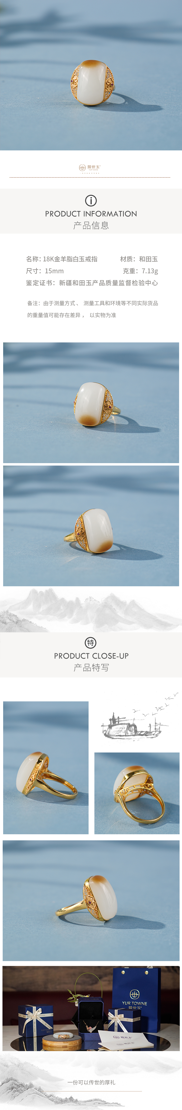 「鎏金岁月」系列【蜜雪】金镶羊脂玉蓝宝戒指