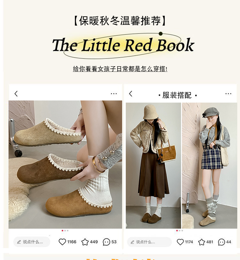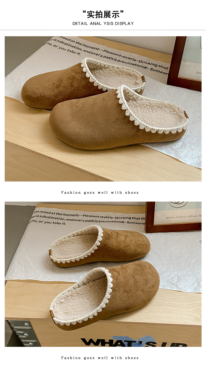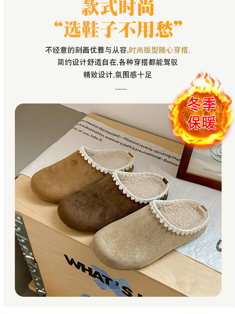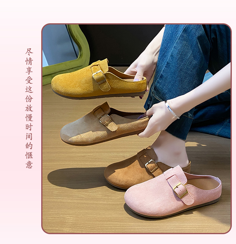 复古平底勃肯鞋女2025年春秋冬款加绒新款一脚蹬拖鞋软底防滑半包/全包博肯