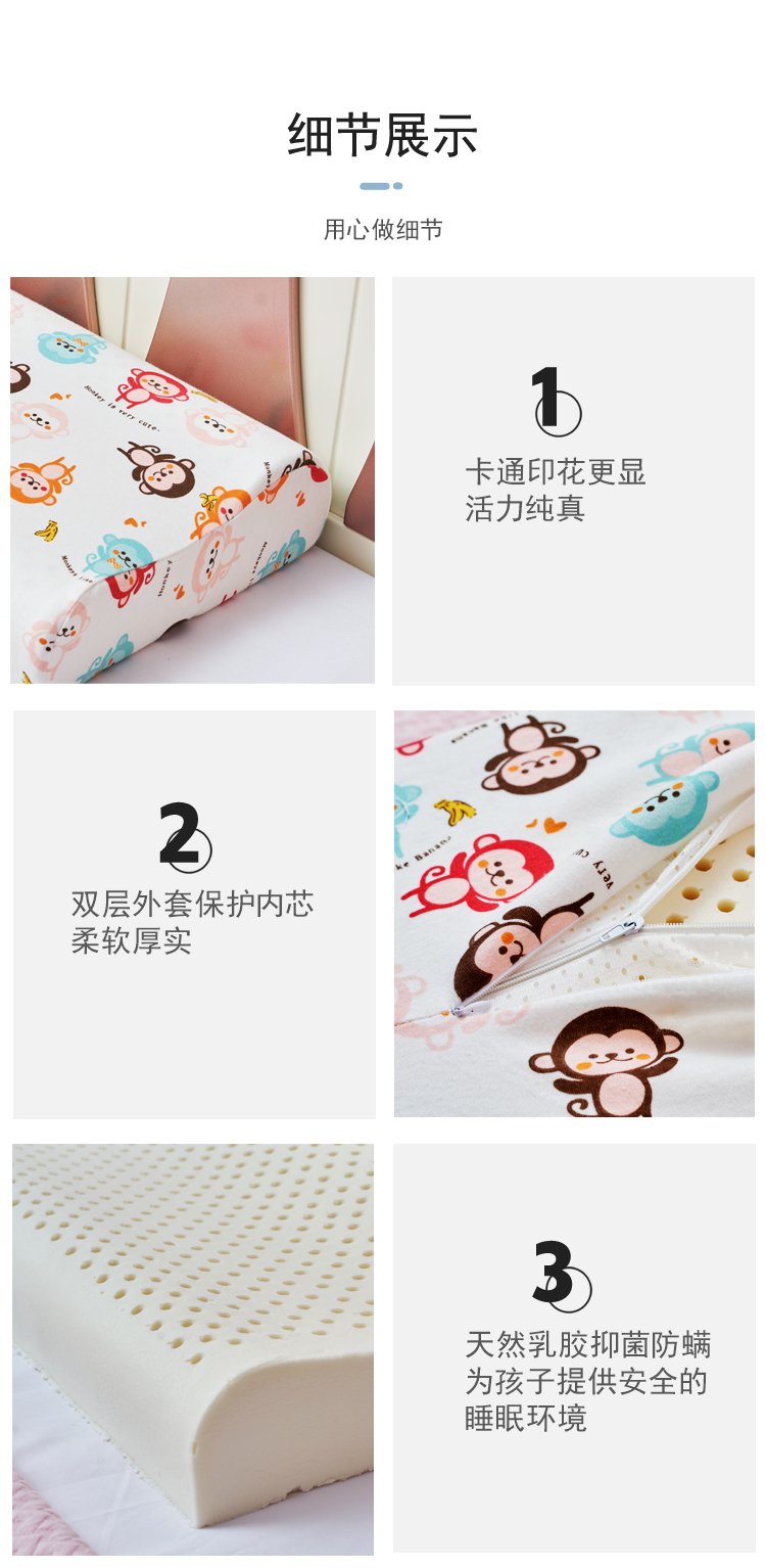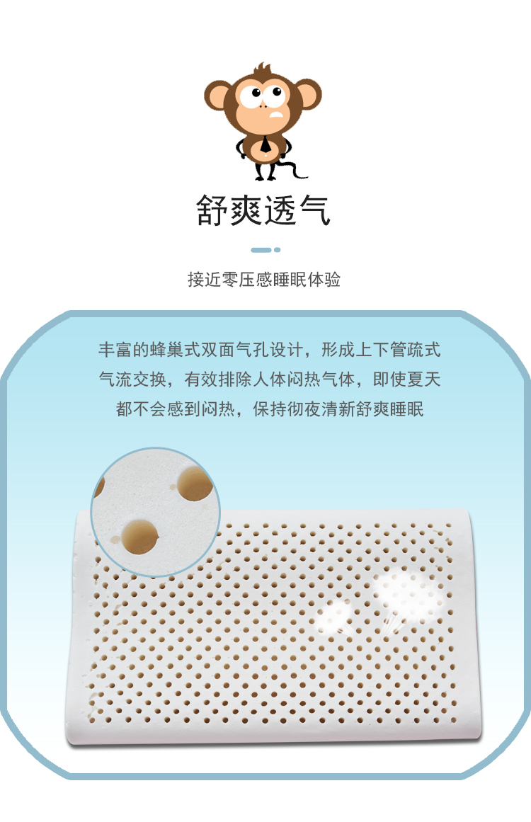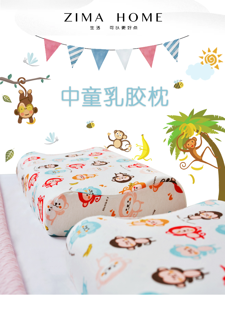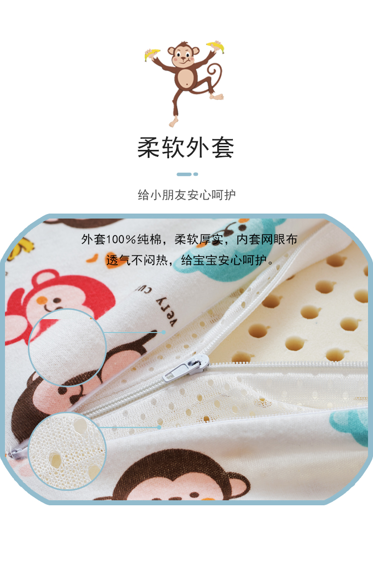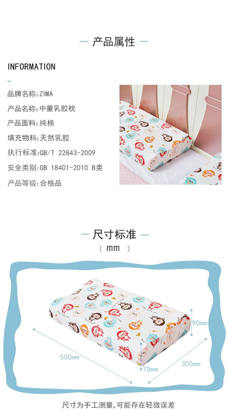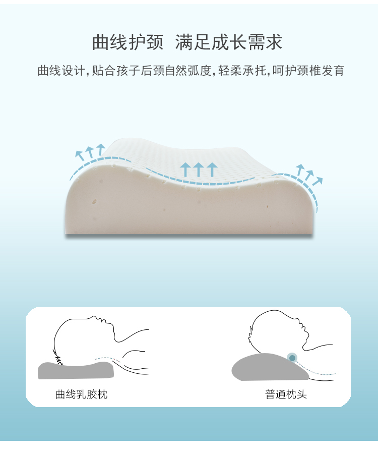 泰国天然乳胶儿童透气护颈枕(适合5-13岁)中童枕(50cm*30cm*7/9cm)【够意思】