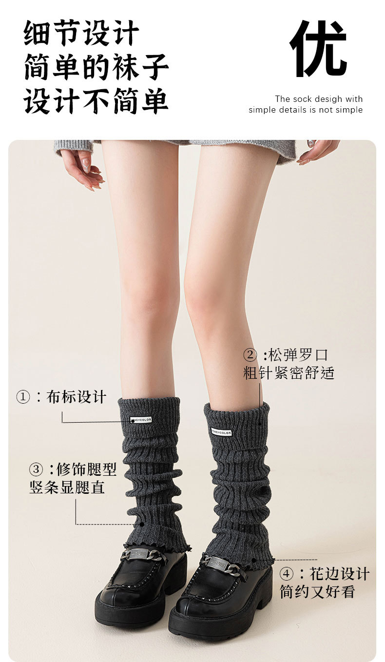 灰色袜套女长筒小腿袜腿套秋冬加厚保暖洛丽塔Lolita堆堆袜套新款新品