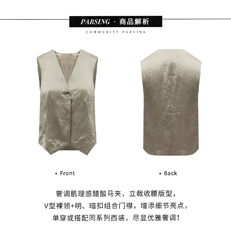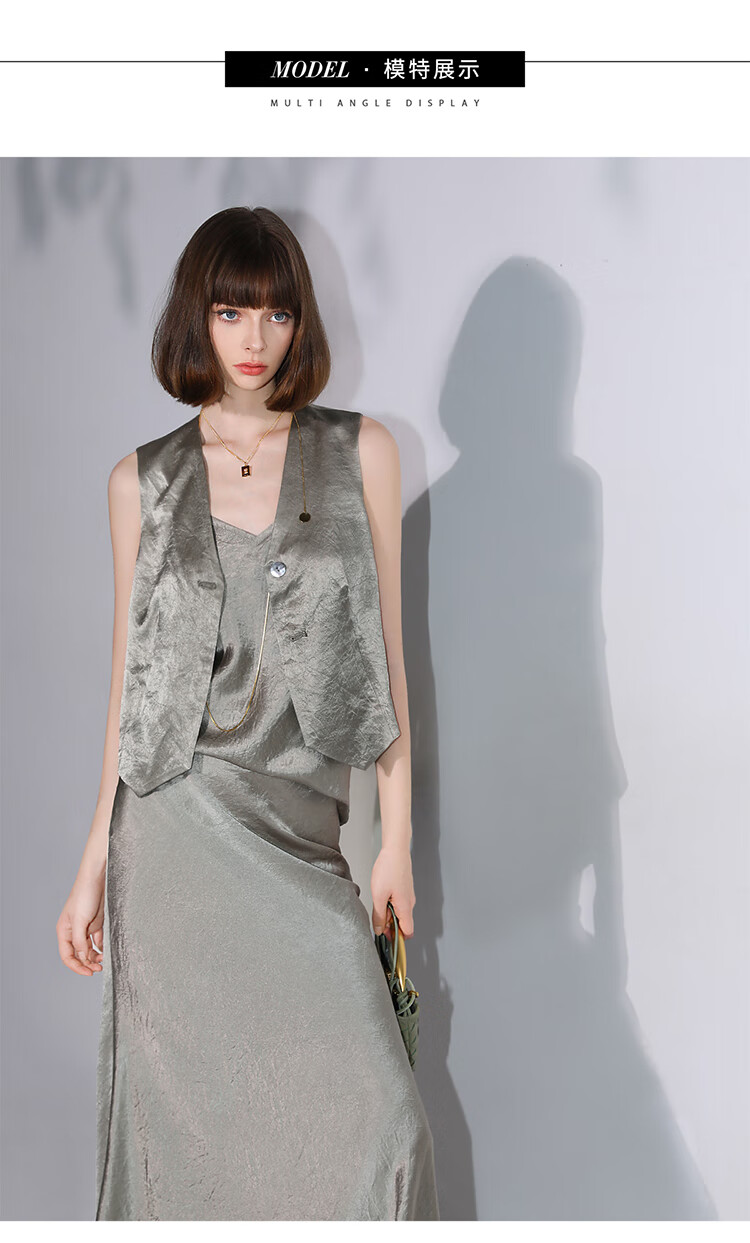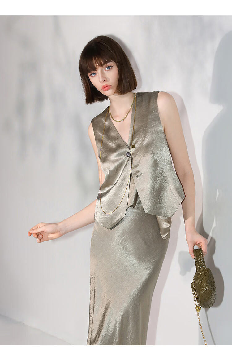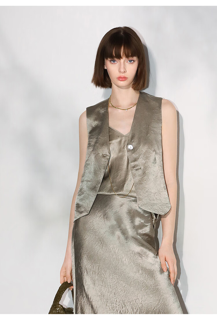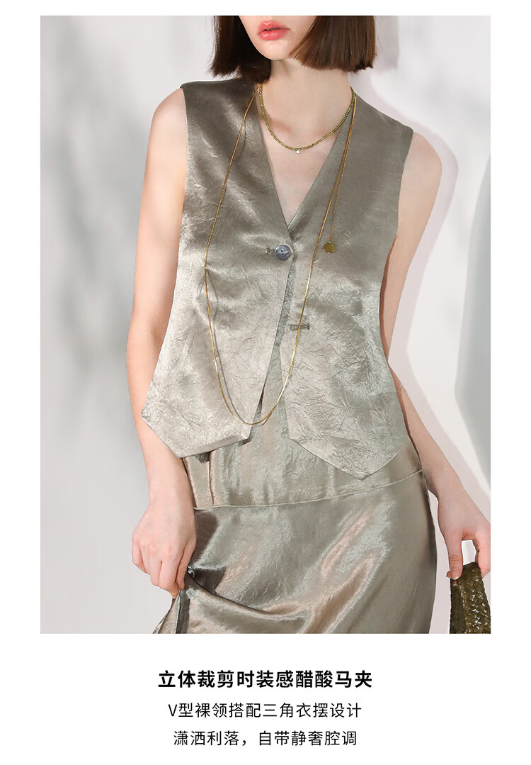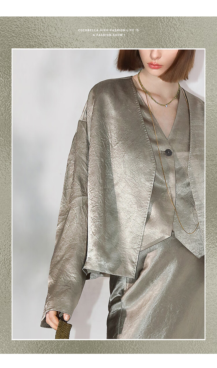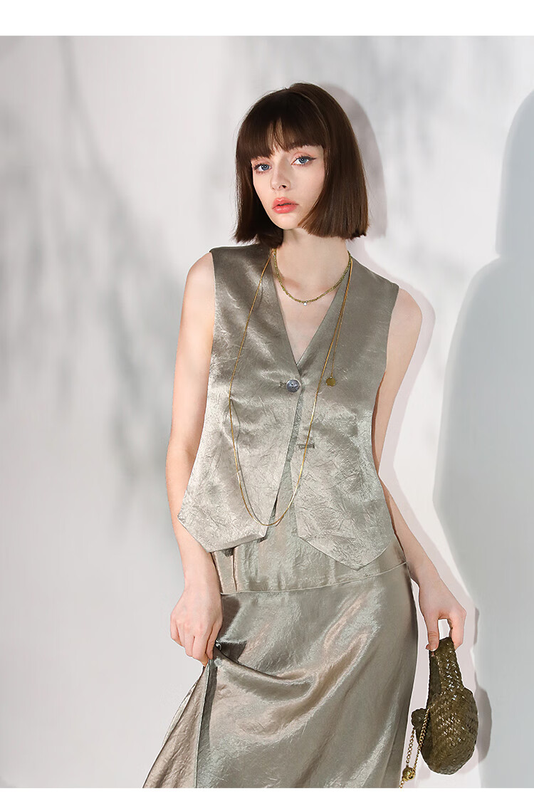 COCOBELLA[100%醋酸]早秋斜裁肌理褶皱感马夹奢感马甲WS0009