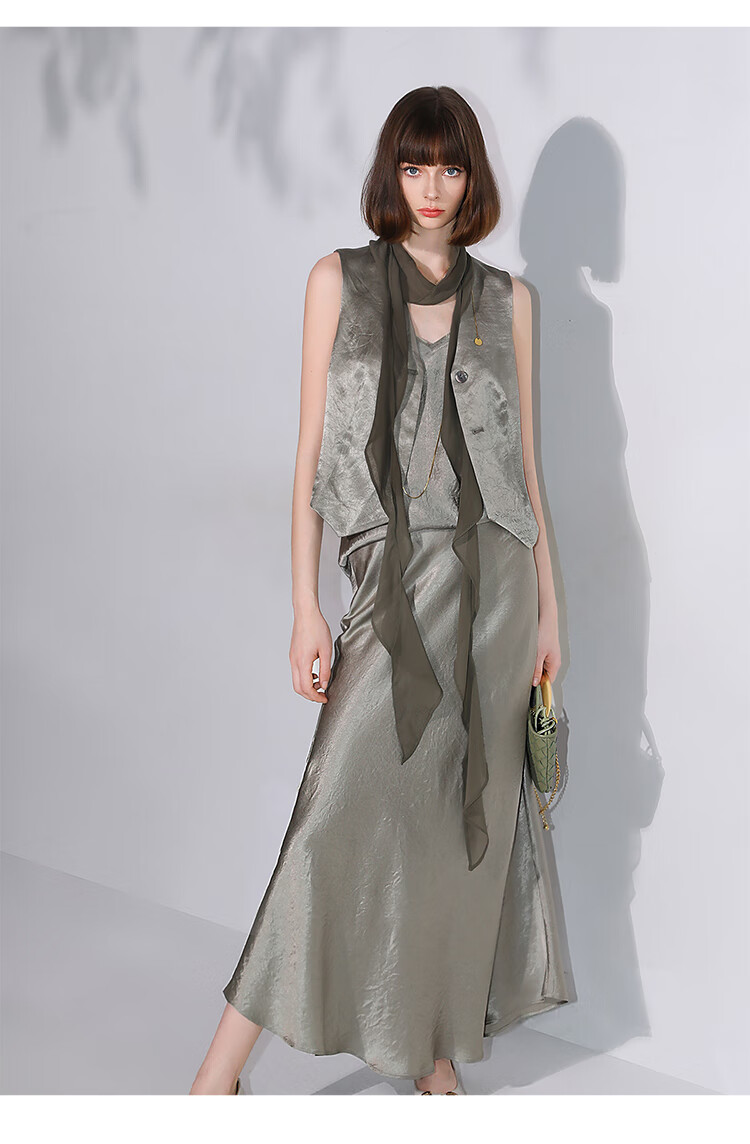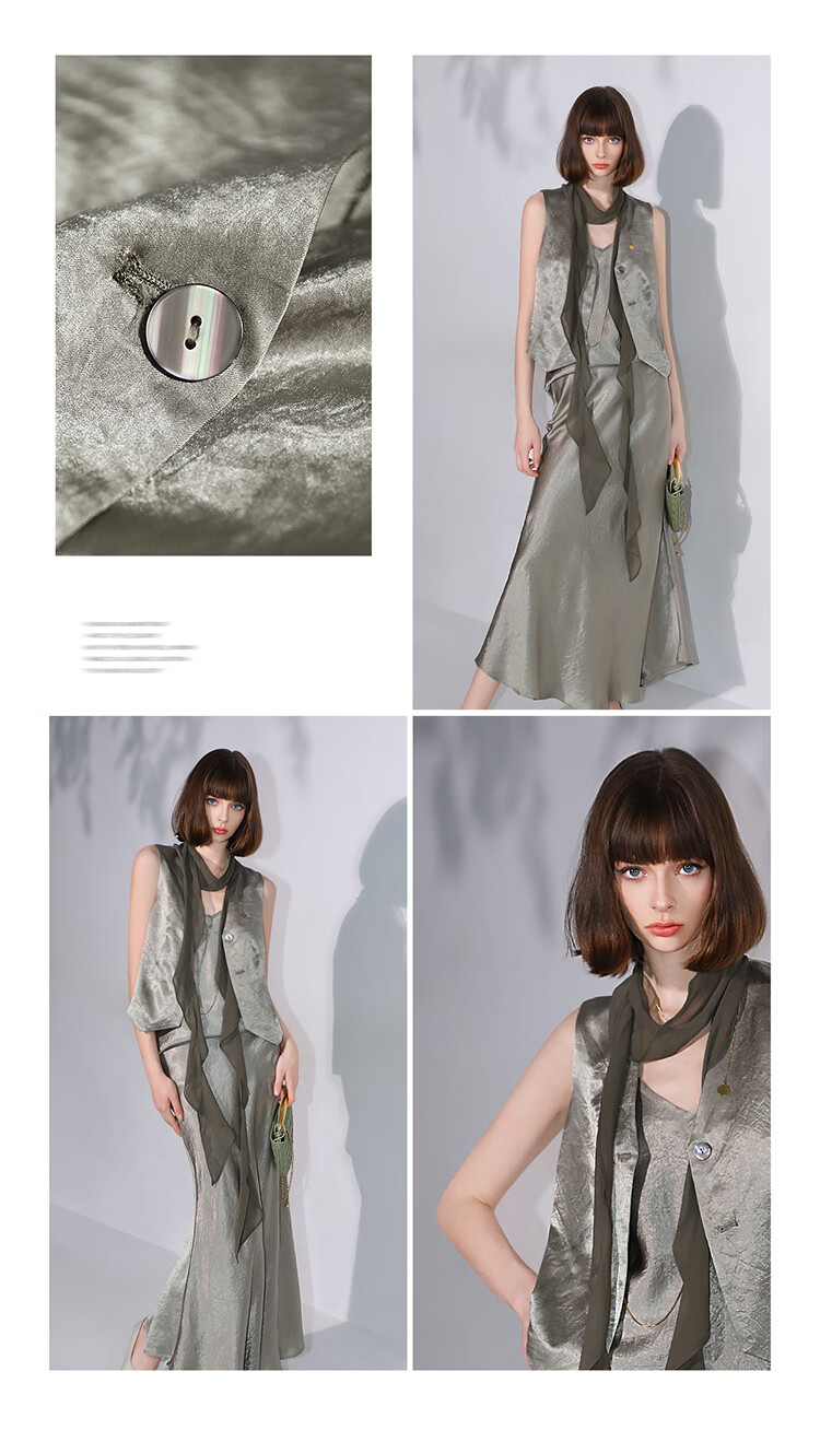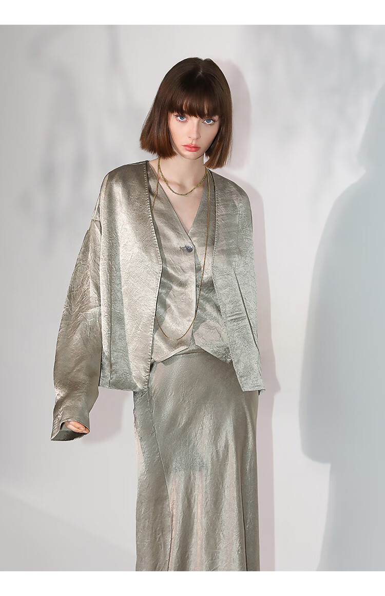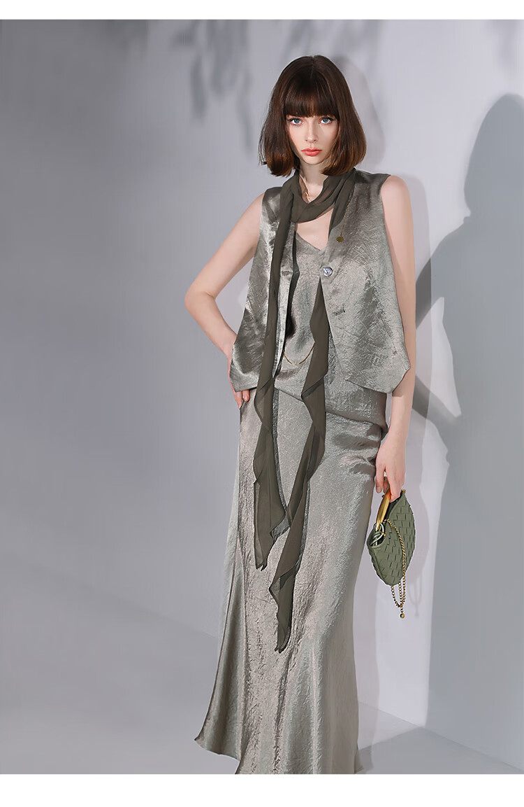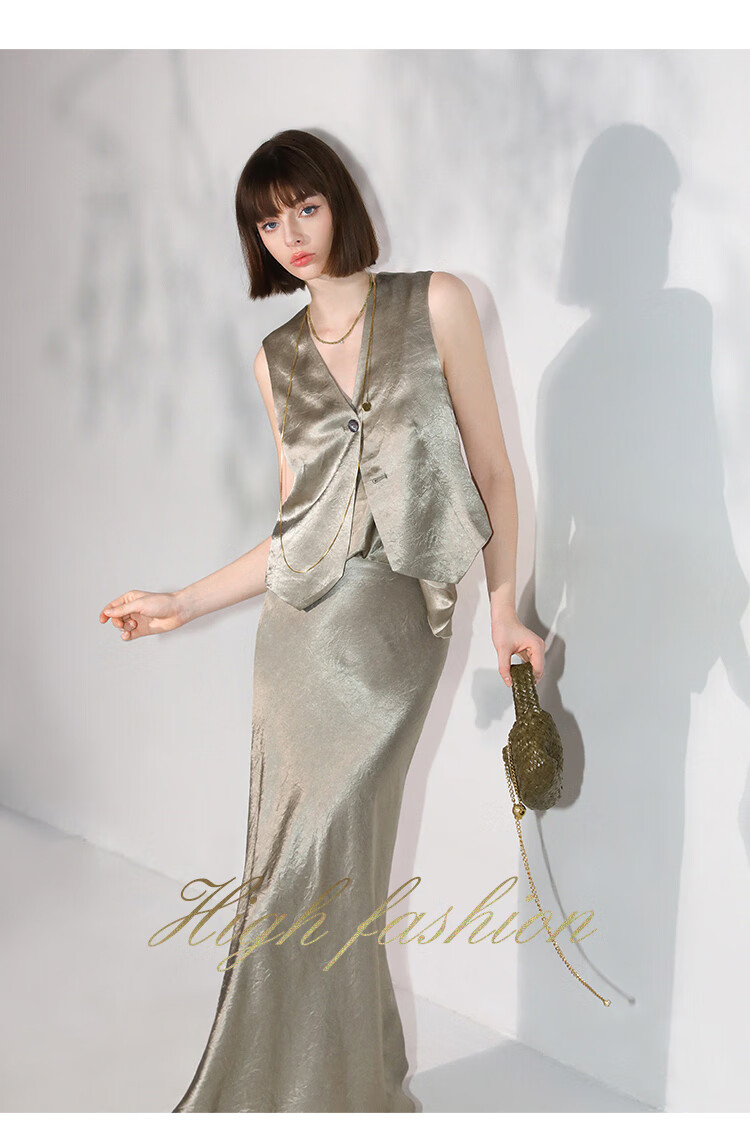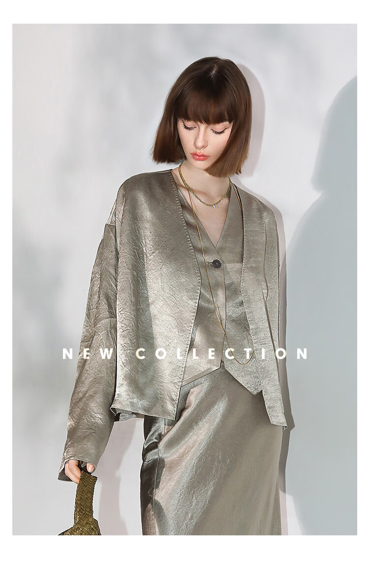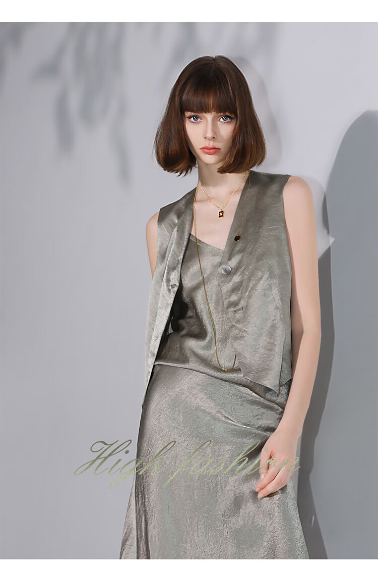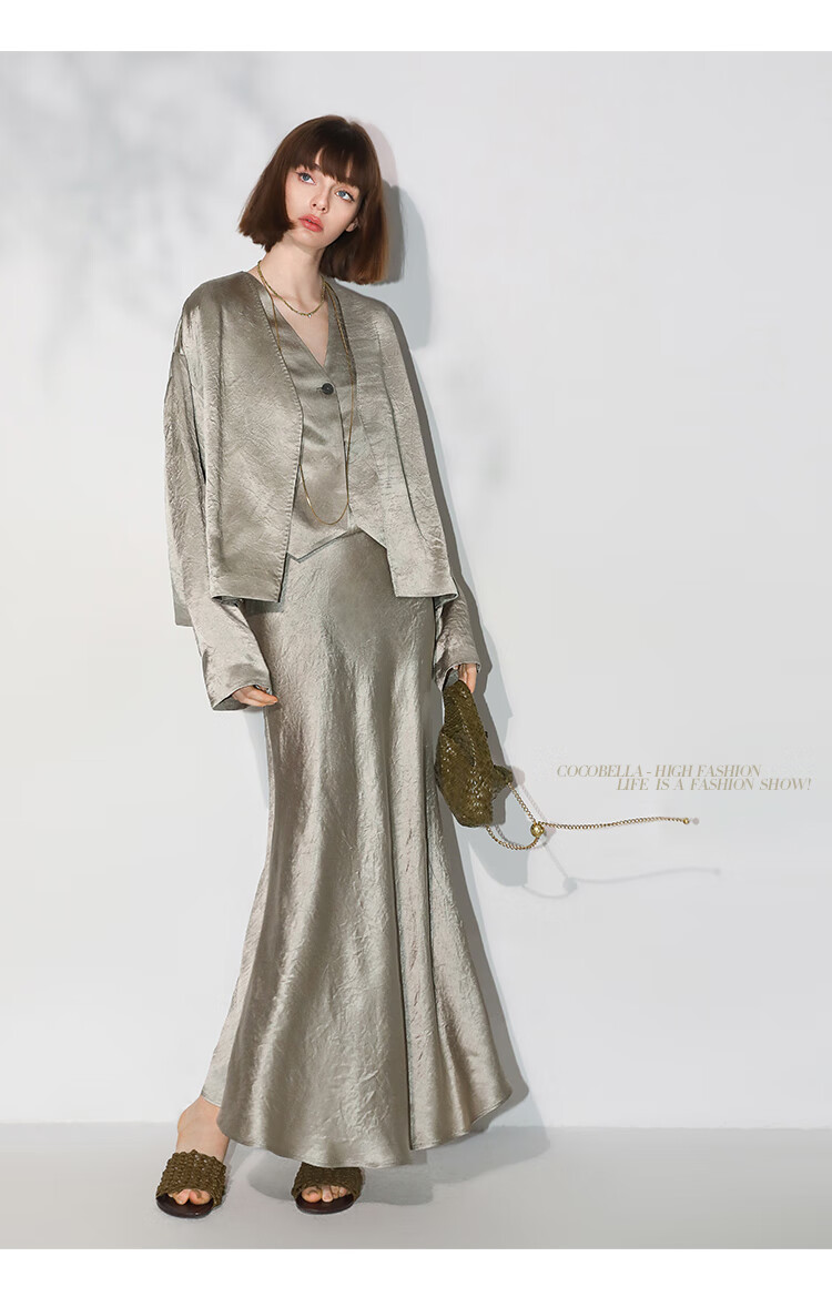 COCOBELLA[100%醋酸]早秋斜裁肌理褶皱感马夹奢感马甲WS0009