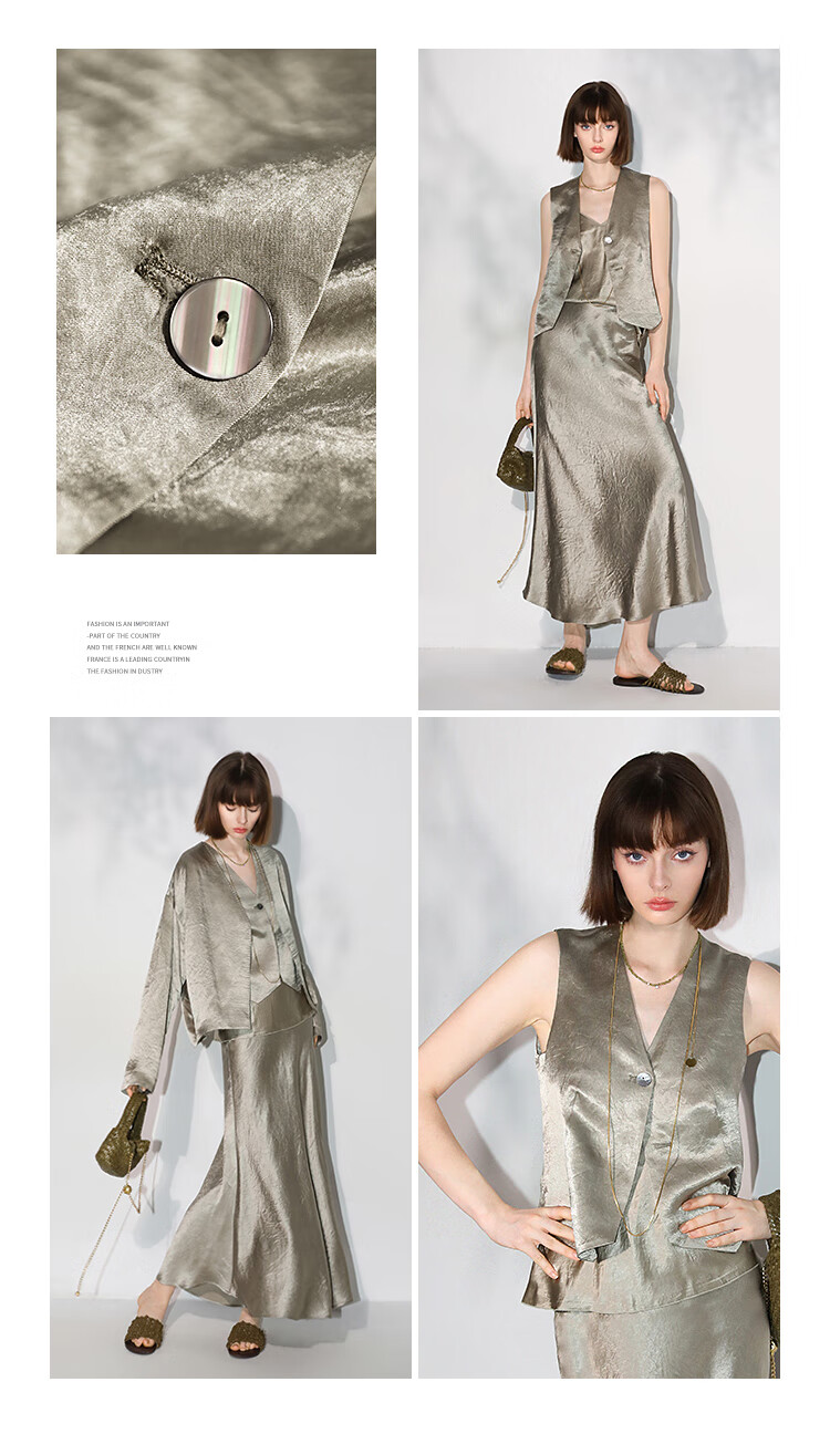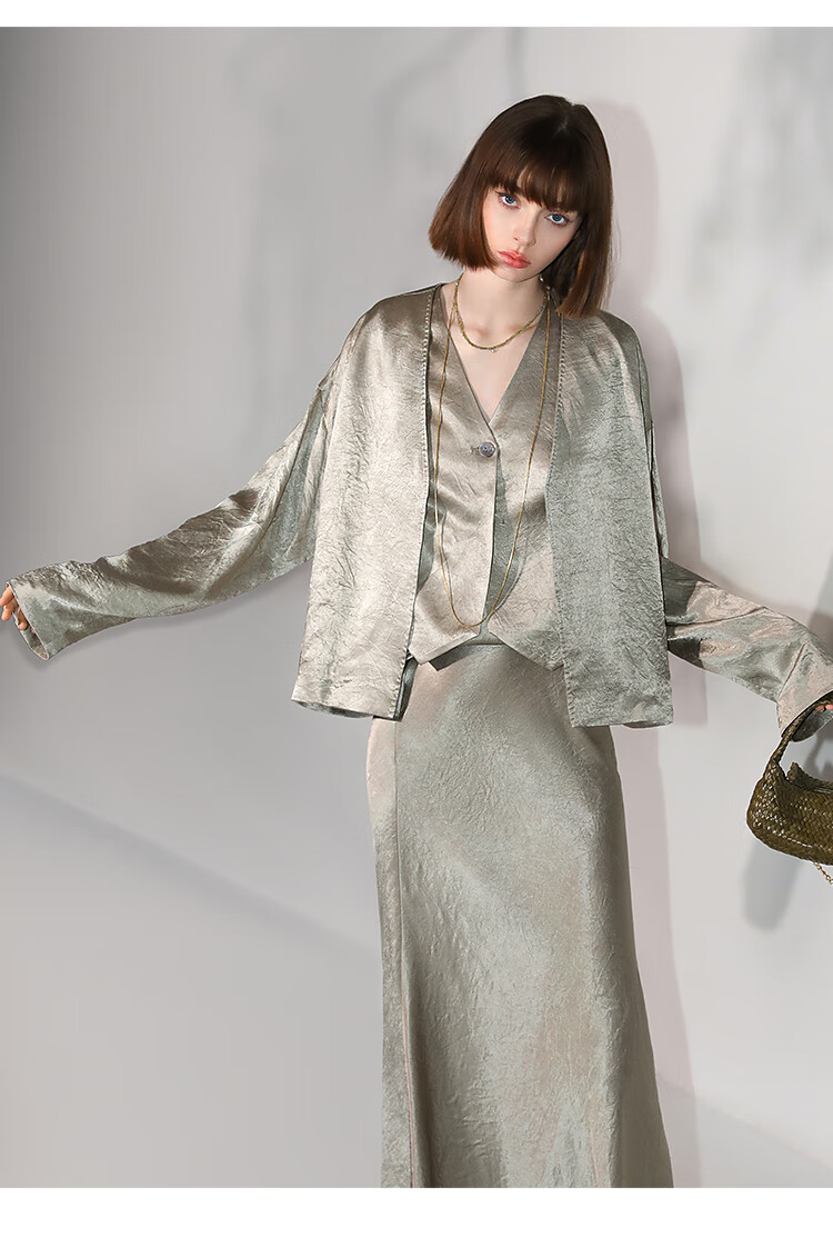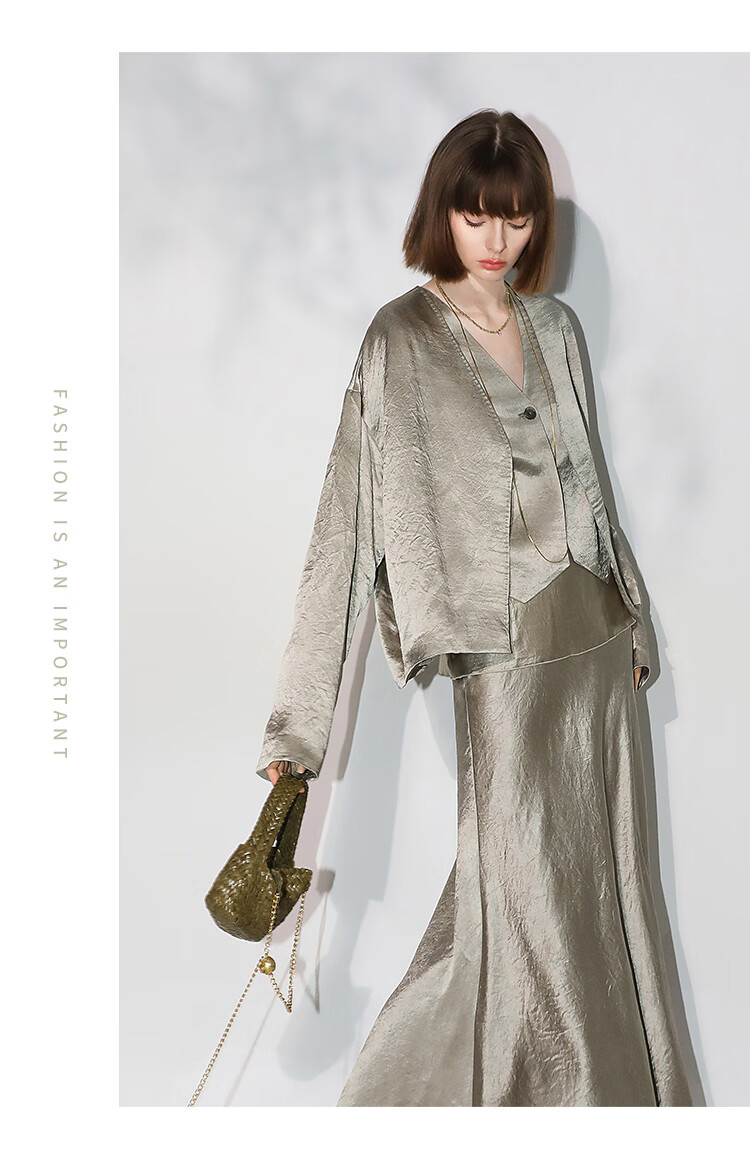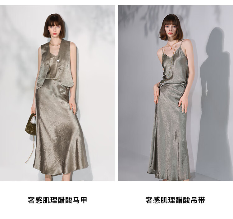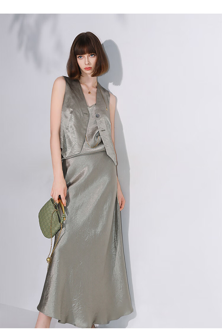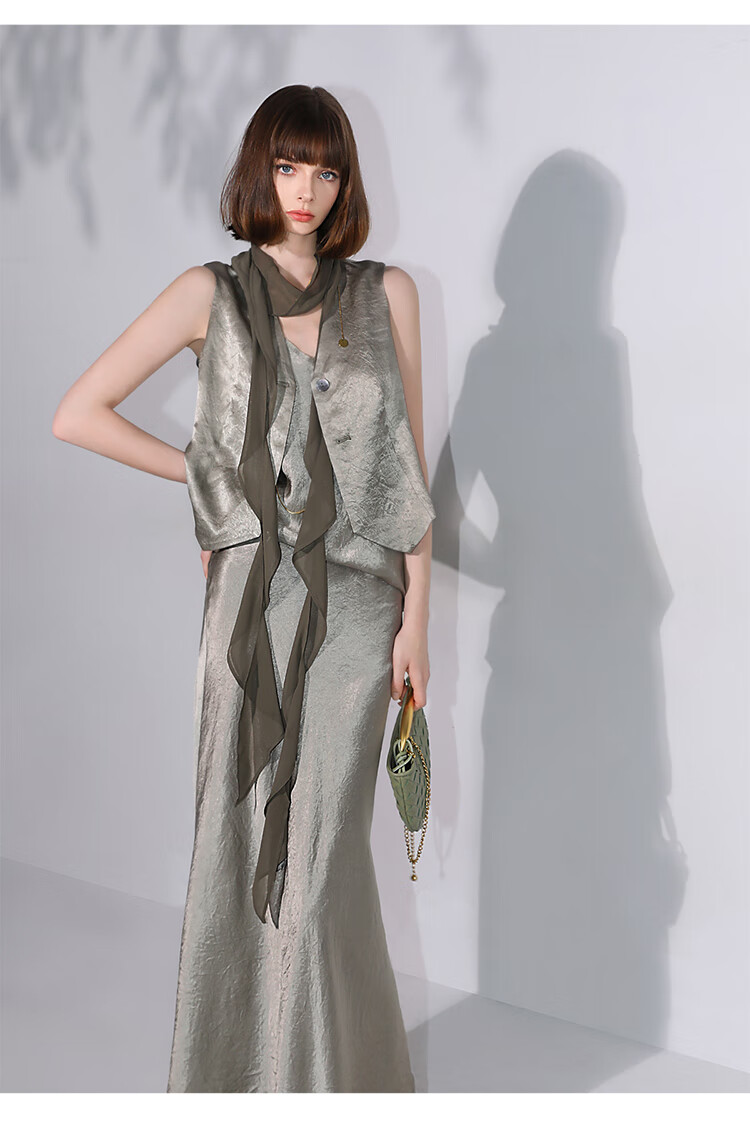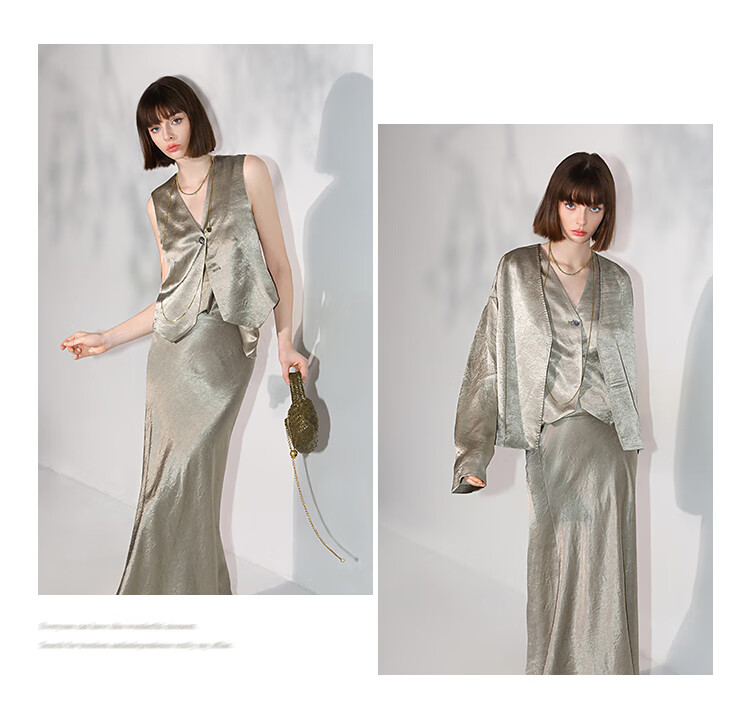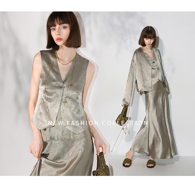 COCOBELLA[100%醋酸]早秋斜裁肌理褶皱感马夹奢感马甲WS0009