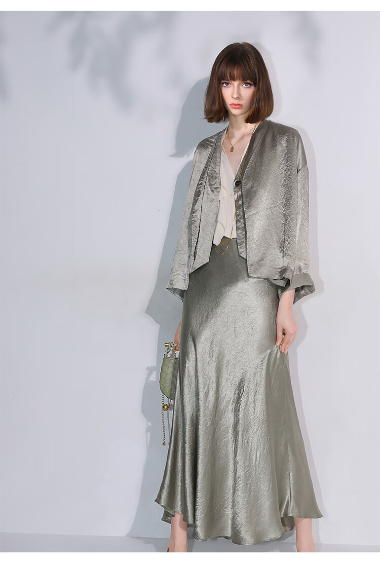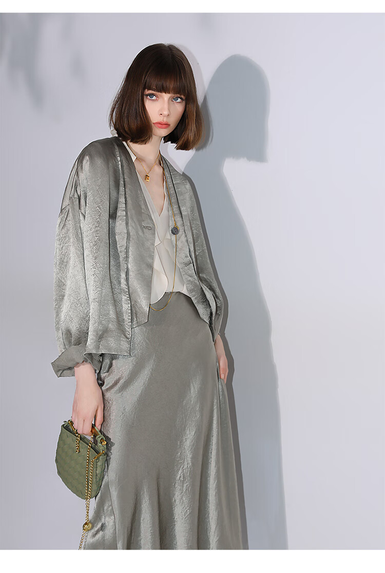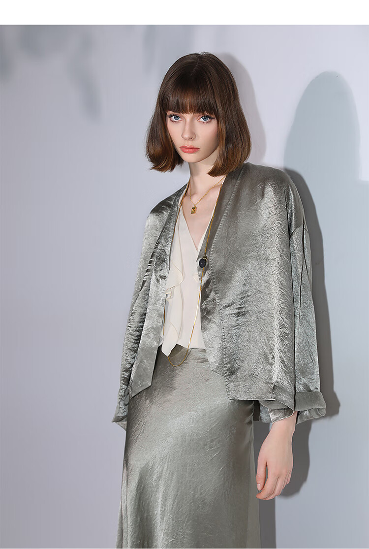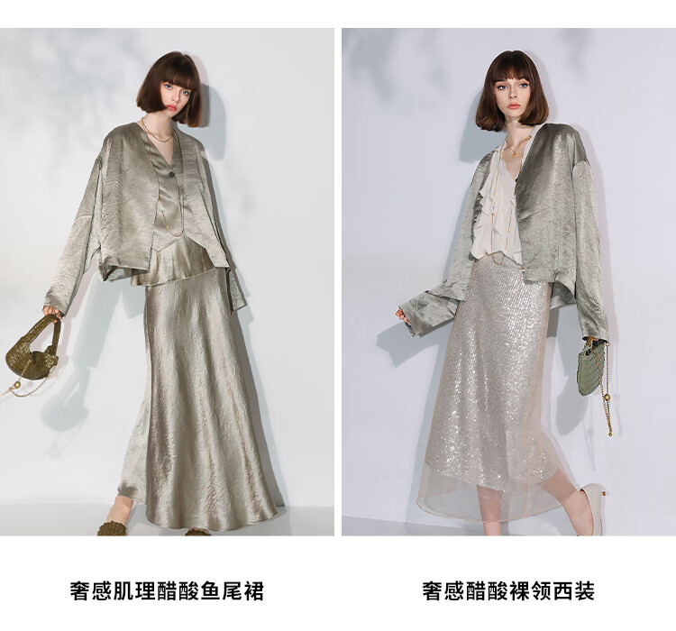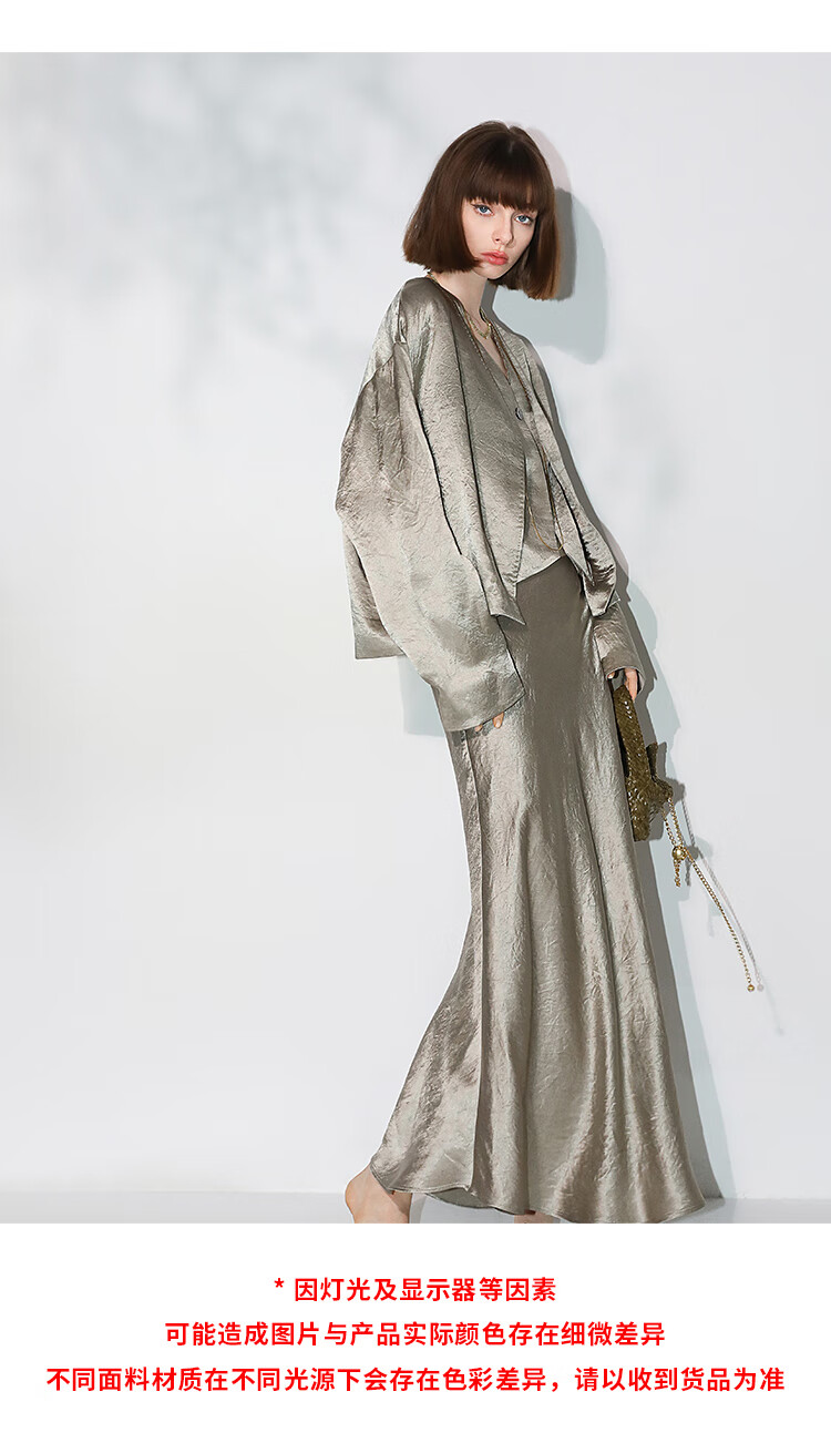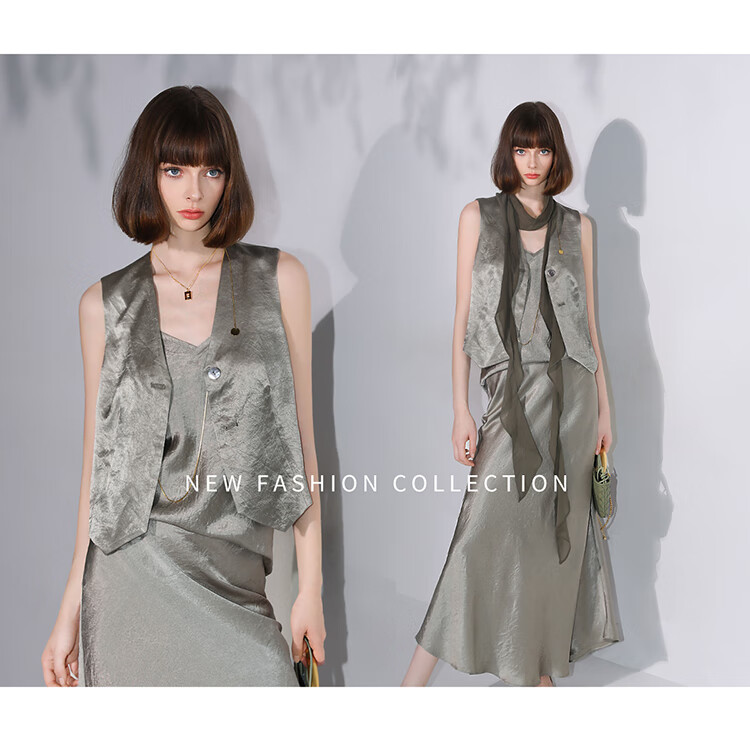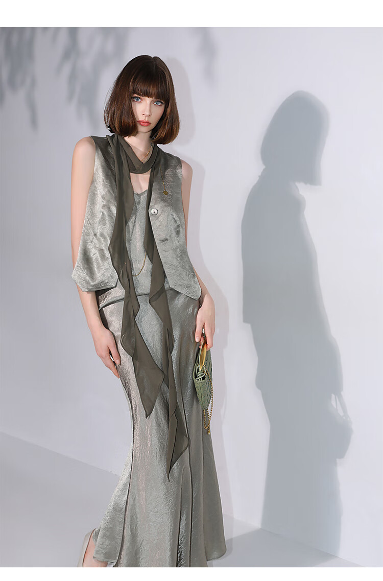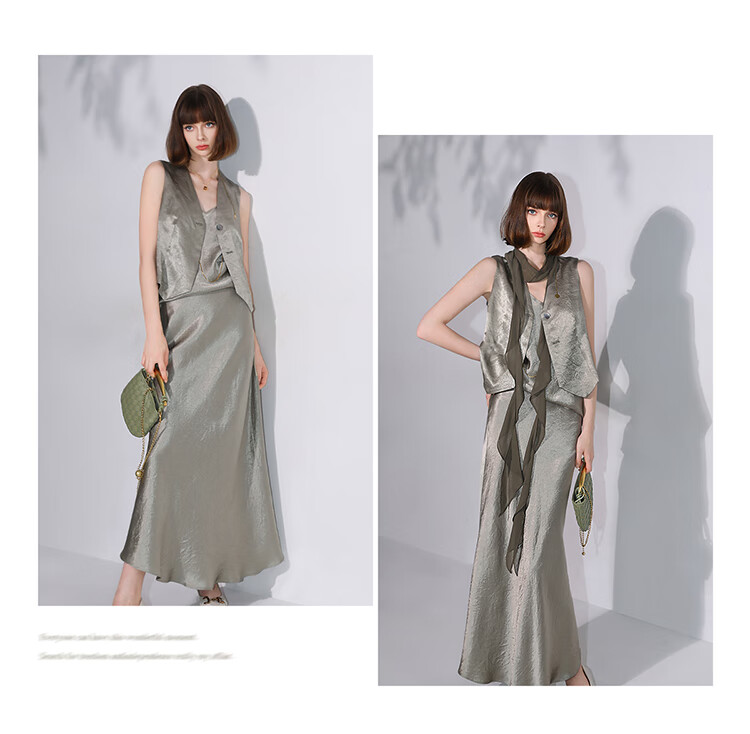COCOBELLA[100%醋酸]早秋斜裁肌理褶皱感马夹奢感马甲WS0009