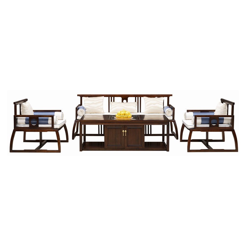 新红鹰韵系列金丝黄檀木叫泰国橡胶木沙发1+1+3