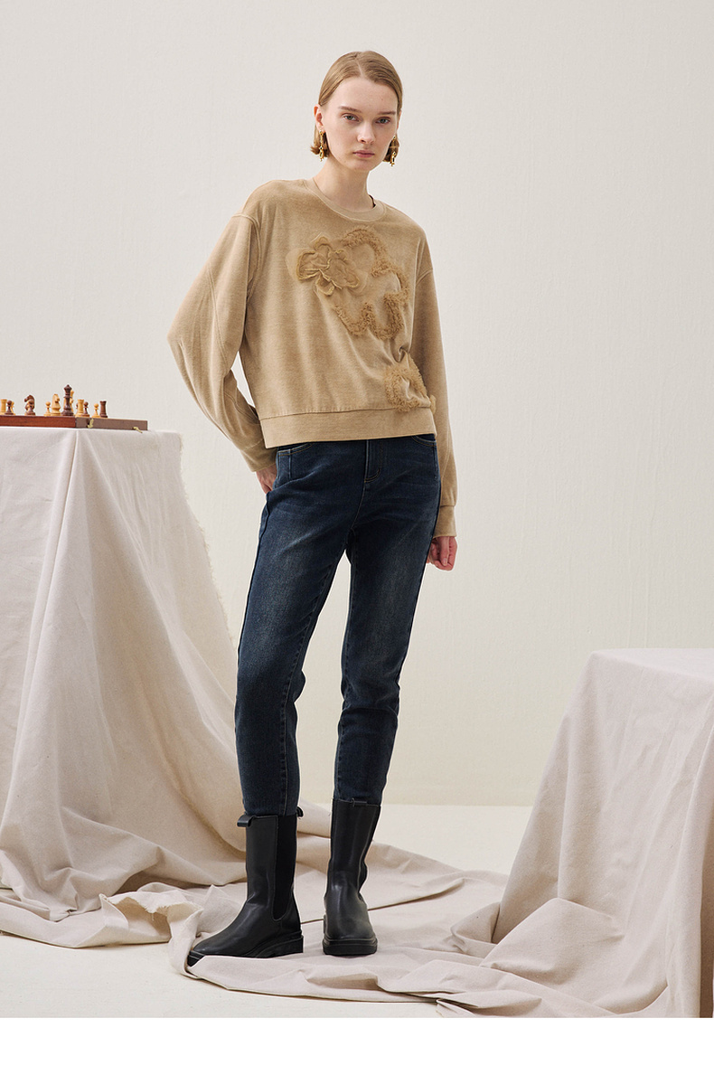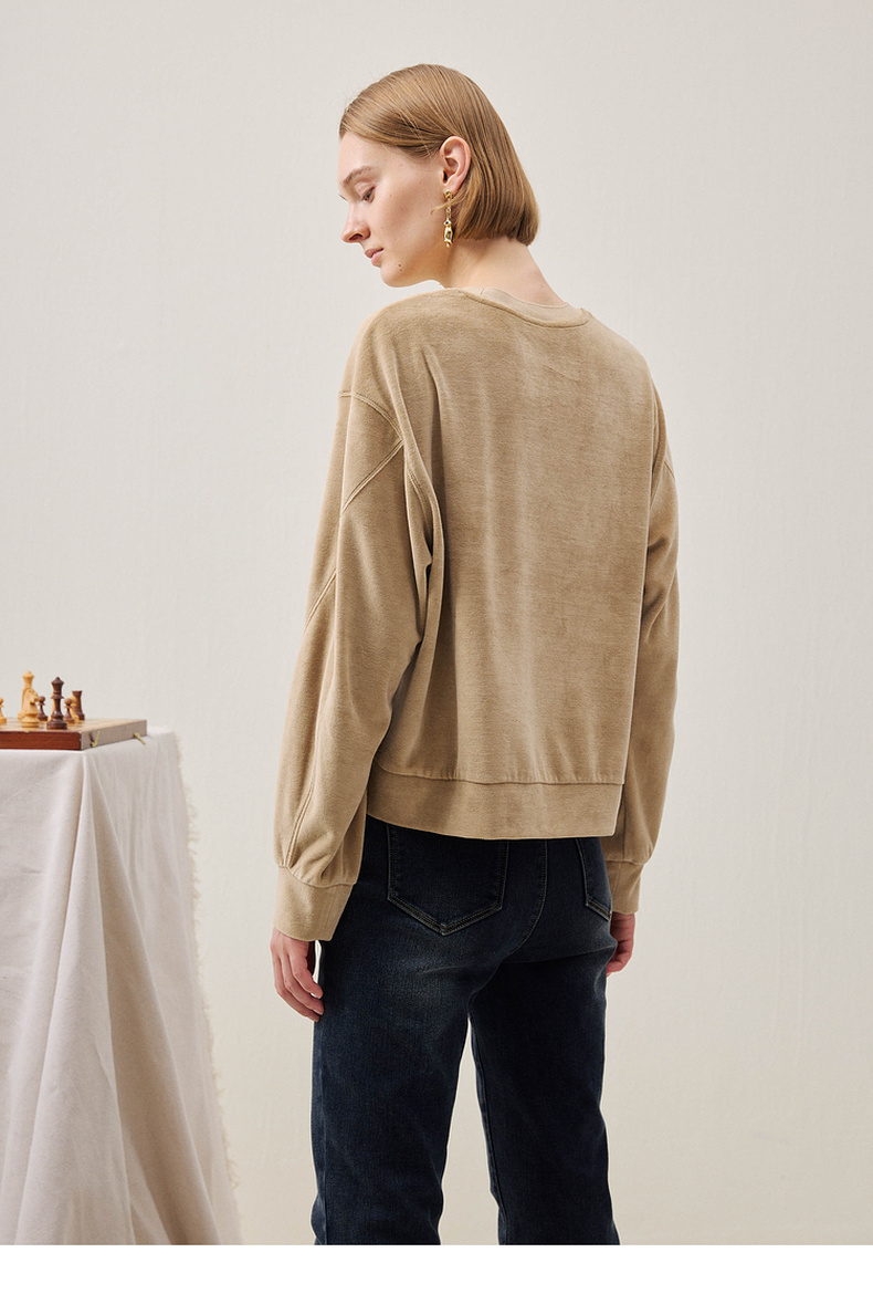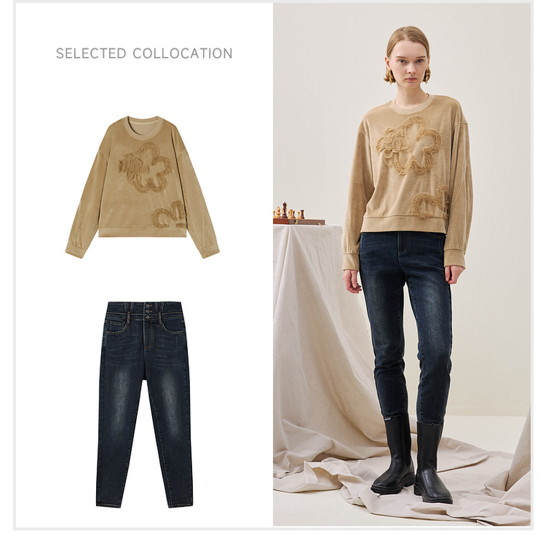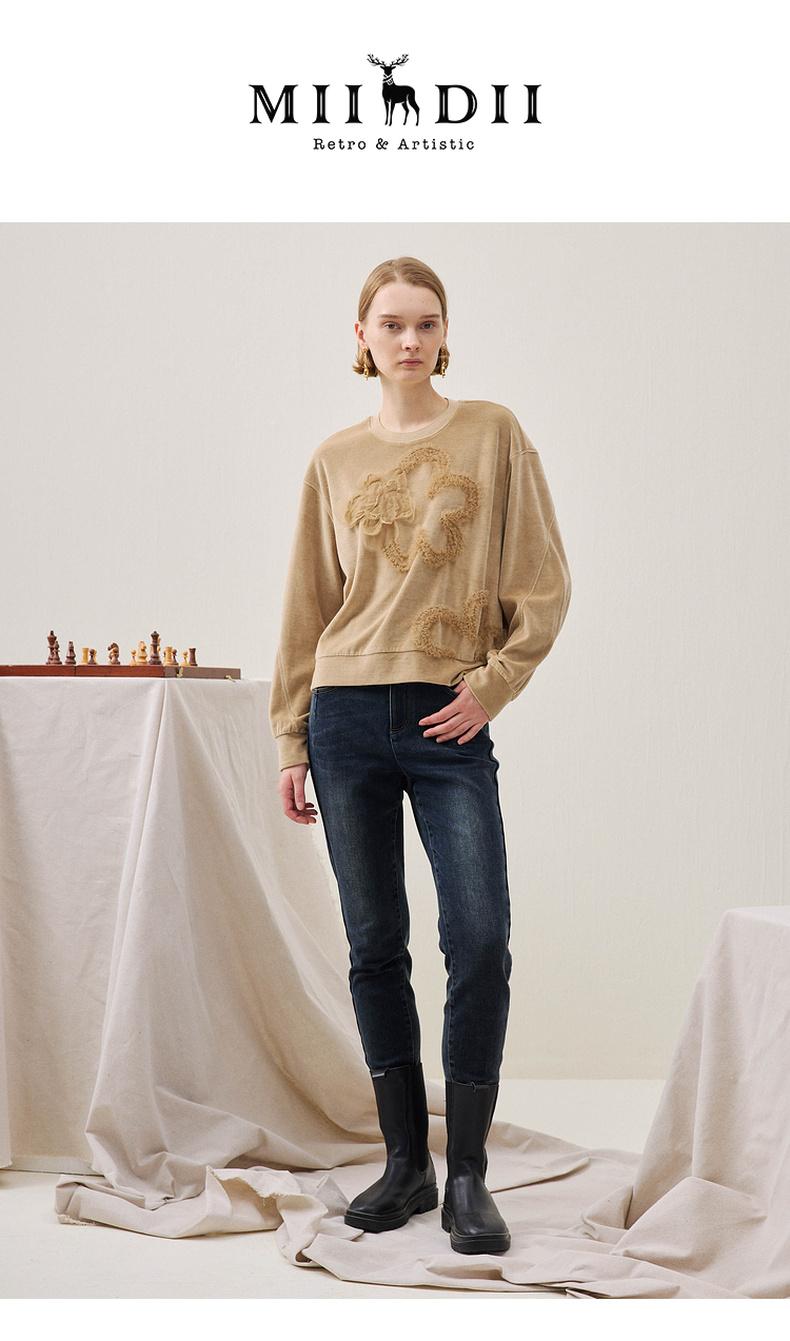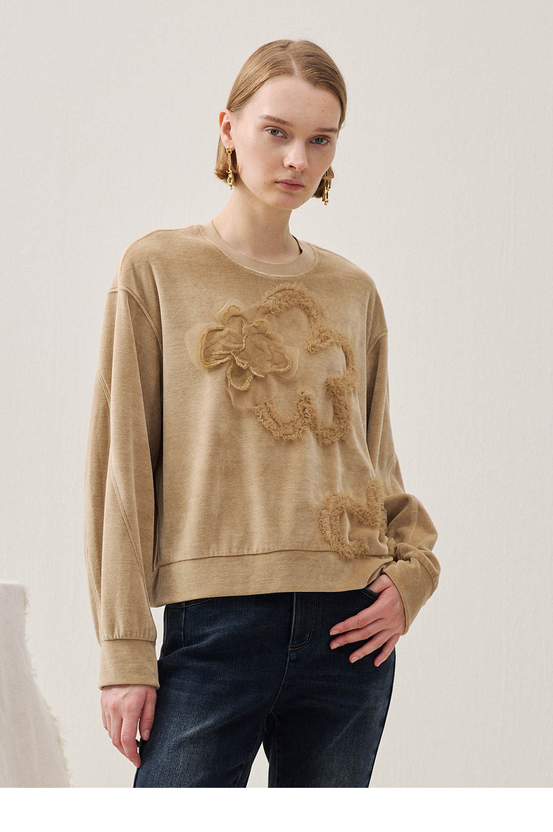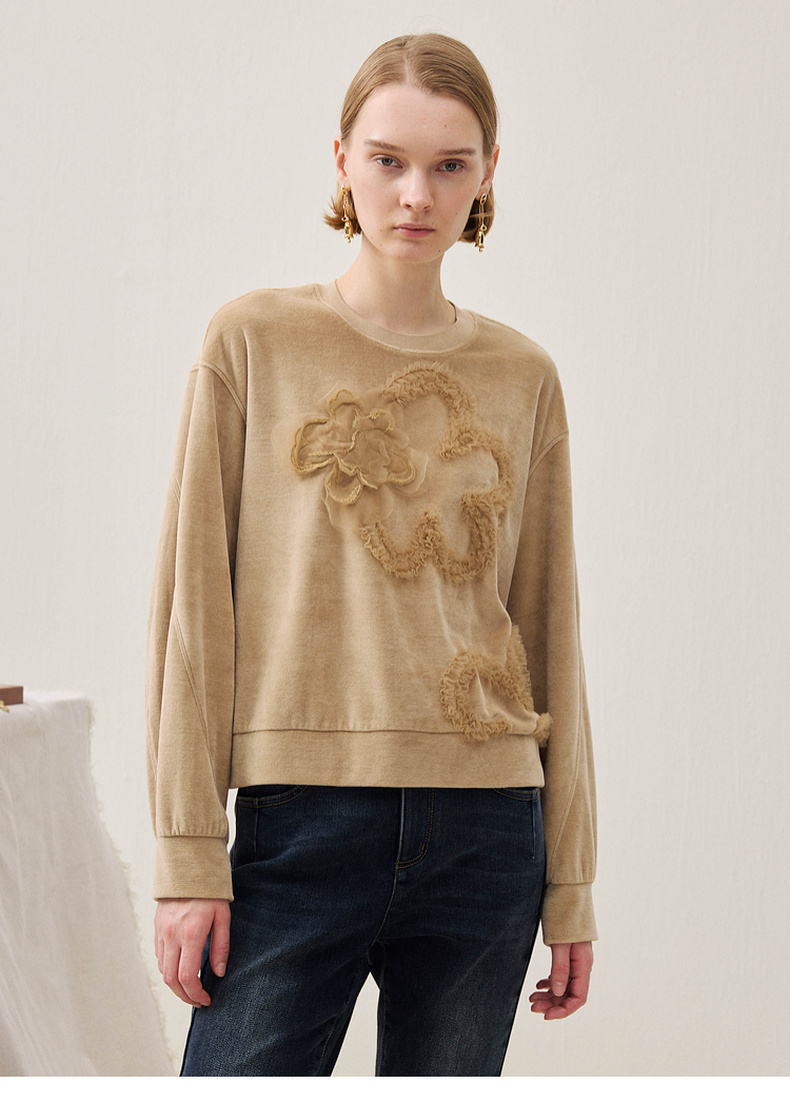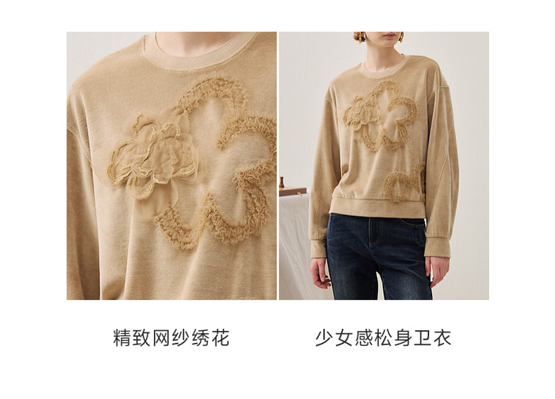 谜底短款卫衣长袖2025年冬季新品软糯斑驳绣花微落肩女254MV1502