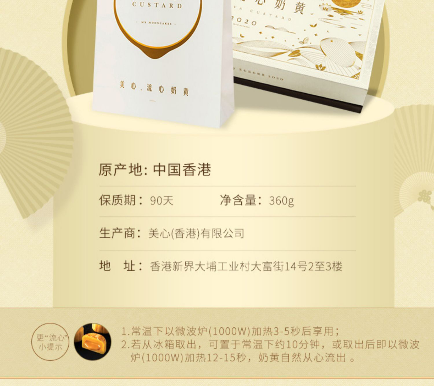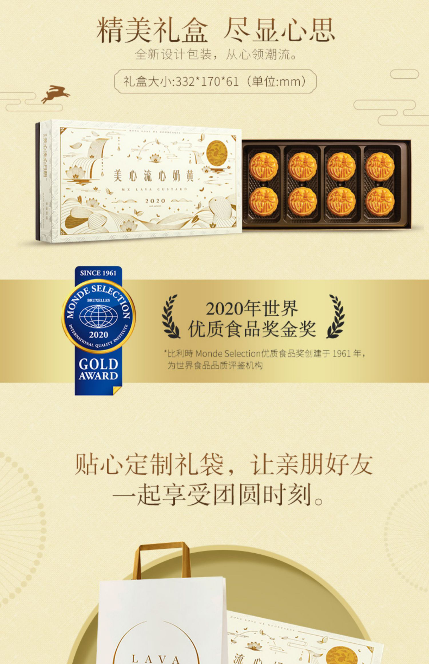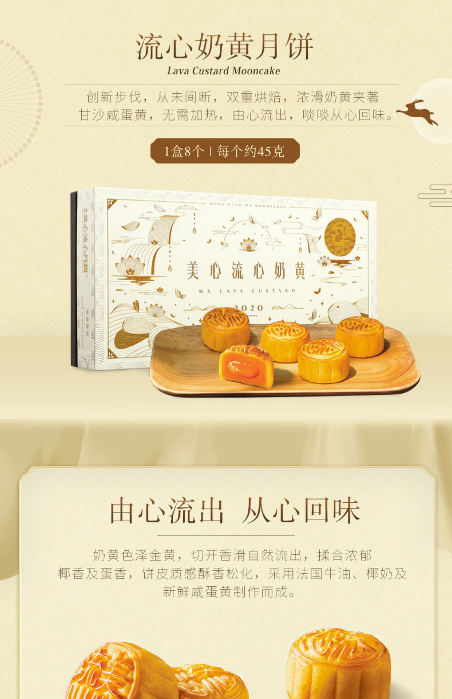 香港美心流心奶黄月饼礼盒 港式奶黄月饼礼盒中秋送礼进口蛋黄8个/盒