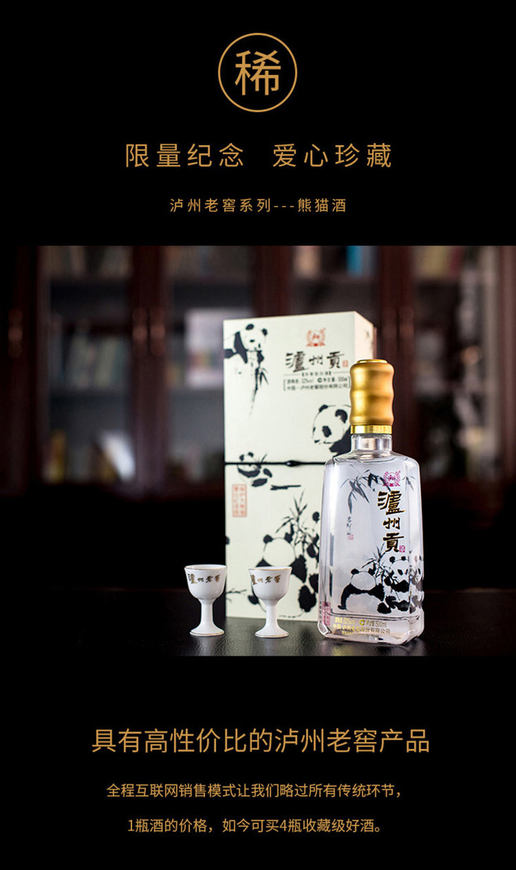 【头曲官旗】52度泸州贡酒(保护大熊猫爱心纪念版)500ml*6