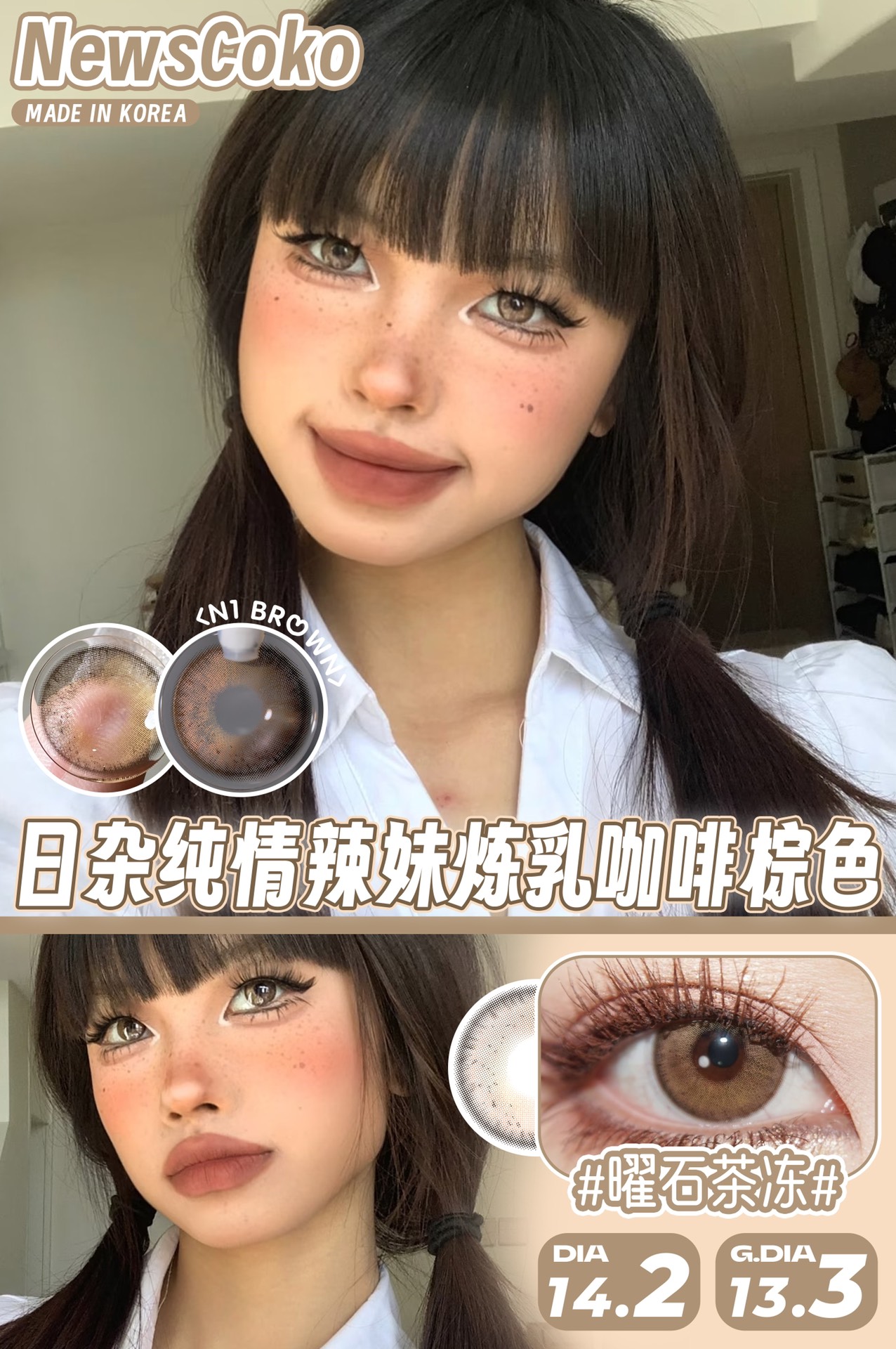 Newscoko 曜石茶冻 年抛 2片 14.2mm 参考着色13.3mm 基弧8.6 含水38% 韩国进口