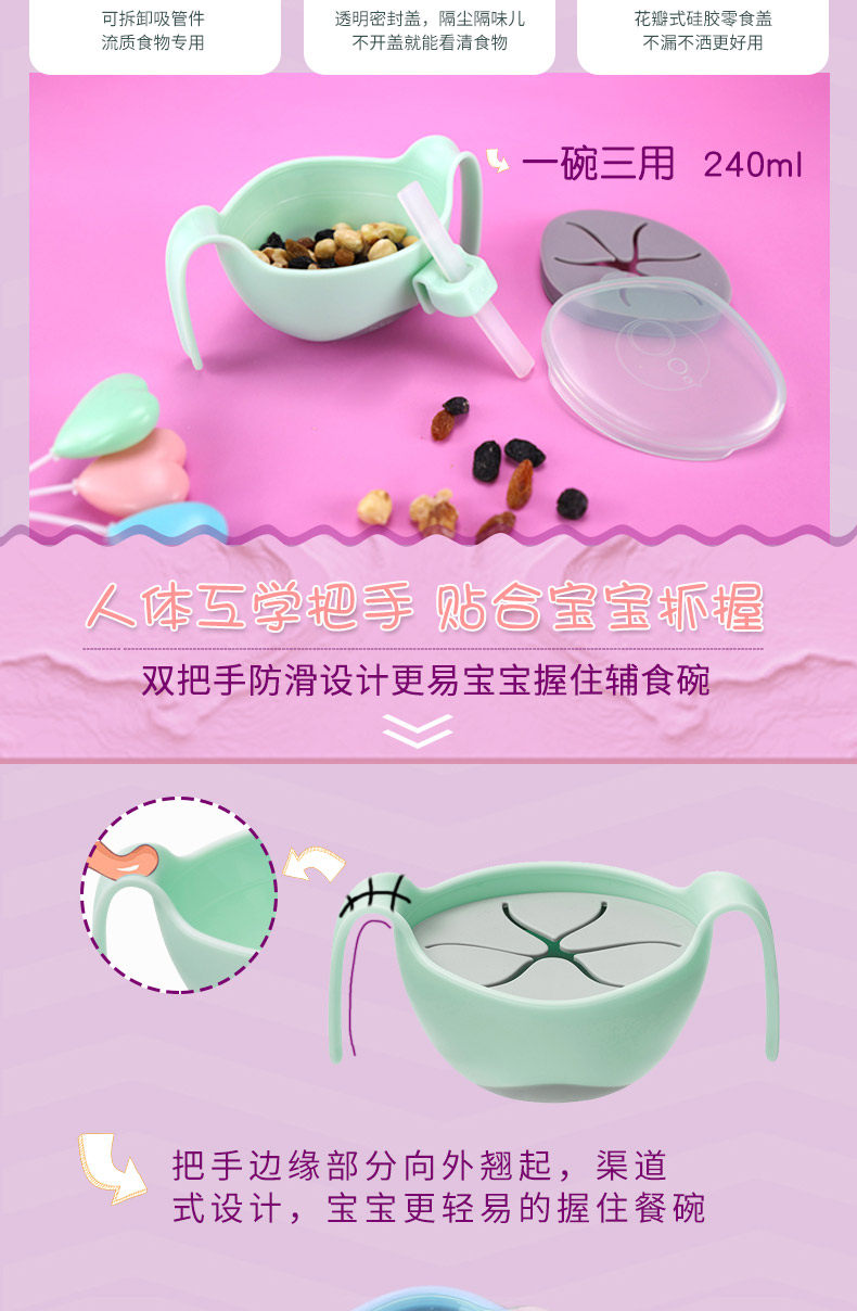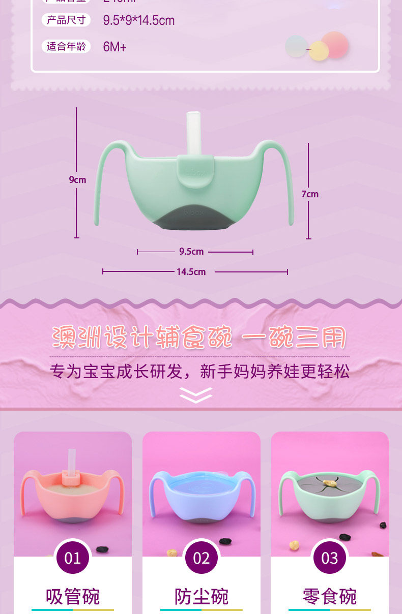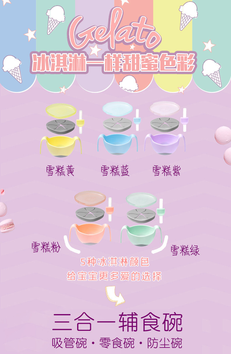 bbox冰淇淋三合一婴儿辅食碗宝宝吸管碗儿童餐具训练学食碗零食碗
