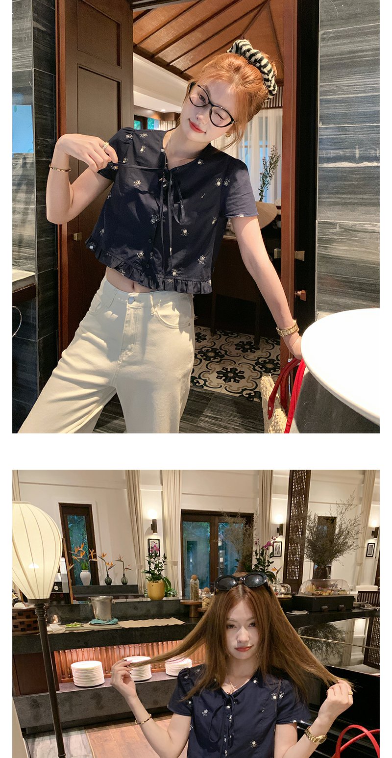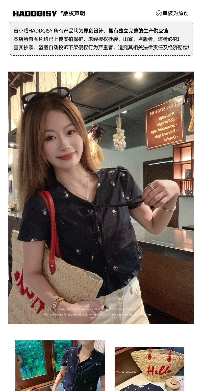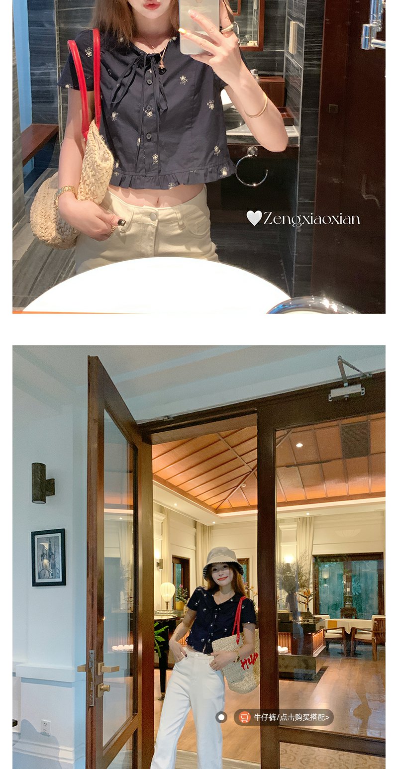 <曾小咸推荐>4.4现货秒杀 !微信超特价!韩系系带绣花短袖衬衫 日常129.99 立减70 秒杀59.99!!