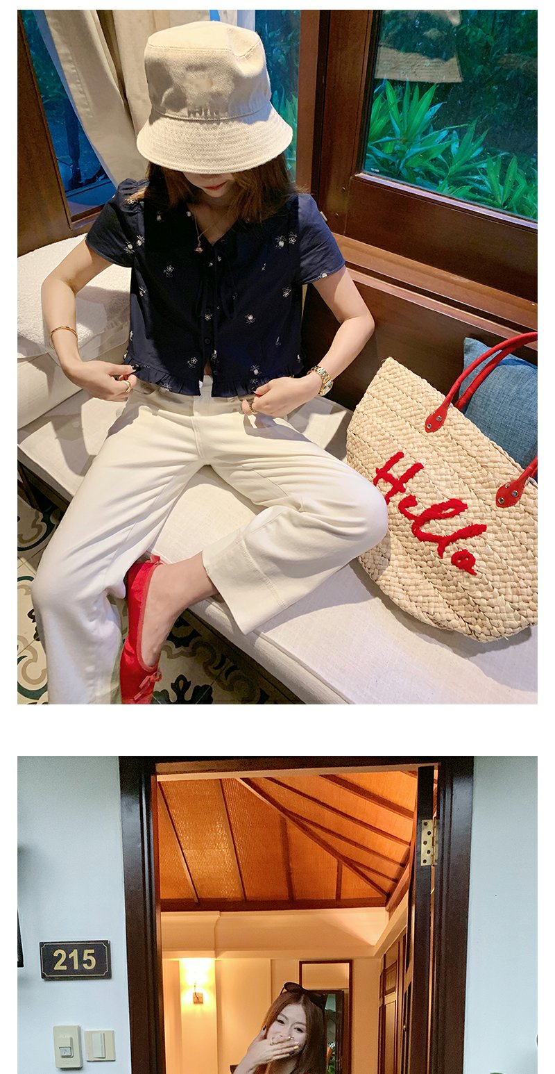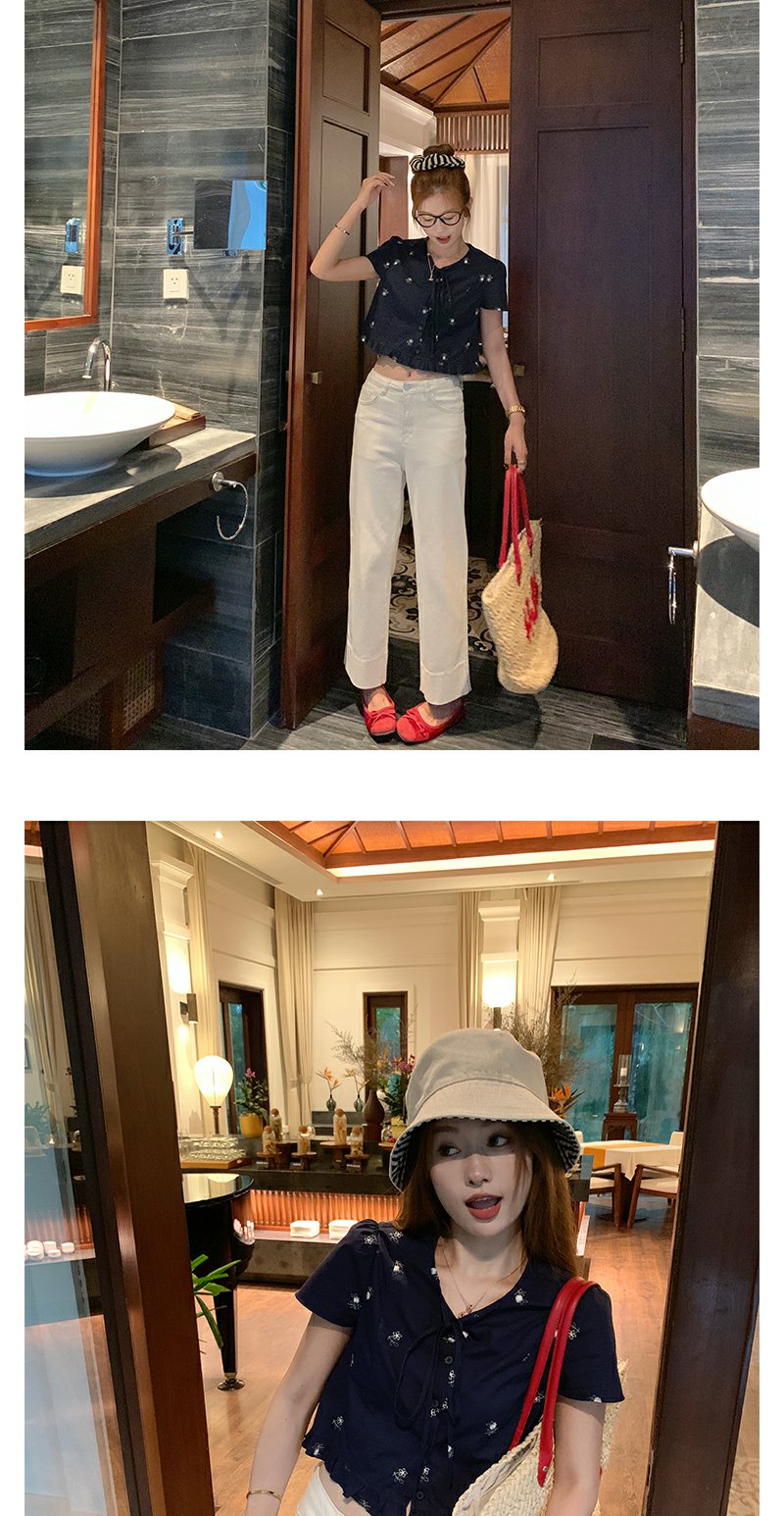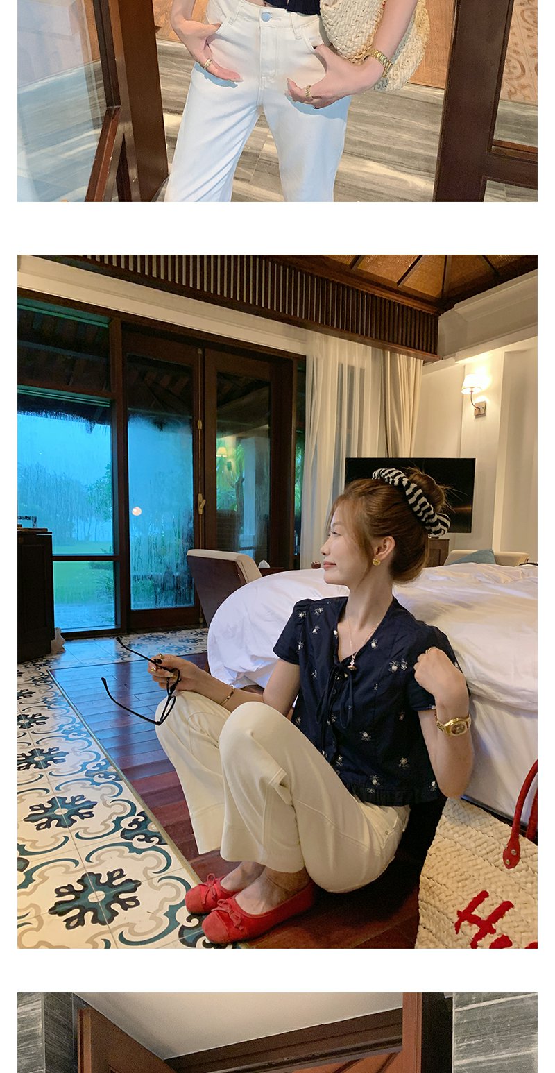 <曾小咸推荐>4.4现货秒杀 !微信超特价!韩系系带绣花短袖衬衫 日常129.99 立减70 秒杀59.99!!