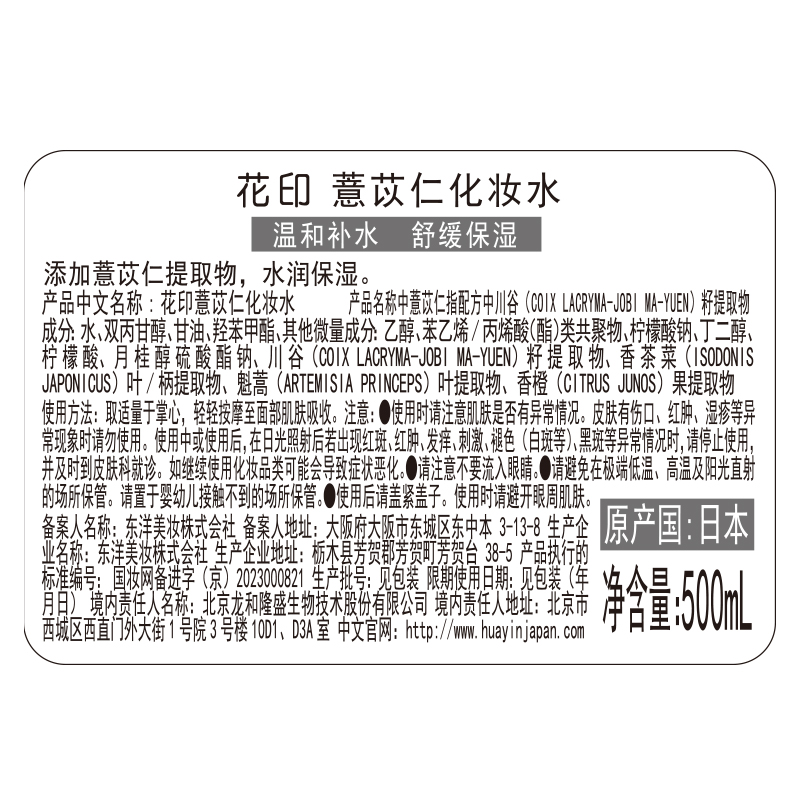 花印薏苡仁化妆水500ml