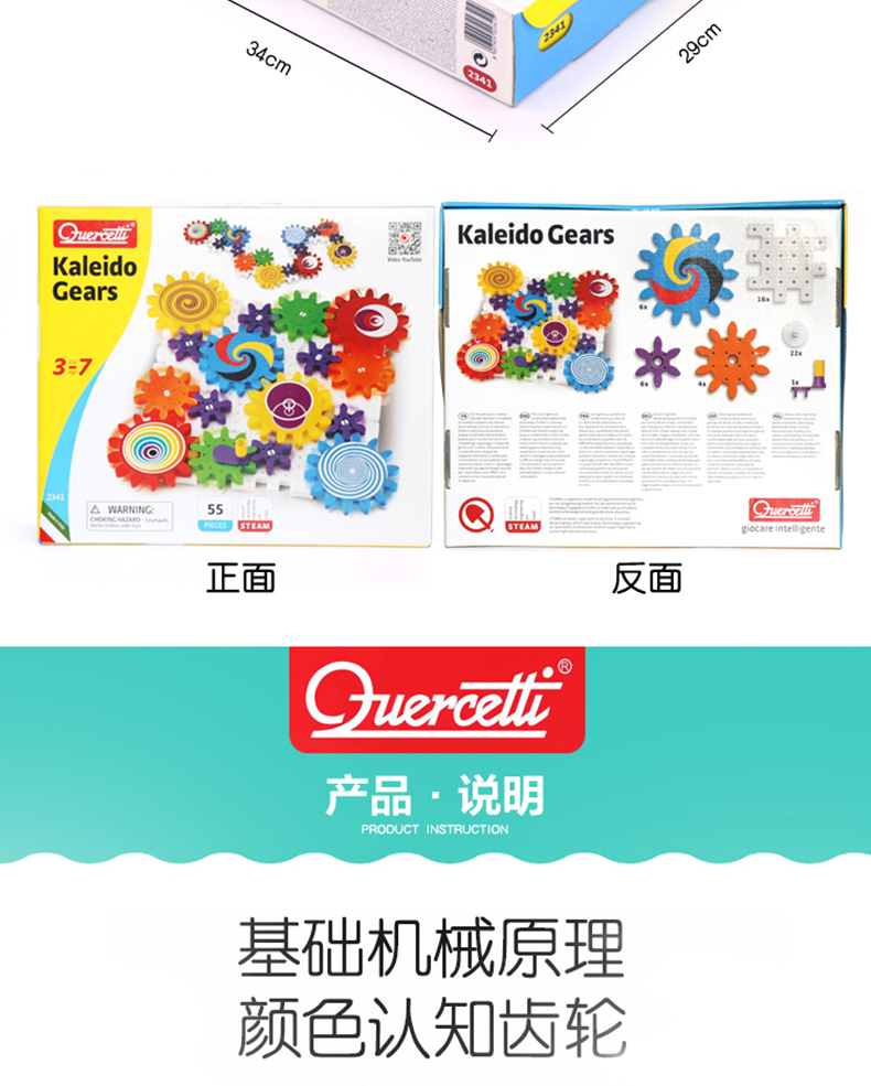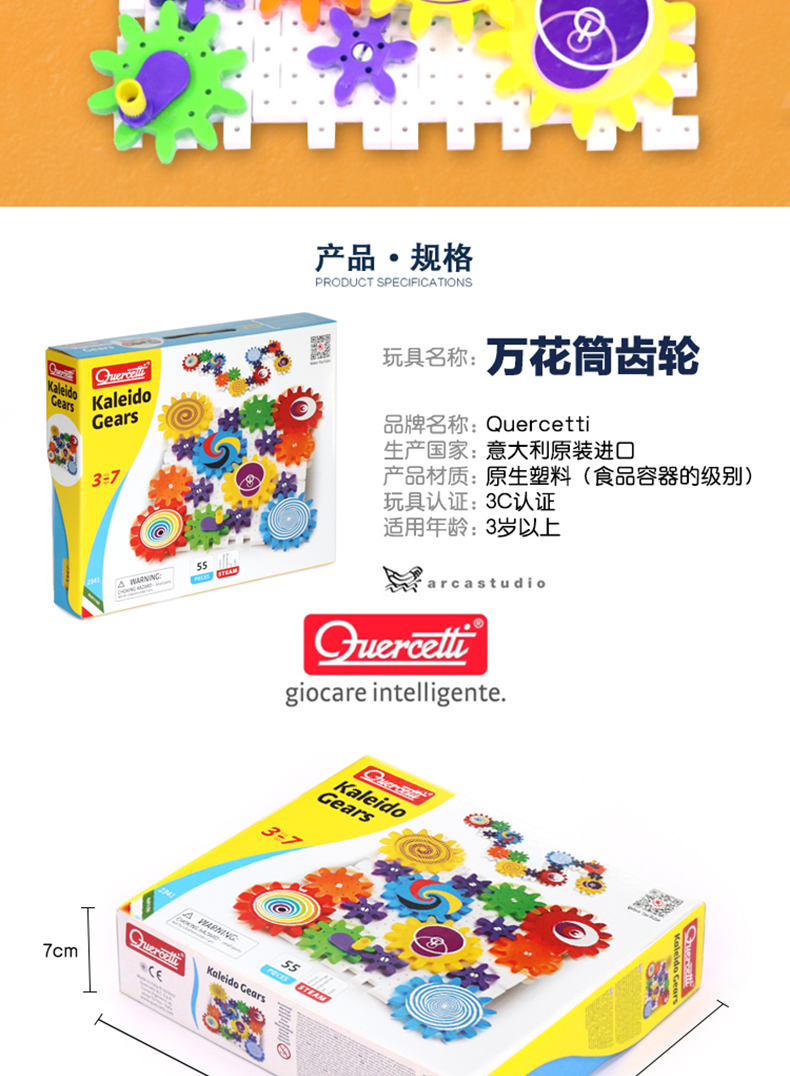 Quercetti启迪 构建系列 万花筒齿轮组合 Q2341 3+岁 意大利