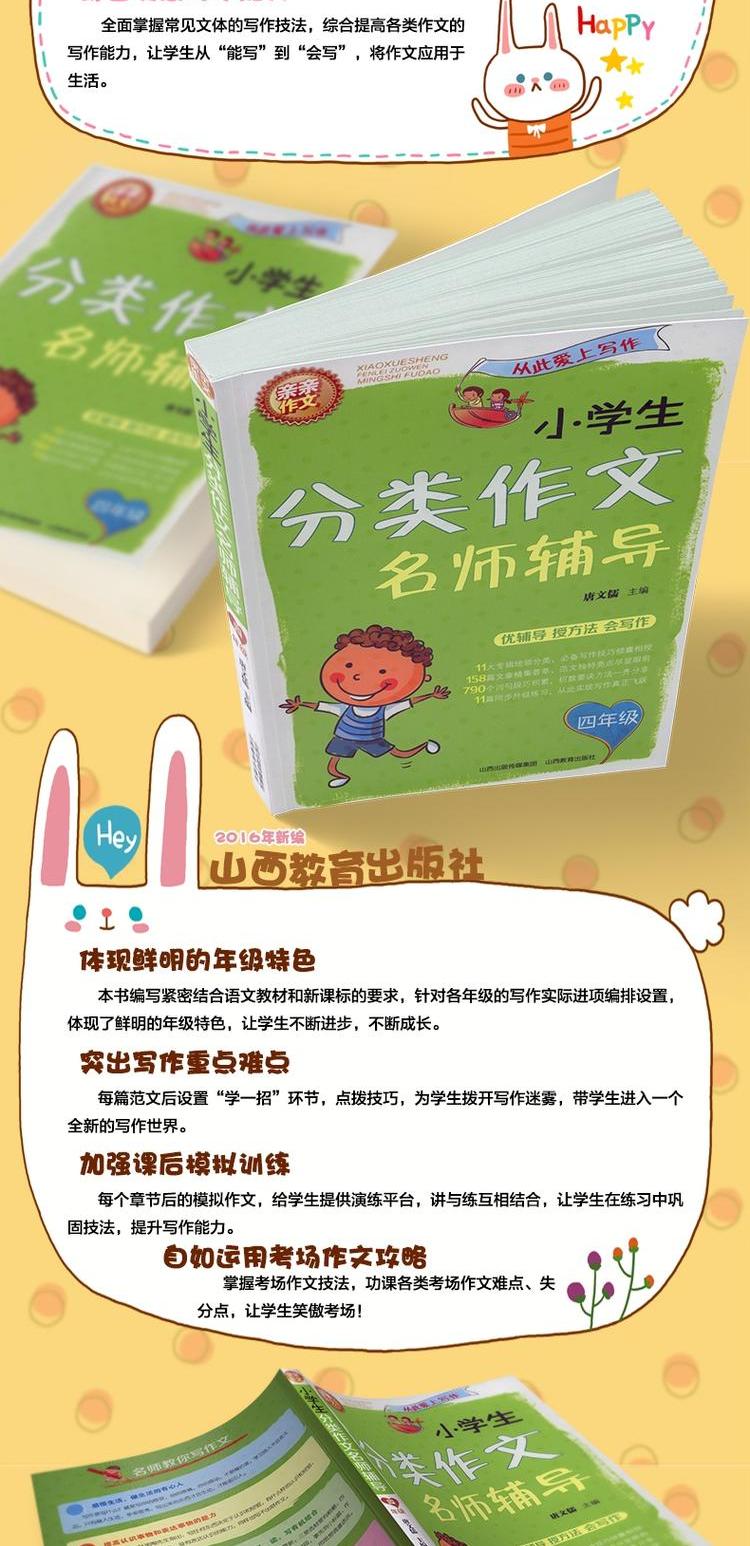 正版小学生分类作文四年级 名师辅导 写作技巧方法大全 范文示例 小学生同步作文满分分类作文大全 山西教育出版社出版