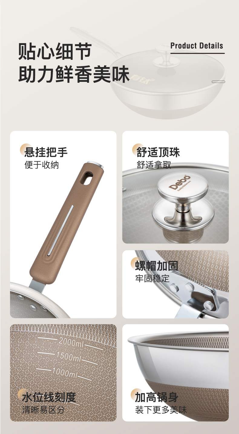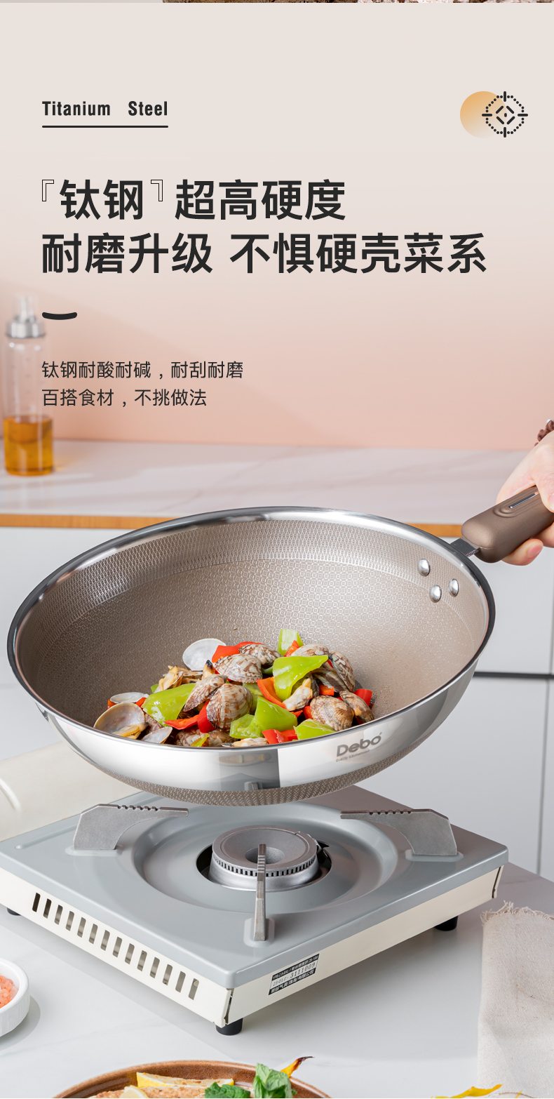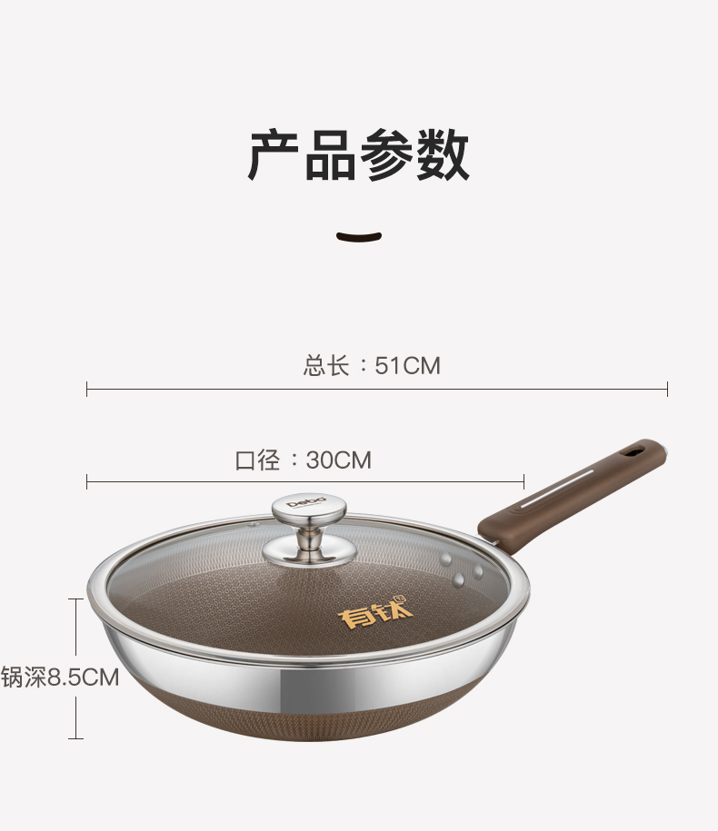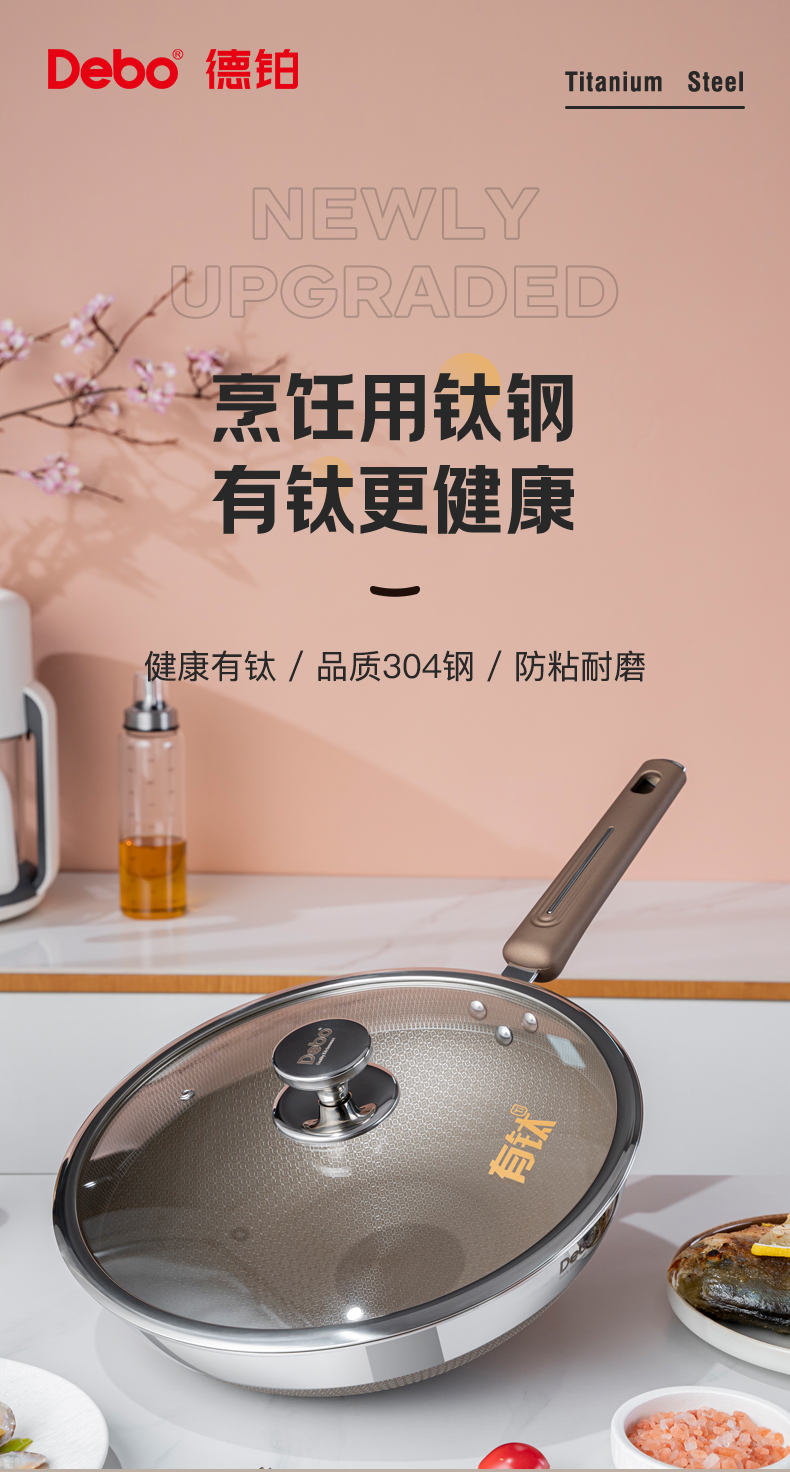 Debo德铂-德宁格拉齐奥乔治炒锅 健康有钛防粘耐磨(配玻璃锅盖)