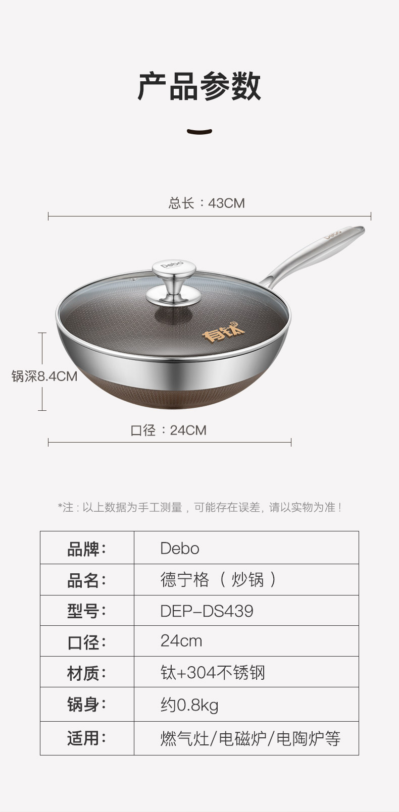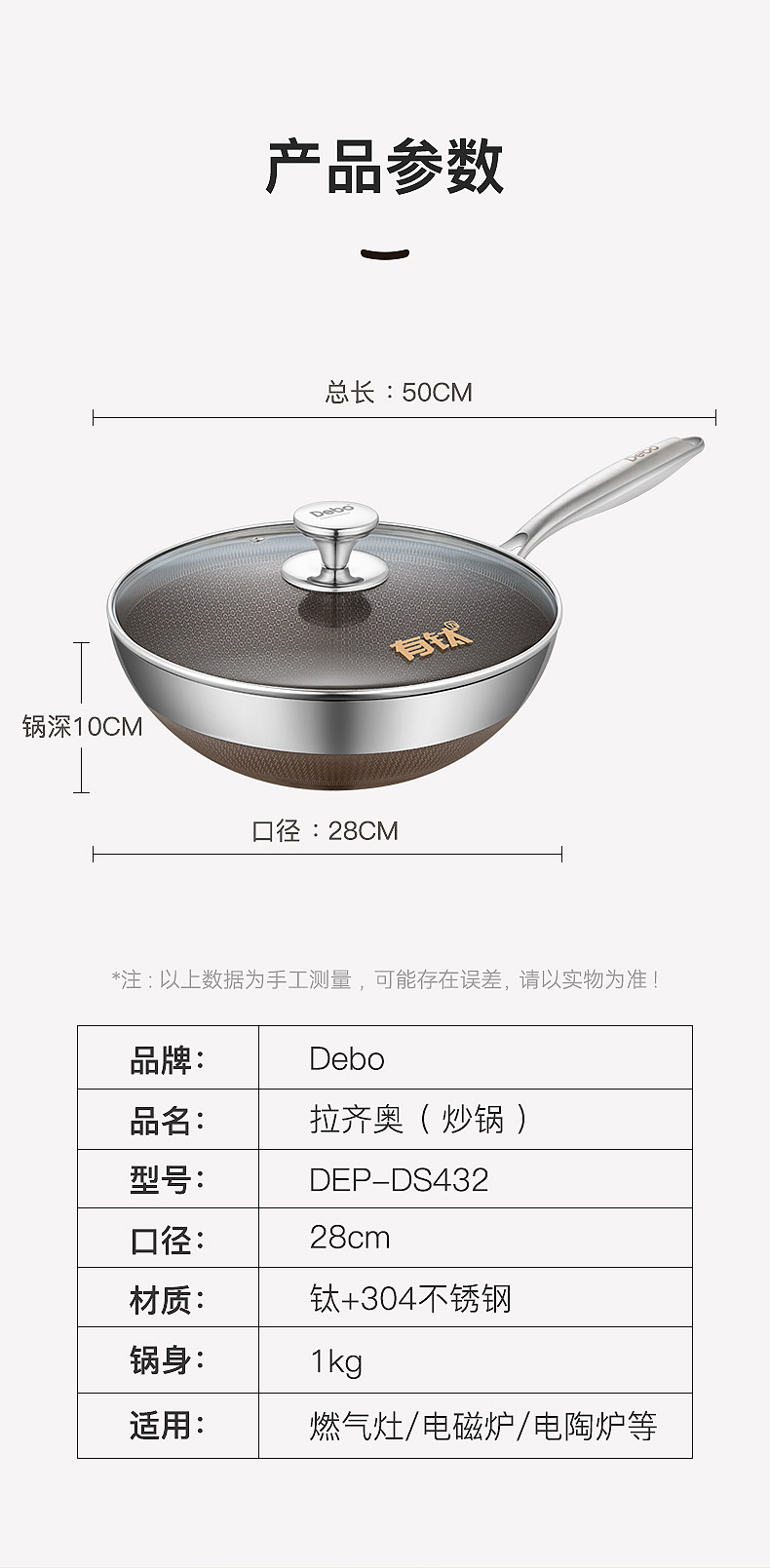 配置:炒锅身*1、玻璃盖*1