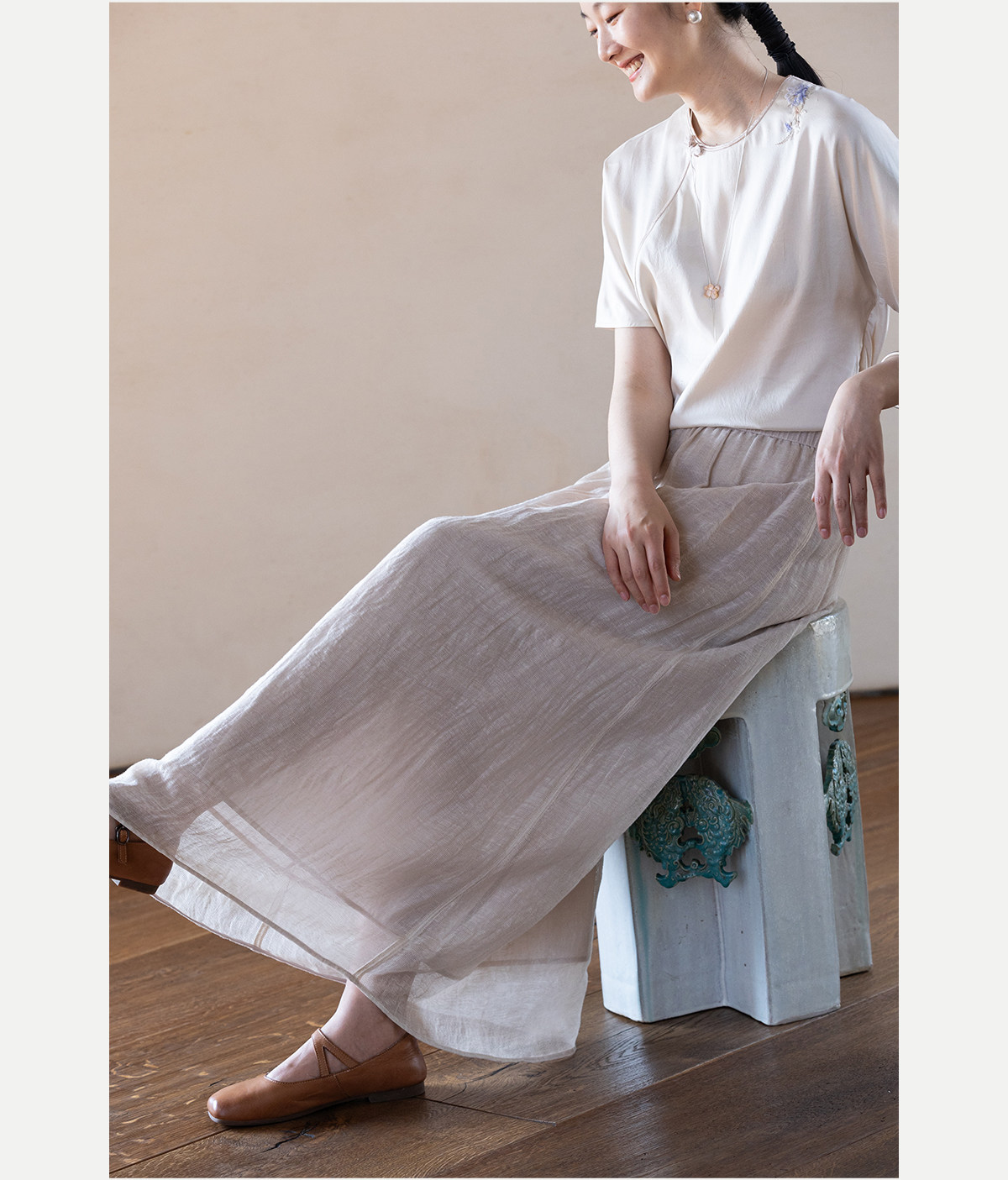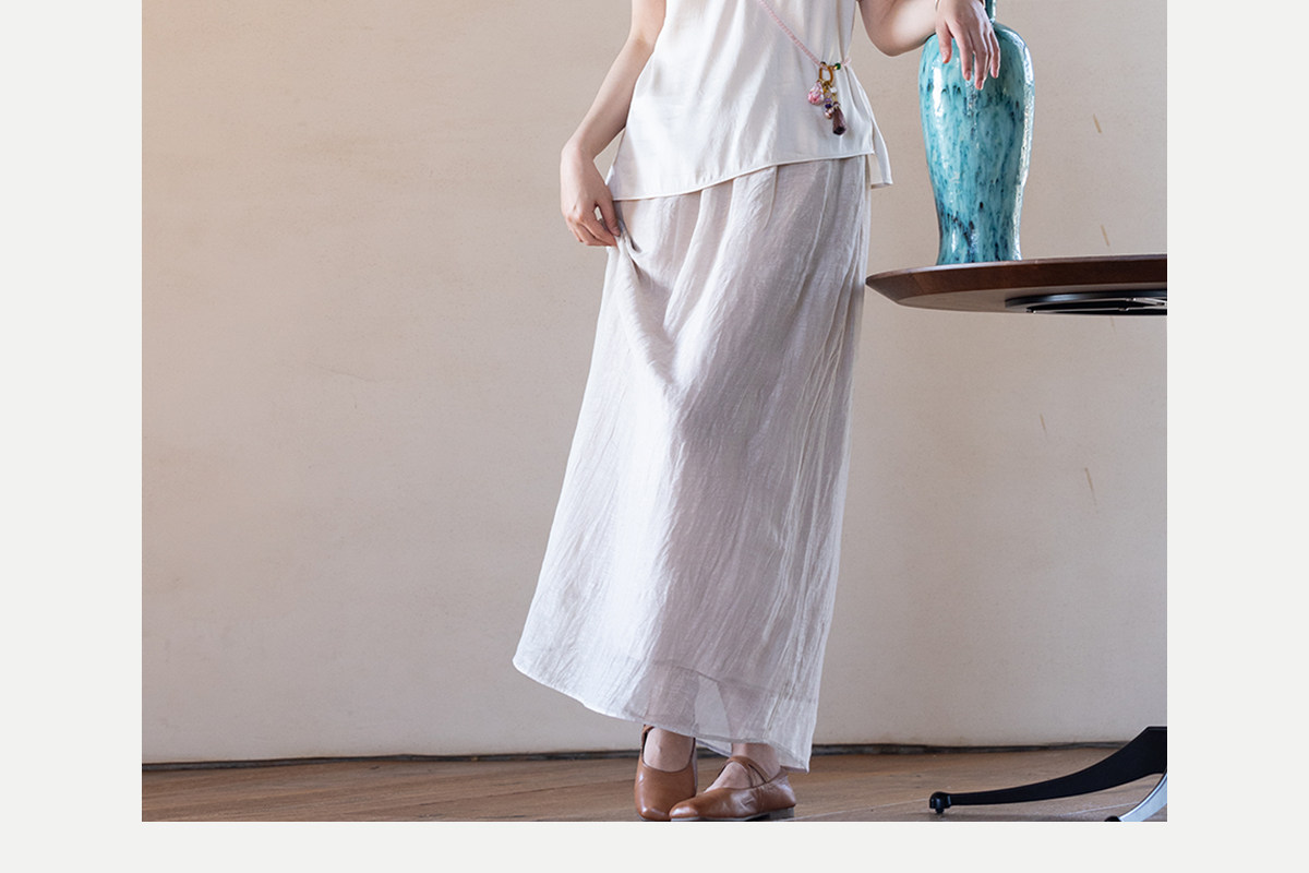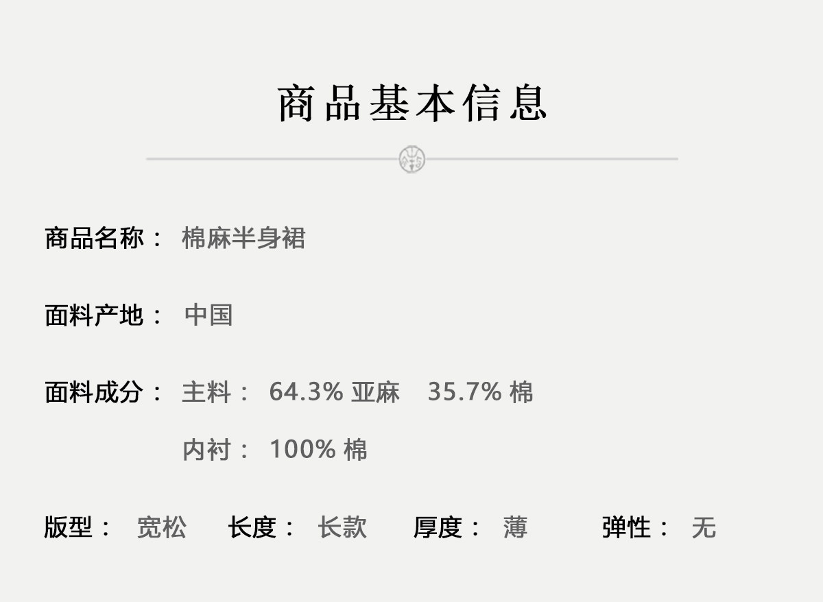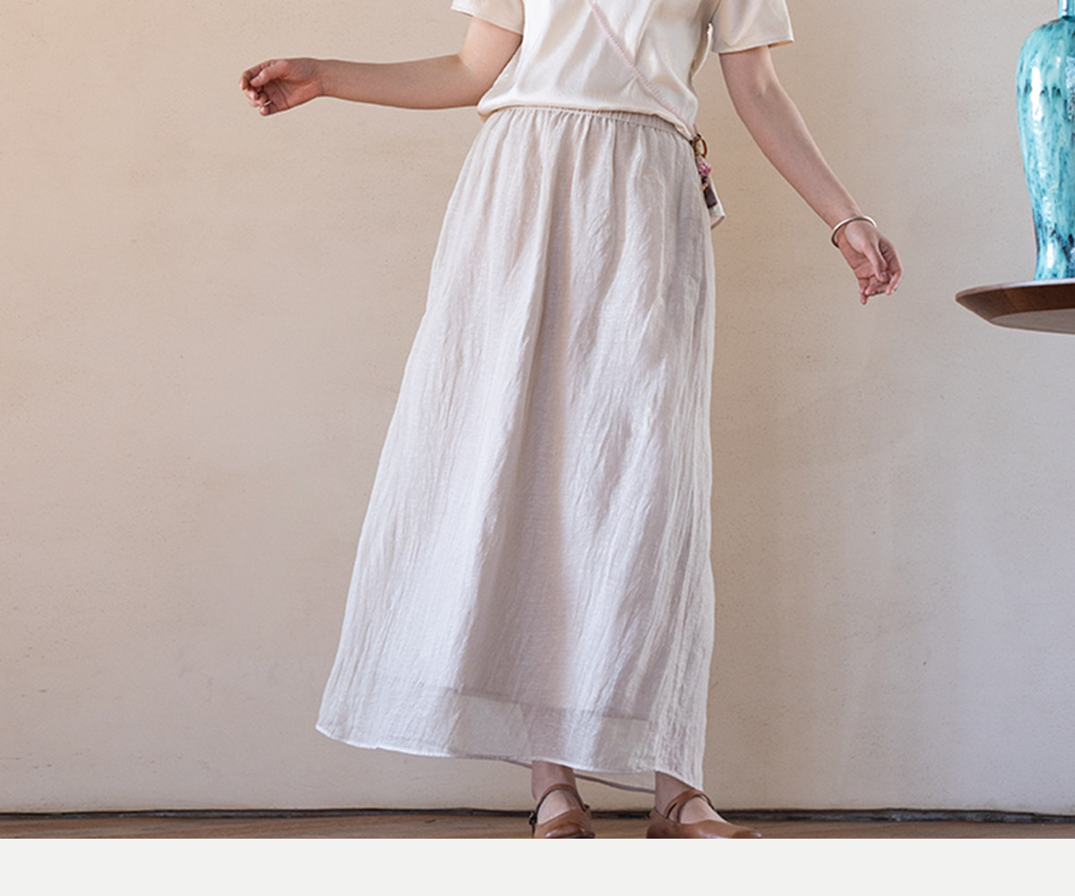 牧衣游原创 棉麻半身裙女夏新款轻薄柔软宽松百搭休闲A字裙 舒意