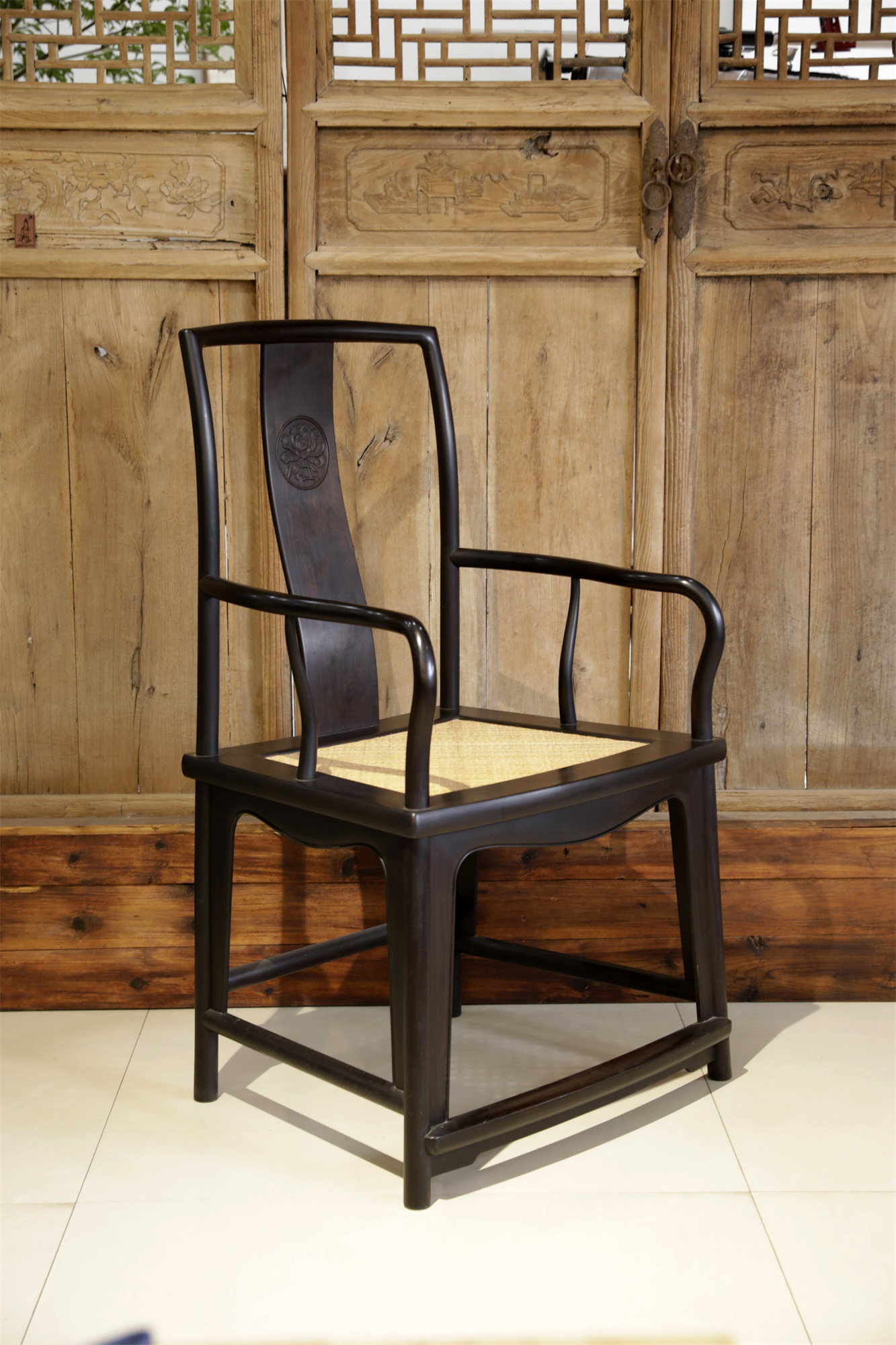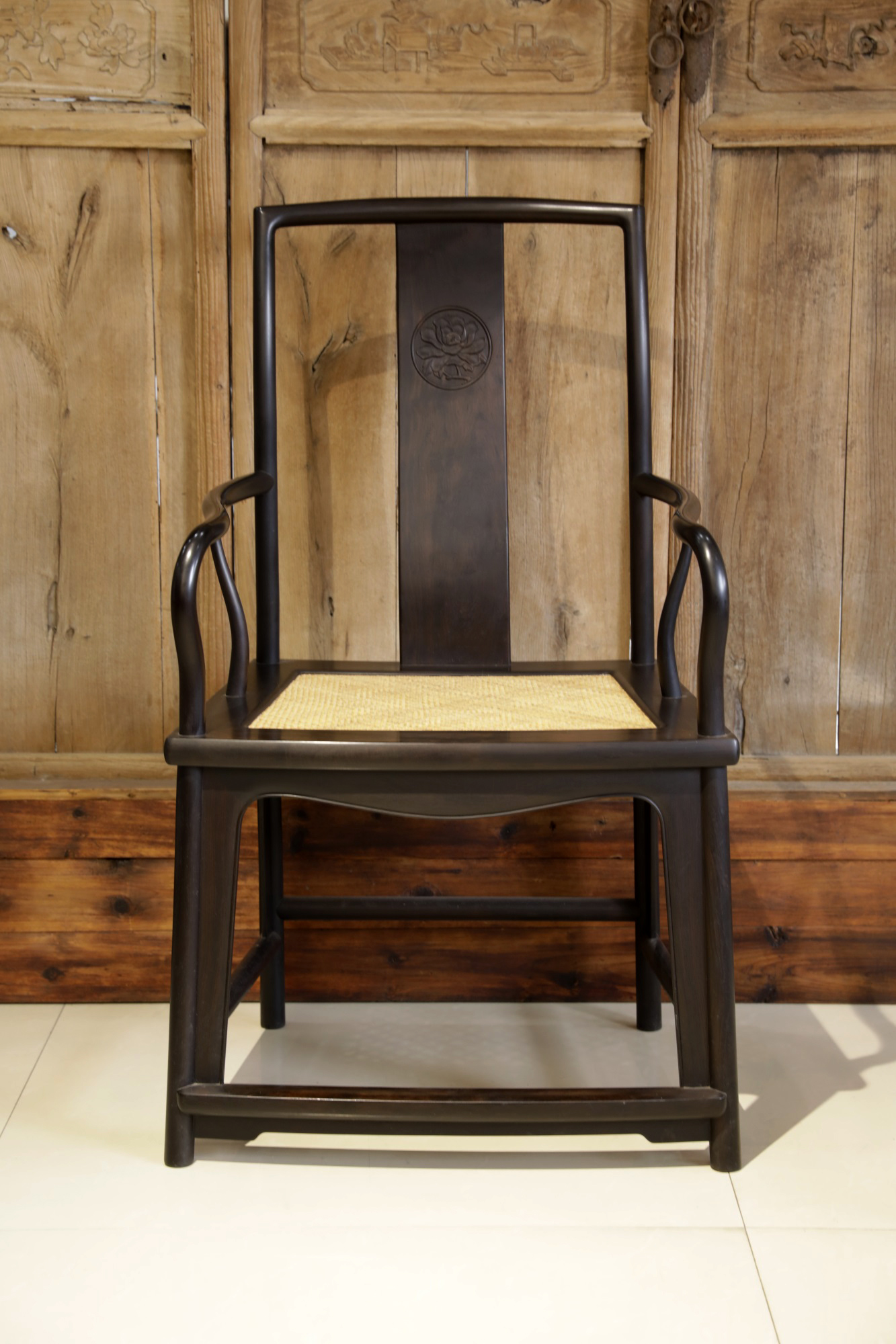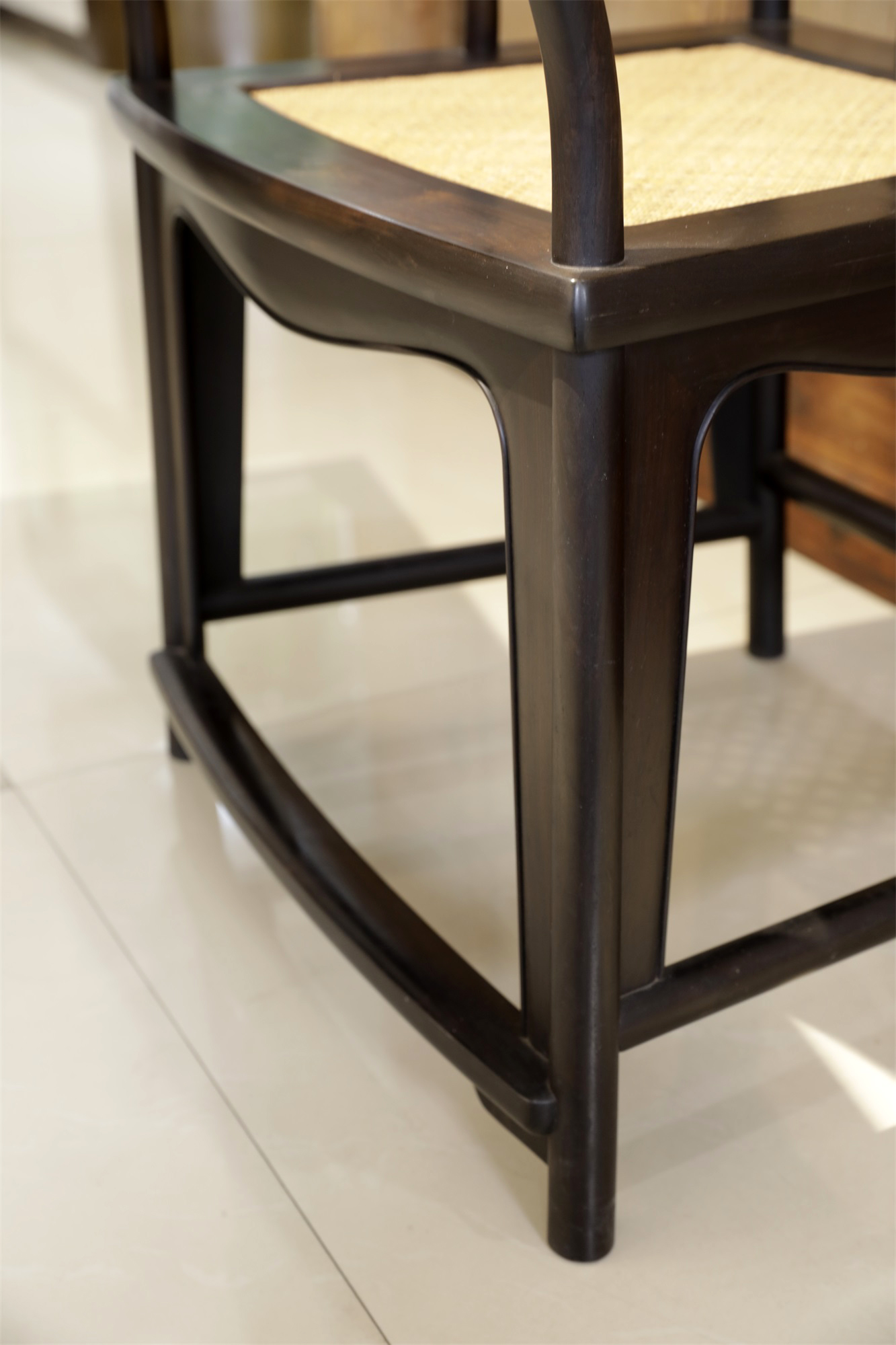 品名:紫光檀藤面扇形官帽椅